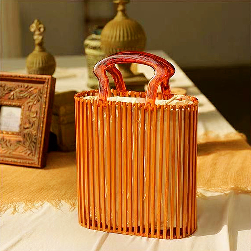 • インヨーロッパとアメリカの織られた女性のバッグファッショナブルなビーチストローバッグシンプルなアクリルポータブル竹バッグ