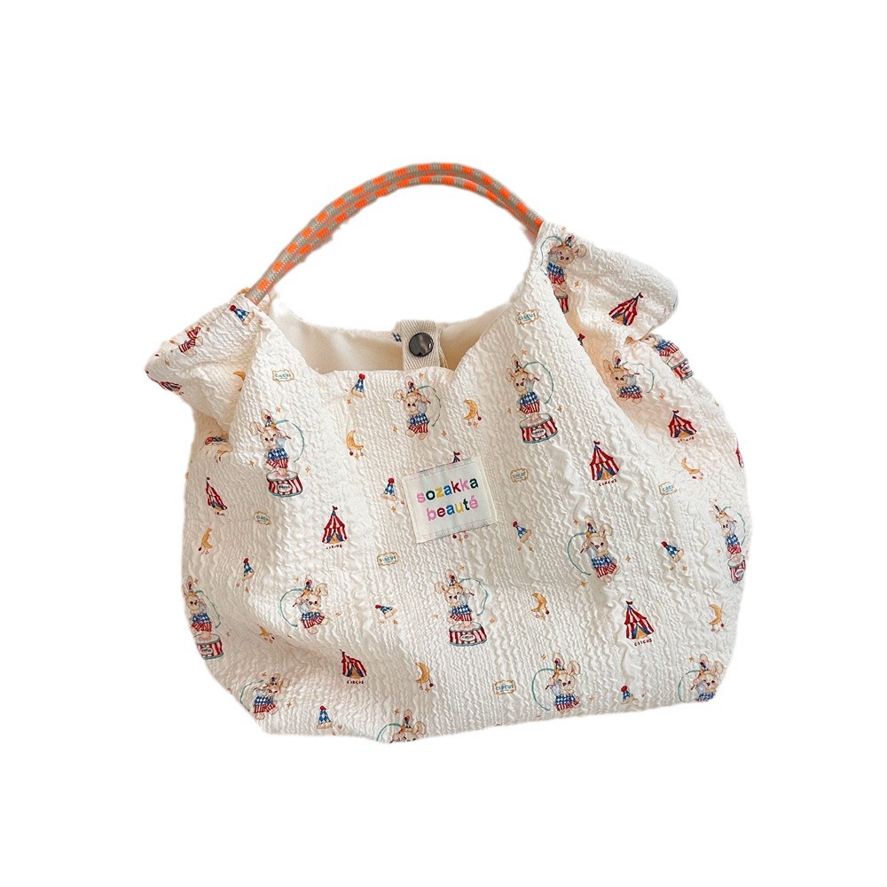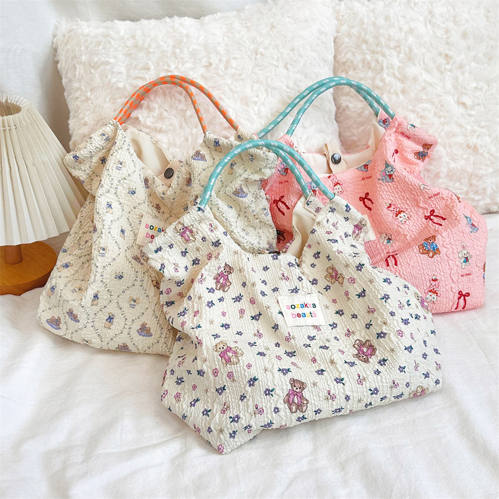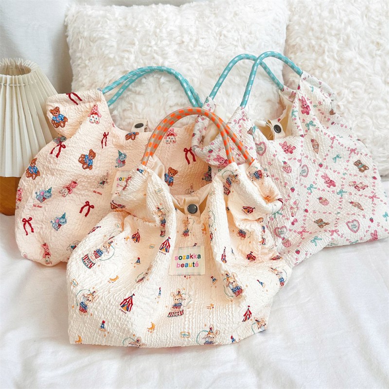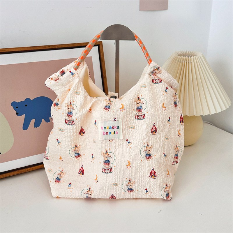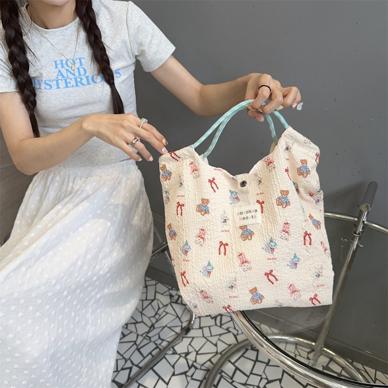 • 韓国イン漫画エンボスキャンバスバッグ女性の大容量キャンバスバッグポータブルビーチ休暇ハンドバッグ