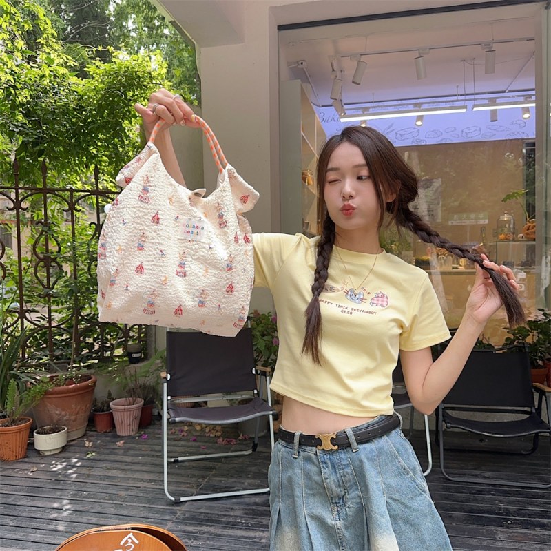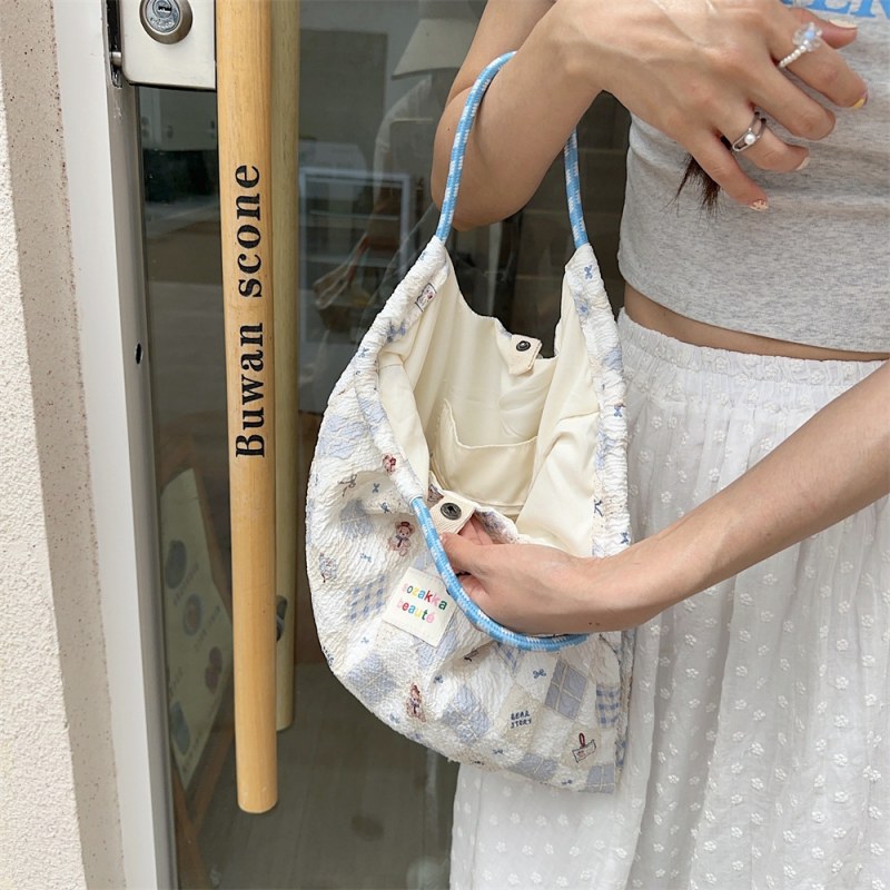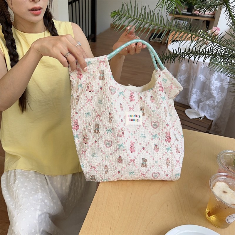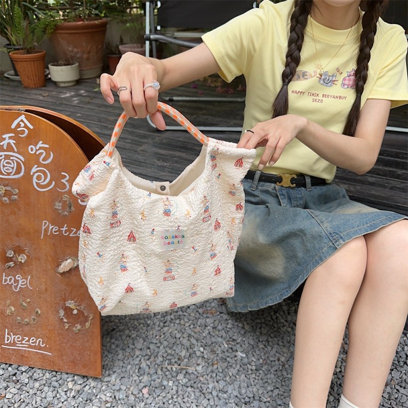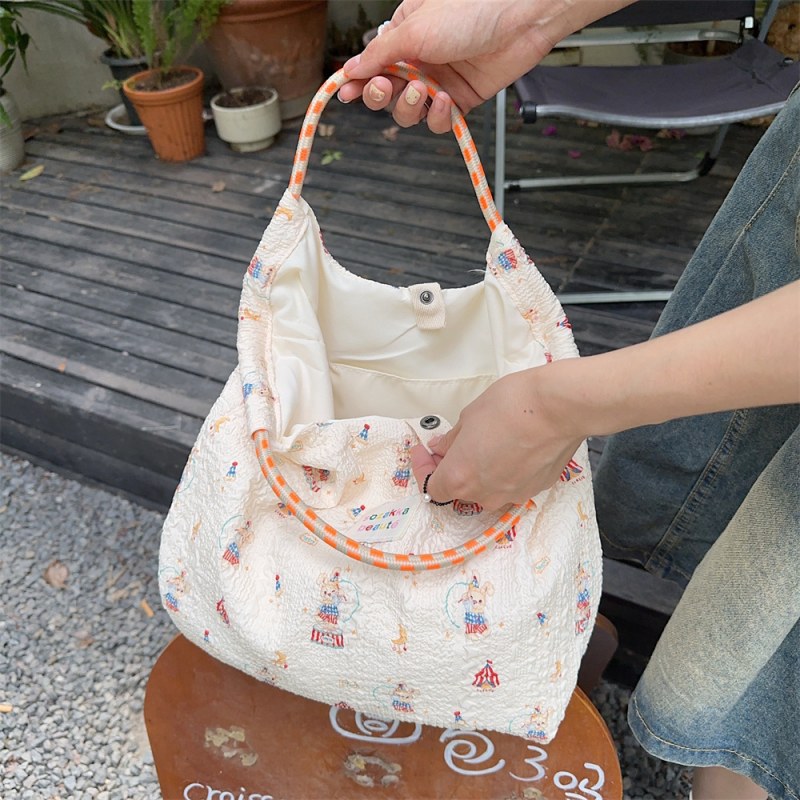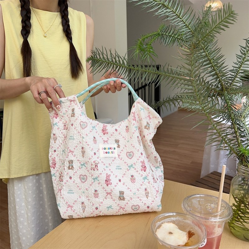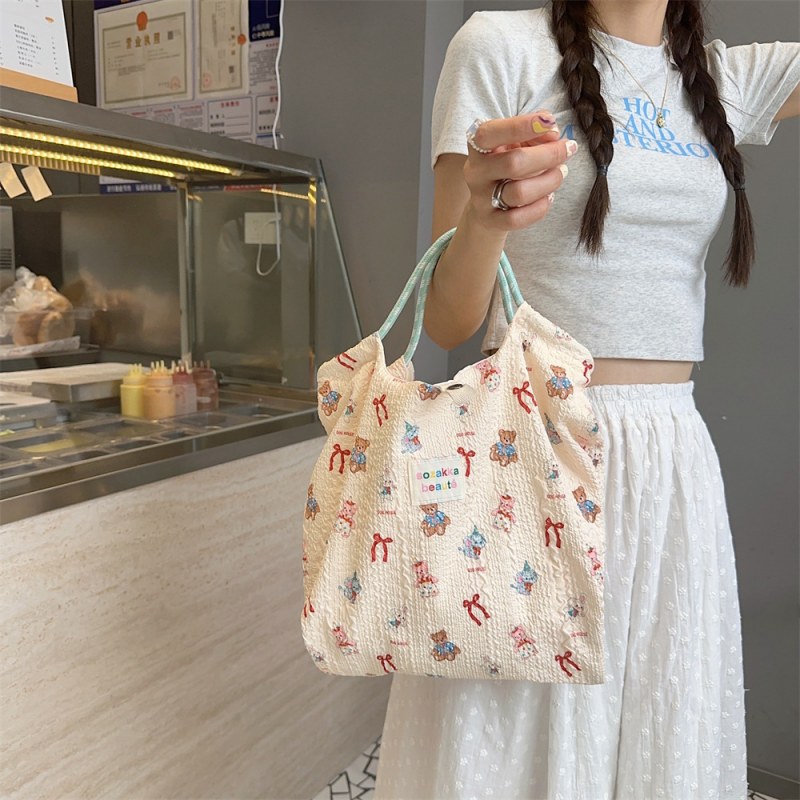 • 韓国イン漫画エンボスキャンバスバッグ女性の大容量キャンバスバッグポータブルビーチ休暇ハンドバッグ
