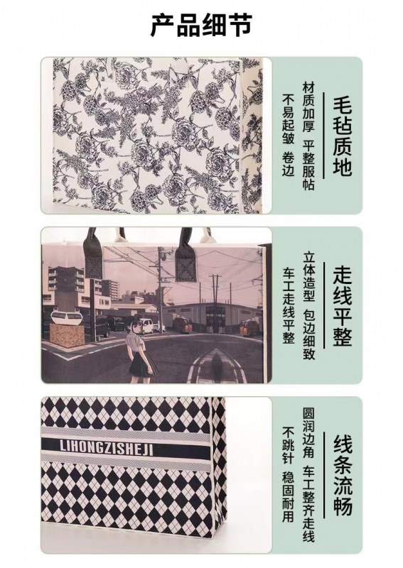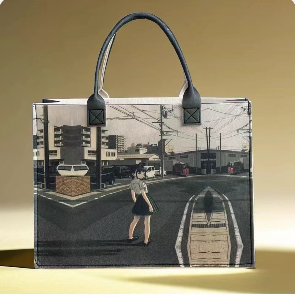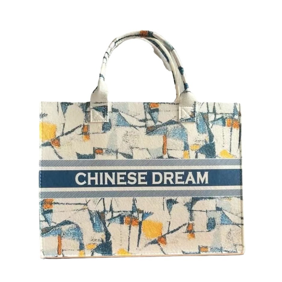 • 油絵フェルトトートバッグ新しいハンドバッグレディースハイエンド大容量プリント通勤ショッピングバッグ