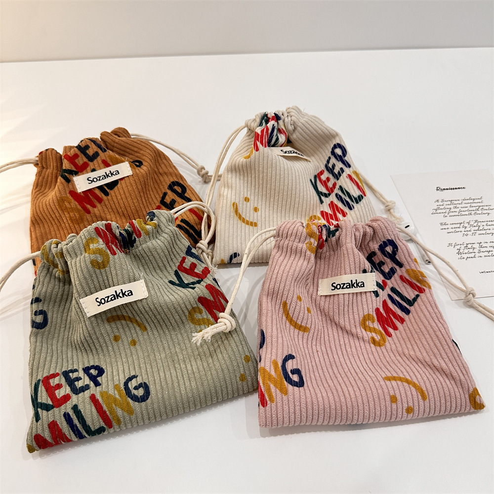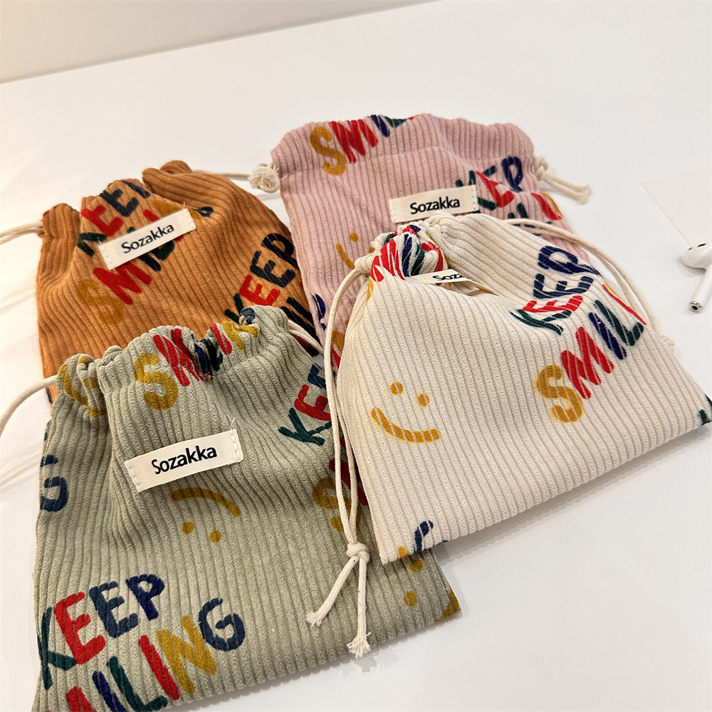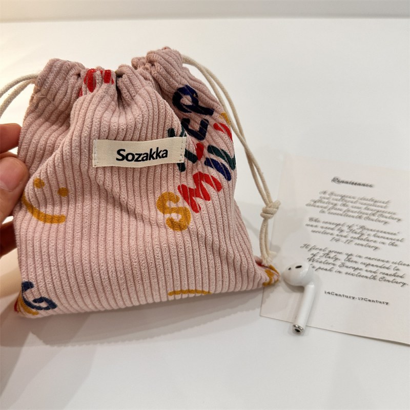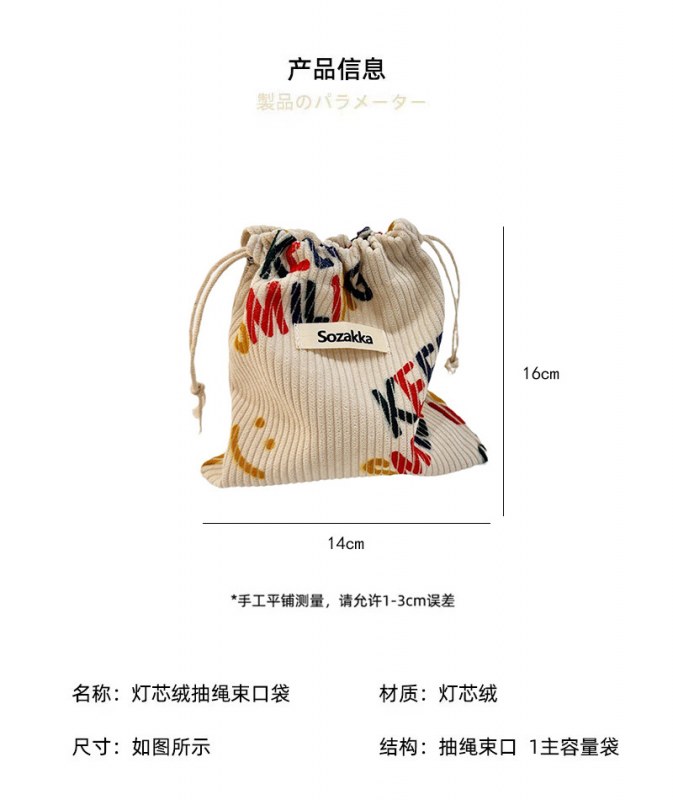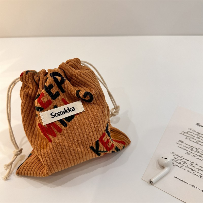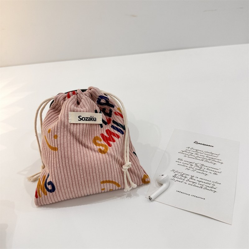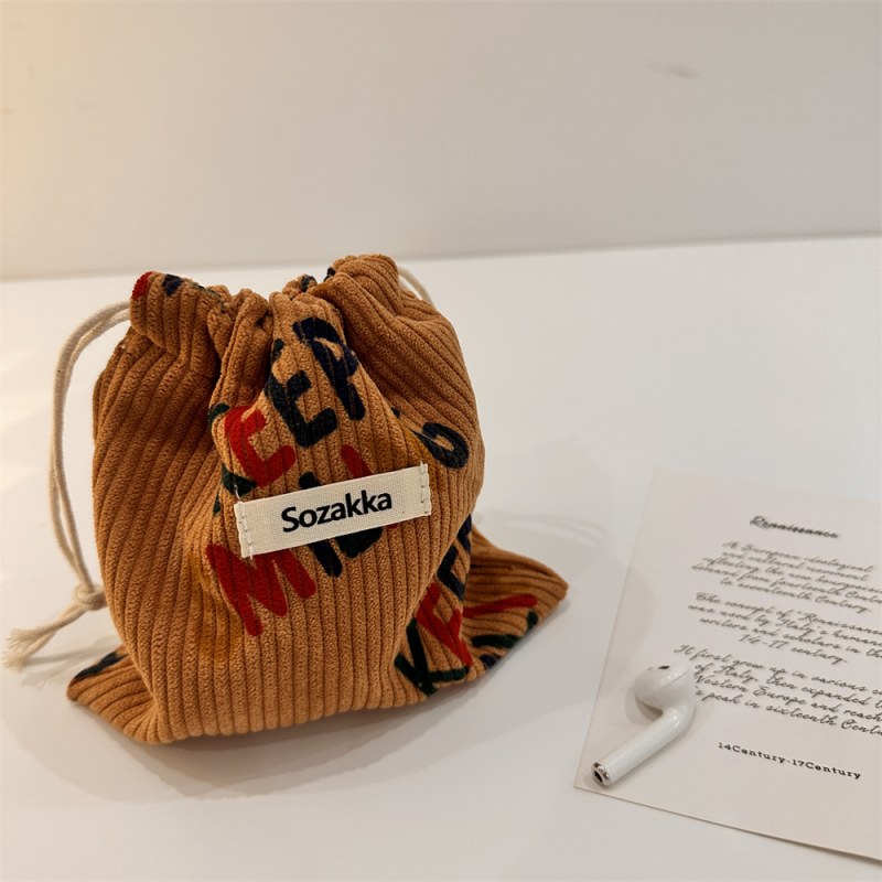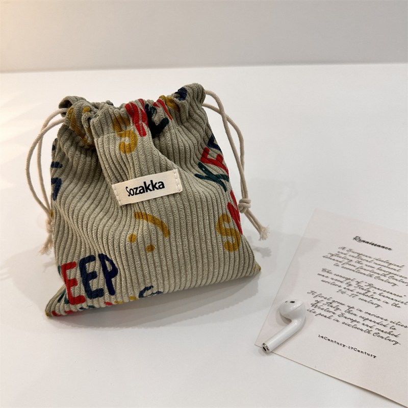 • 巾着巾着収納袋コーデュロイ小さなバッグ防塵ジュエリー収納学生雑貨整理小さなバッグ