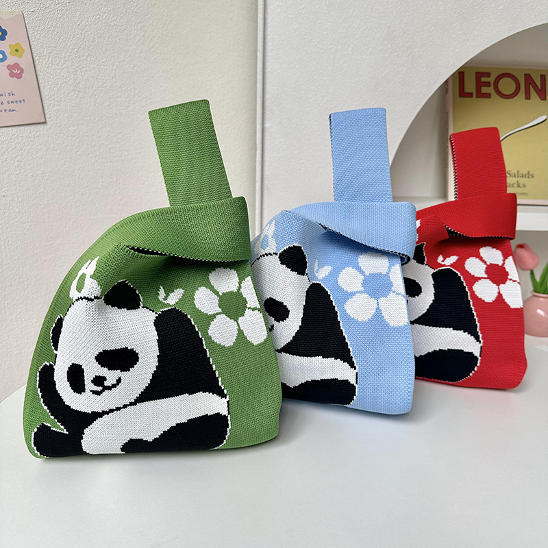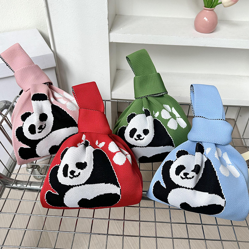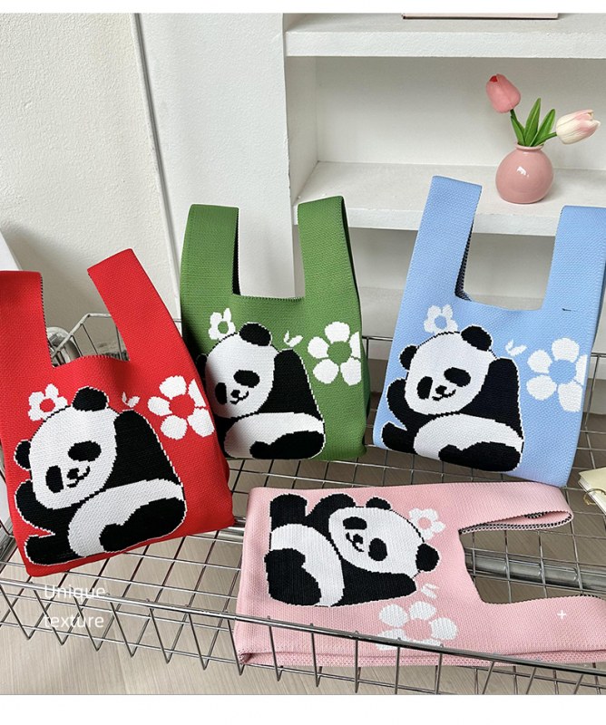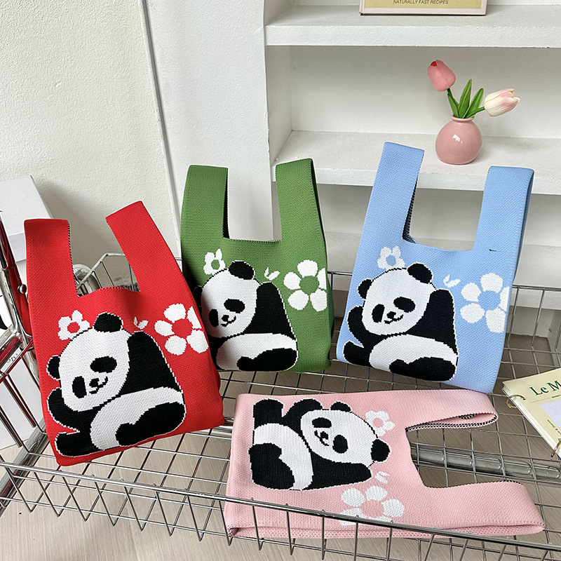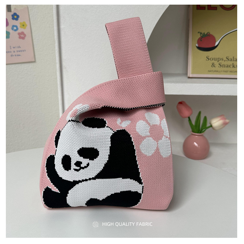 • ニットハンドバッグ新しいスタイル多用途かわいいハッピーパンダカジュアル大容量バケットバッグベストバッグ