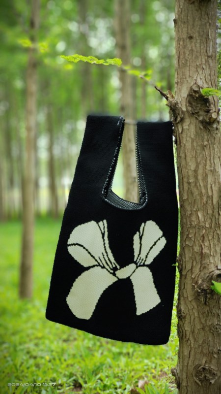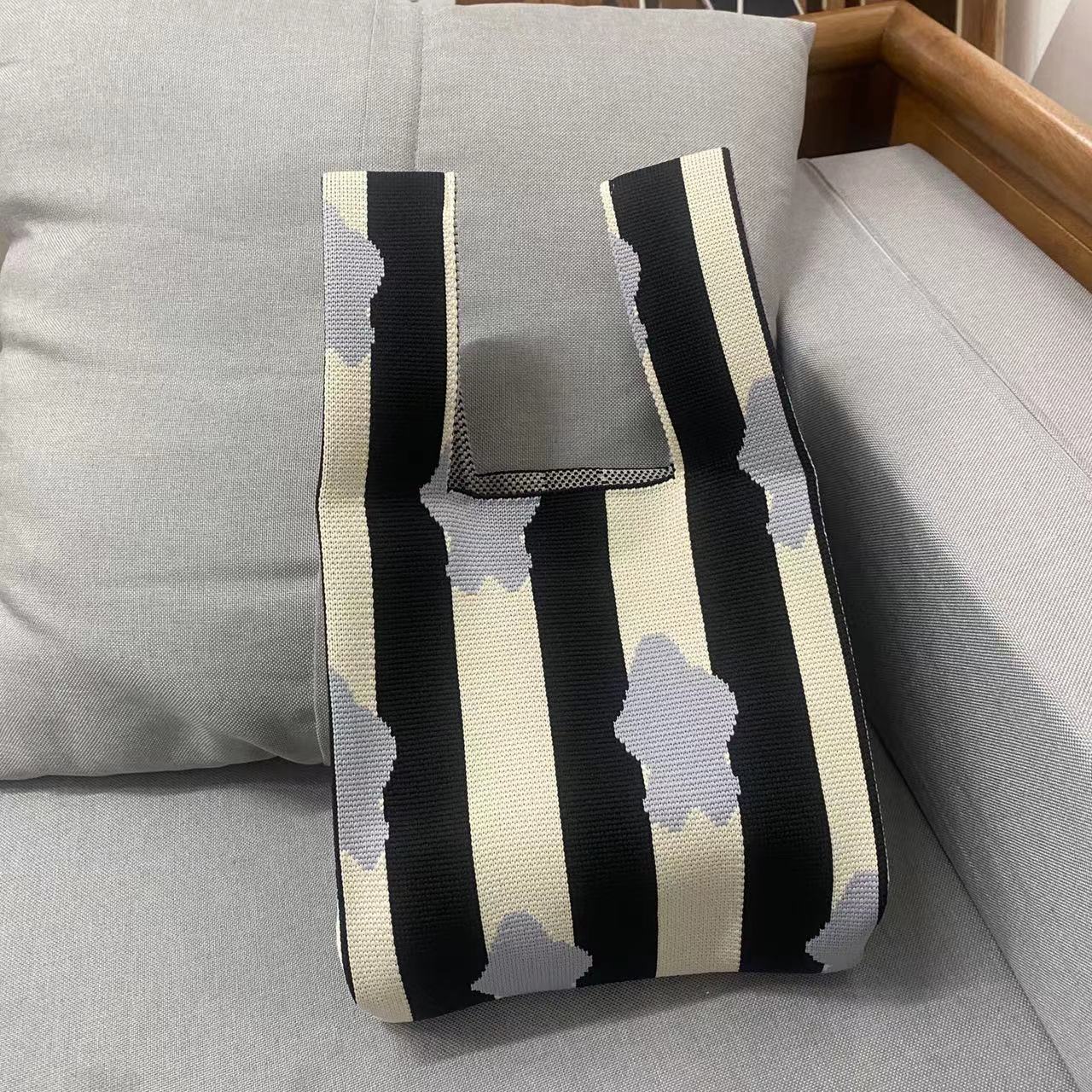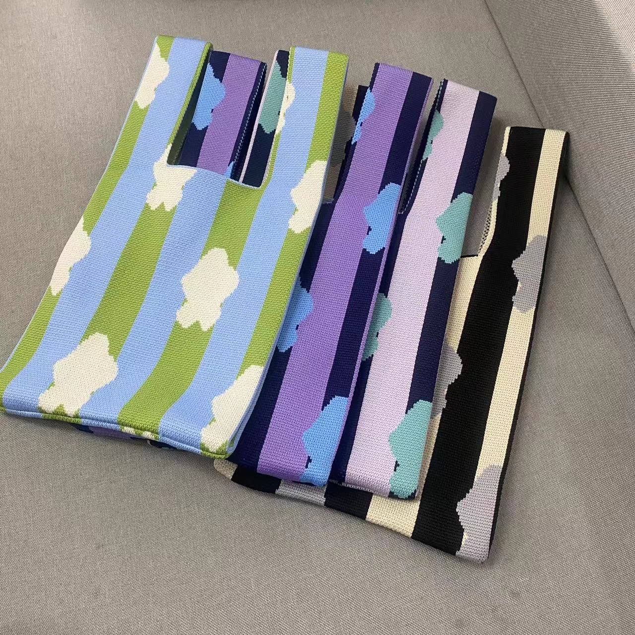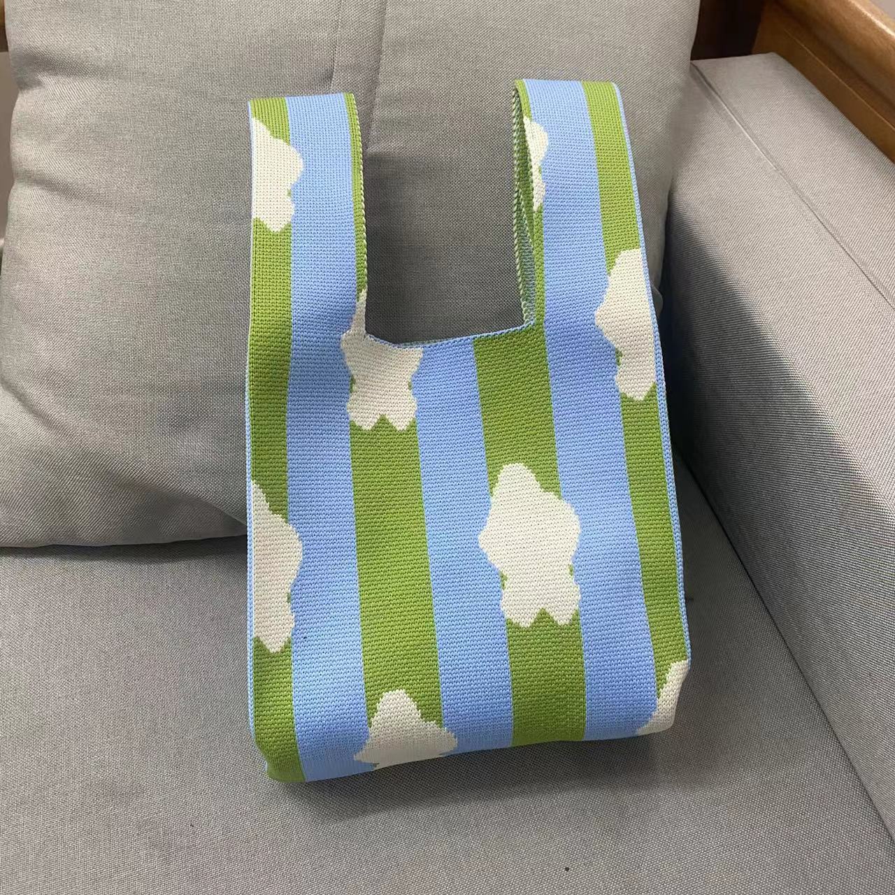 • かわいい手持ちフライング織りトートバッグ、ニットバッグ、多用途のオリジナルニッチパーソナライズランチボックスバッグ、オープントップトレンディなレディースバッグ