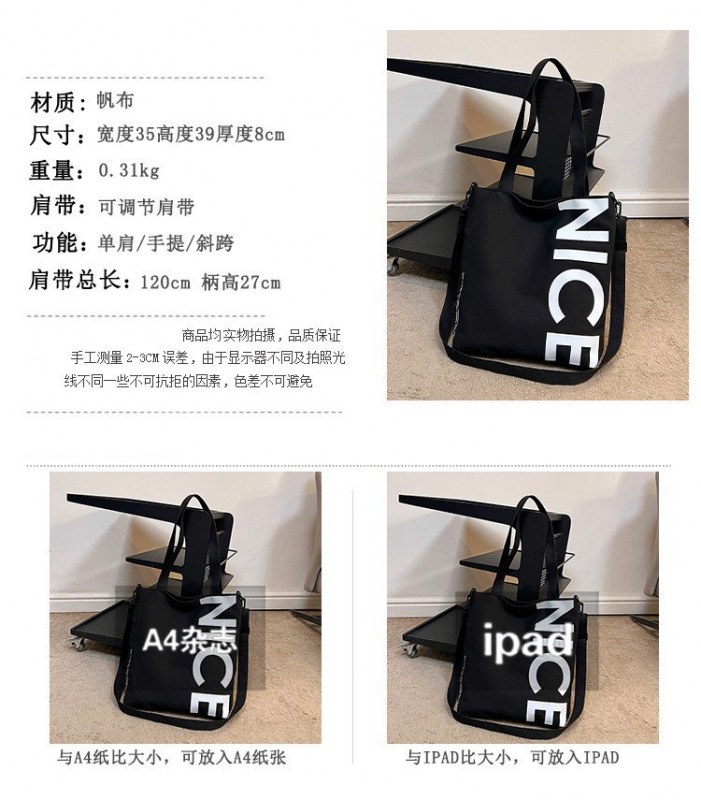 • キャンバスバッグクロスボディオックスフォード布バッグトレンディな大容量通勤ショッピングバッグトート学生バッグ