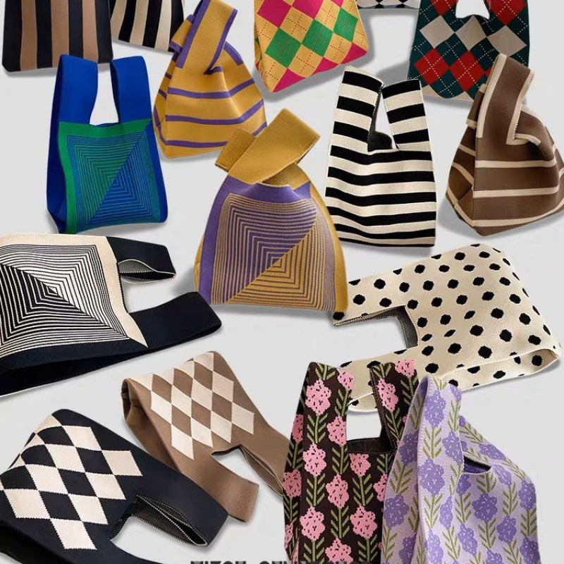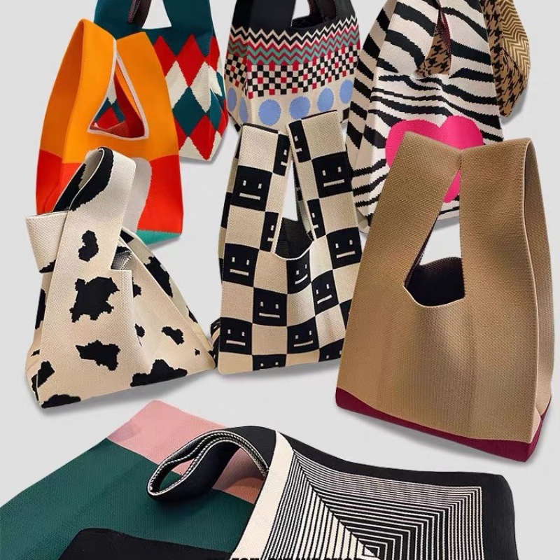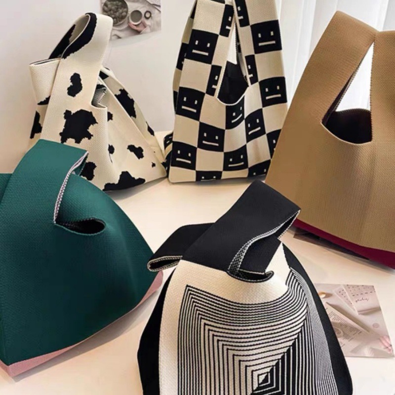 • 日本と韓国語バージョンの多用途な手持ちカジュアルトートバッグ、インターネットセレブハンドバッグ、レディースニットウールバケットバッグ、ランチバッグ。