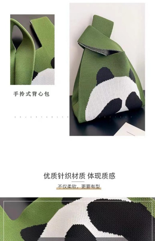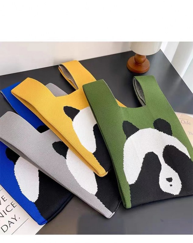 • インかわいいパンダニットハンドバッグ便利な漫画バッグホリデーギフトバッグ夏の韓国語バージョン多用途トート米