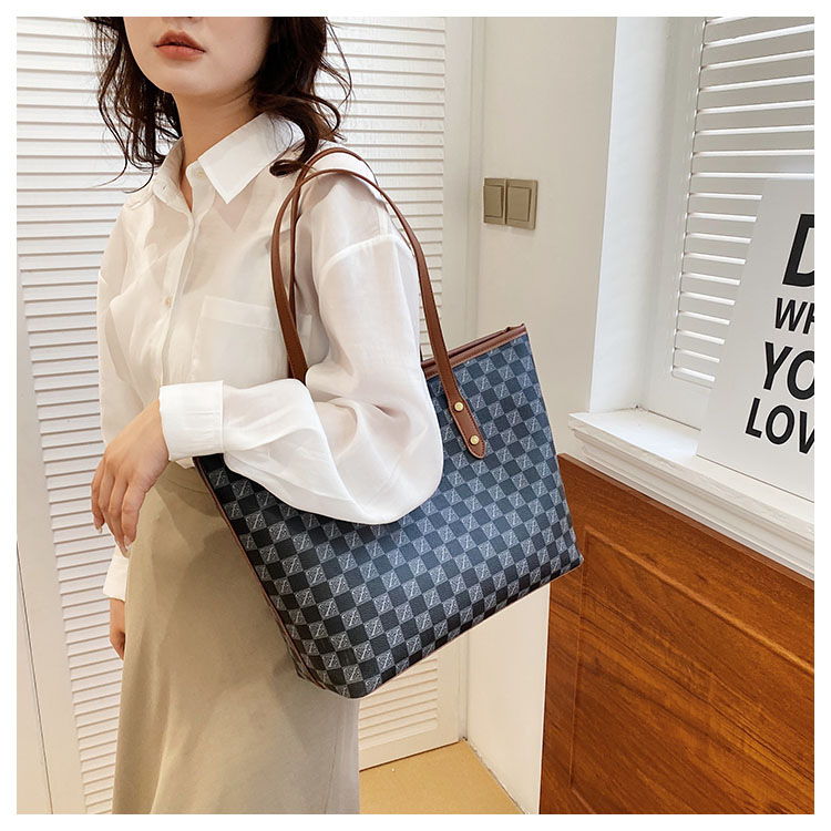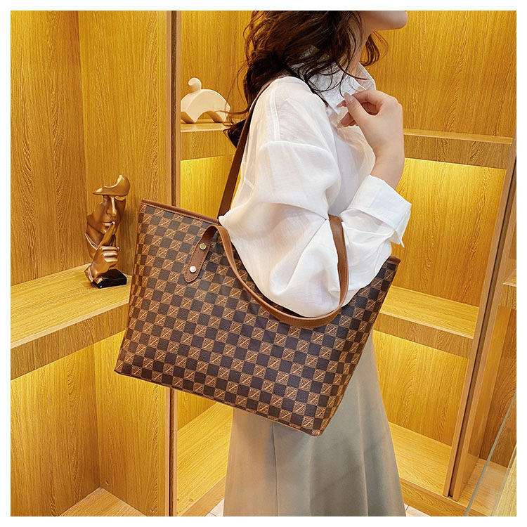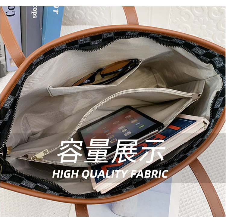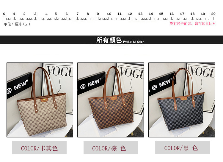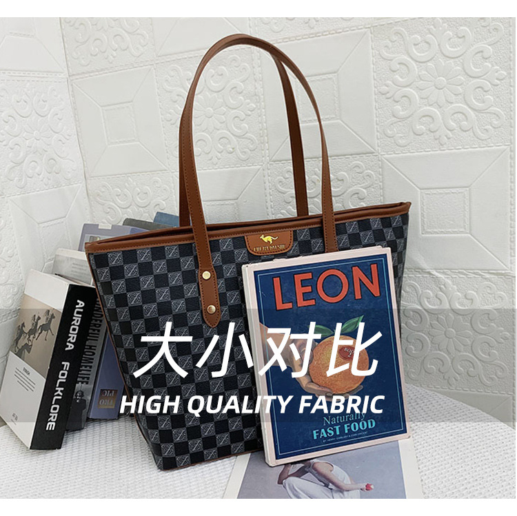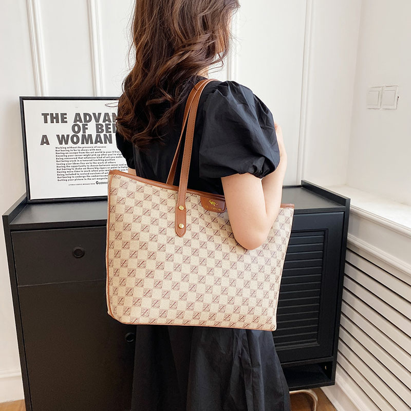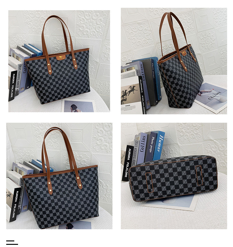 • テクスチャードハンドバッグ 2024 新しい大容量チェック柄トートバッグ韓国語版チェス盤クラス通勤ファッションショルダーバッグ
