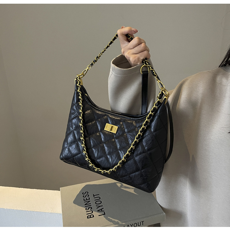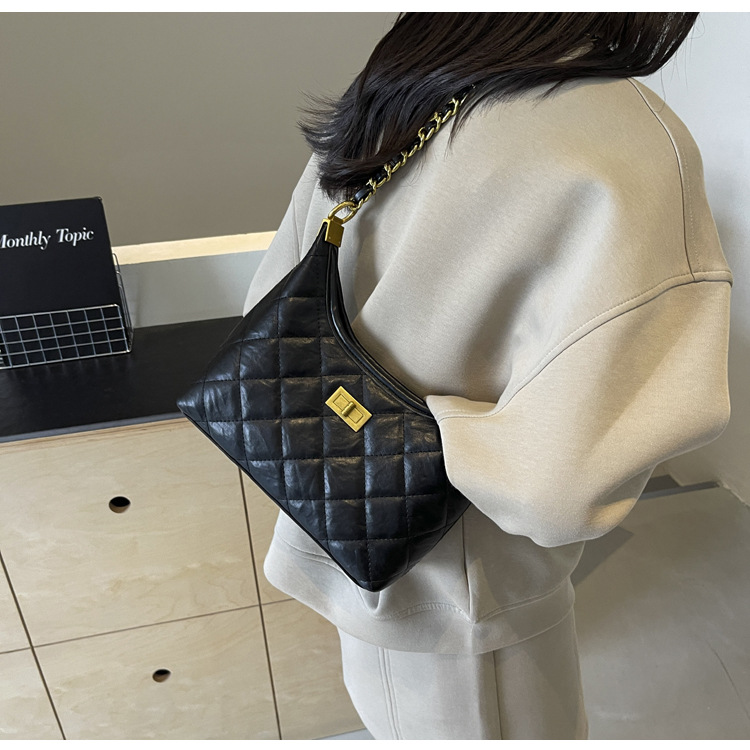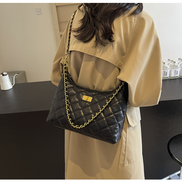 • レトロ菱形小さな香りのよいチェーントートバッグ女性のための 2024 新しい通勤多目的脇の下バッグシングルショルダークロスボディバッグ