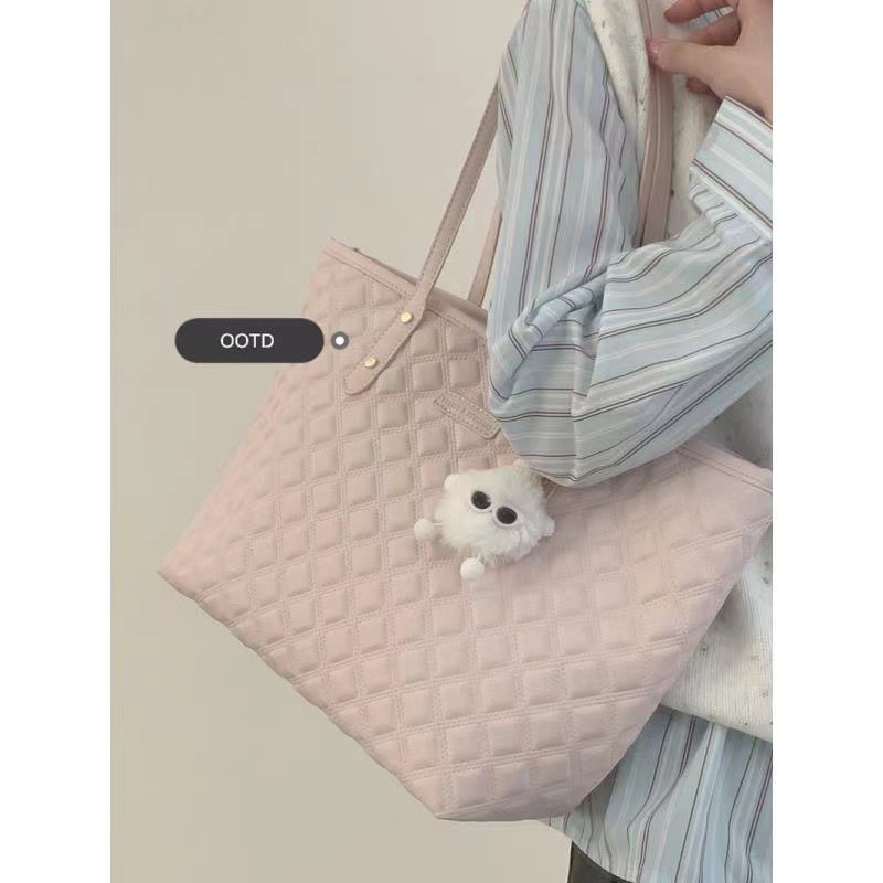 • ピンクダイヤモンドトートバッグ女性のための 2024 新しいスタイル大学生大容量通勤多用途ポータブルショルダーバッグ