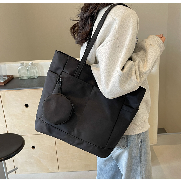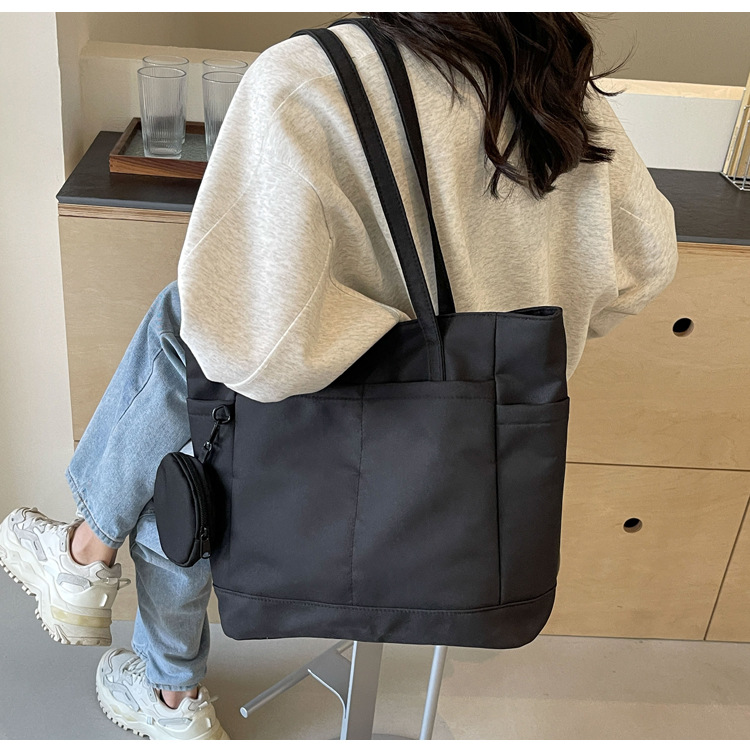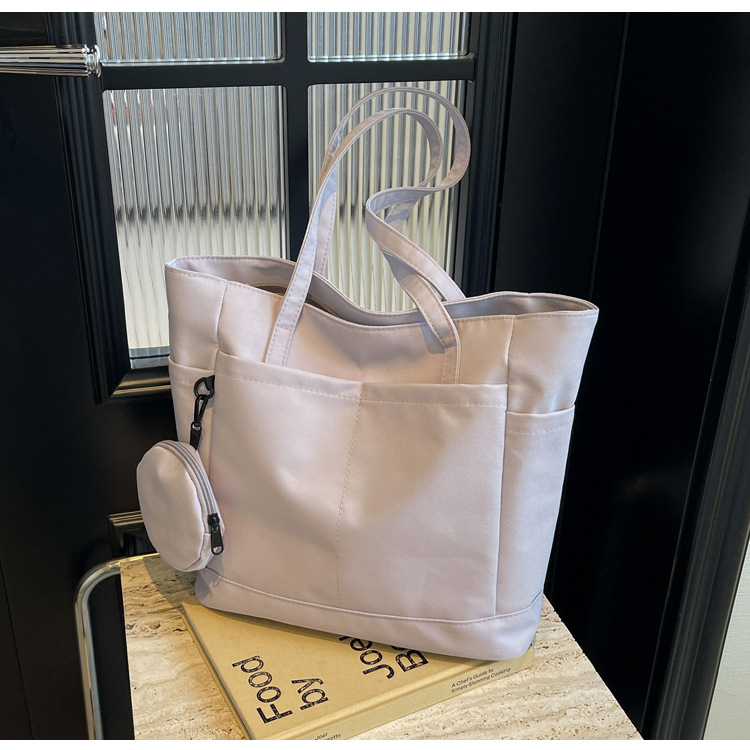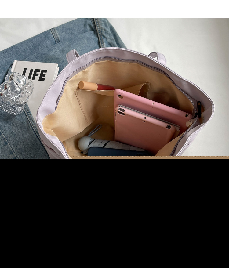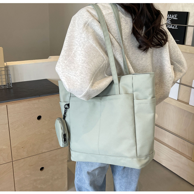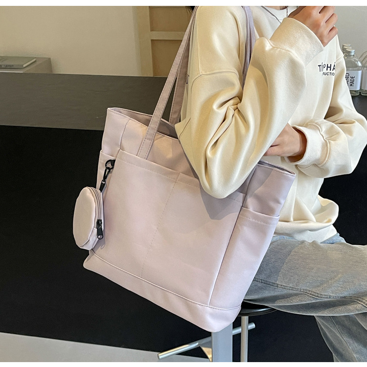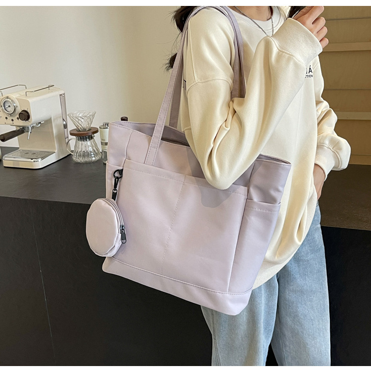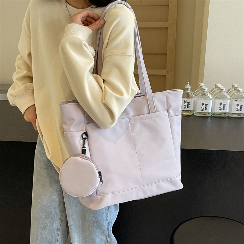 • 通学用女子学生用通勤トートバッグ、大容量ナイロン布ハンドバッグ、無地防水布バッグ