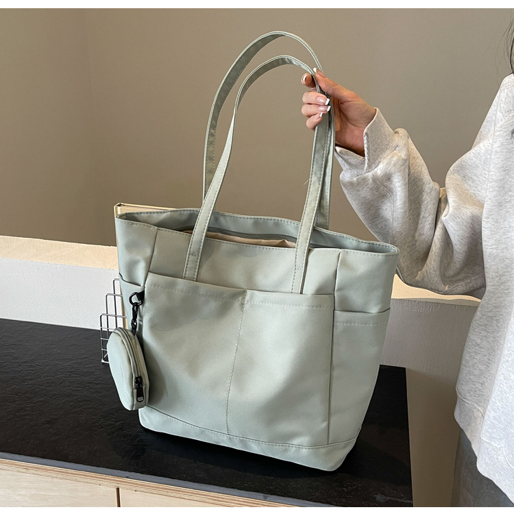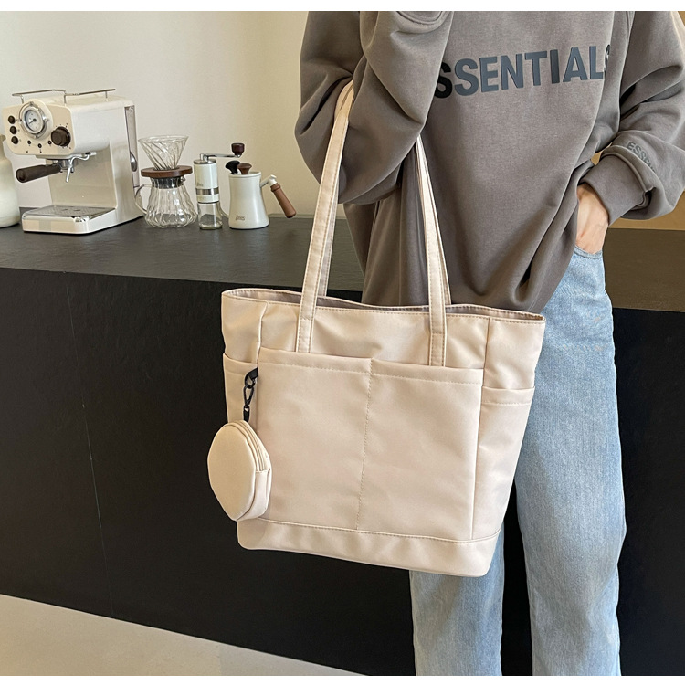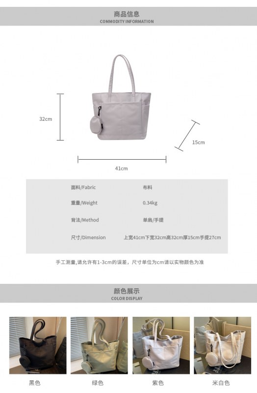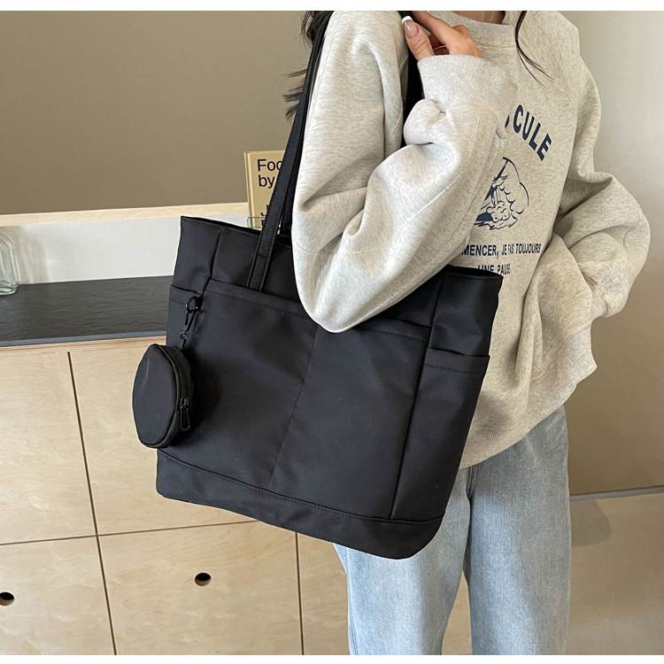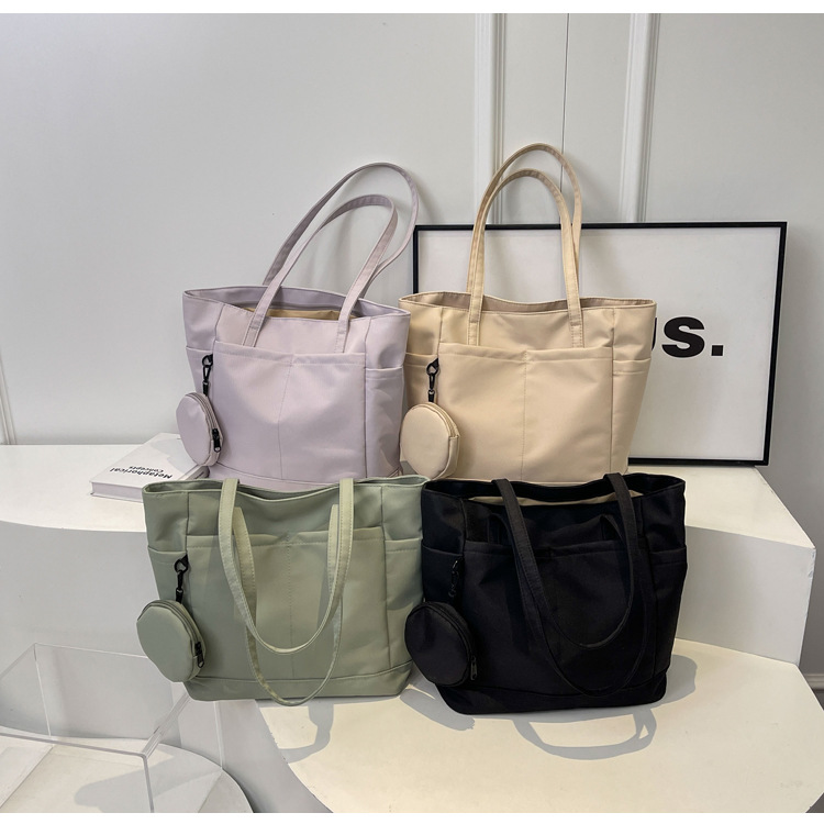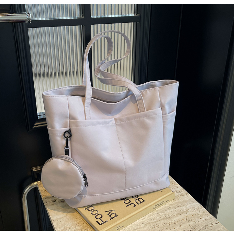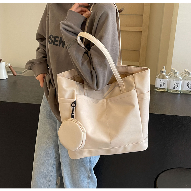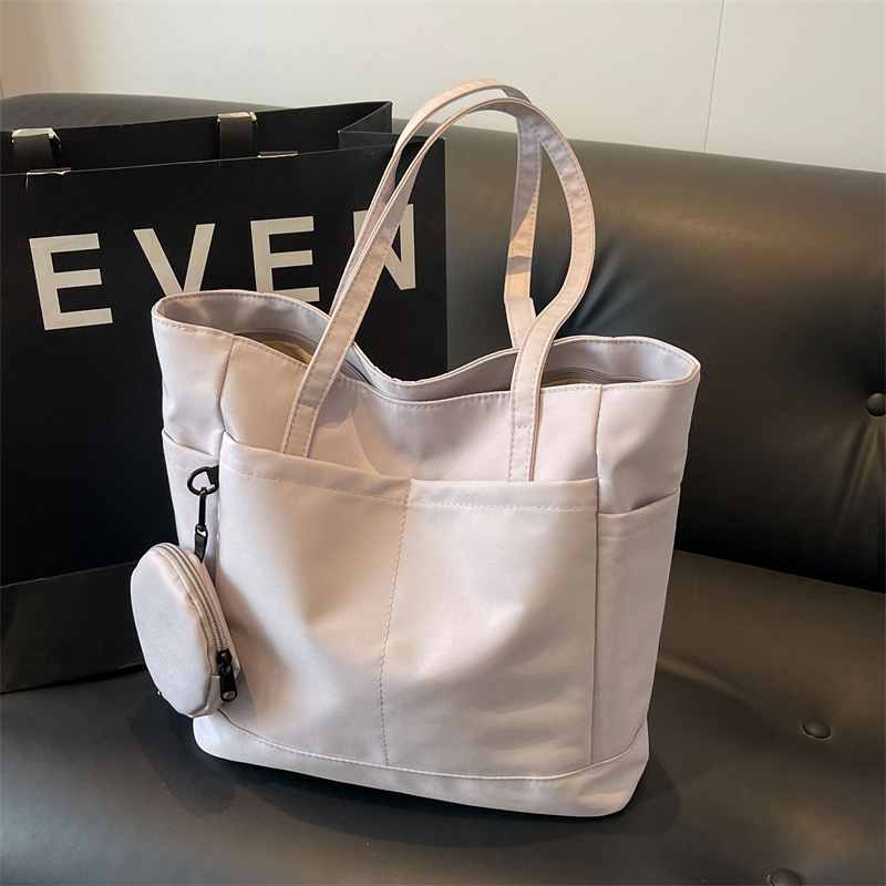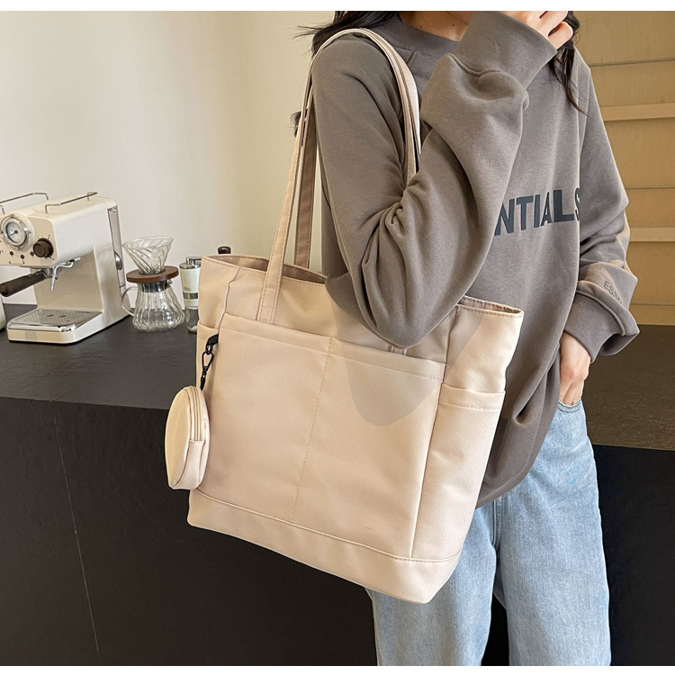 • 通学用女子学生用通勤トートバッグ、大容量ナイロン布ハンドバッグ、無地防水布バッグ