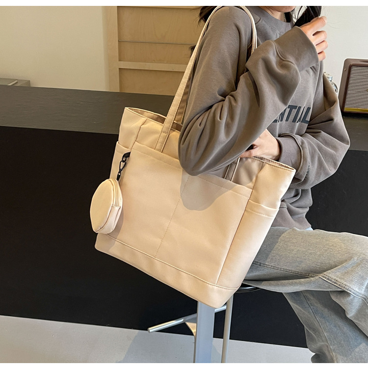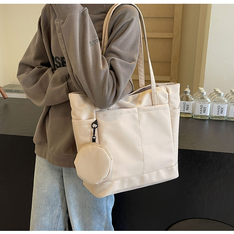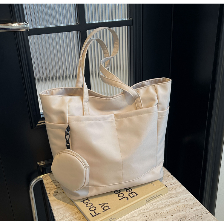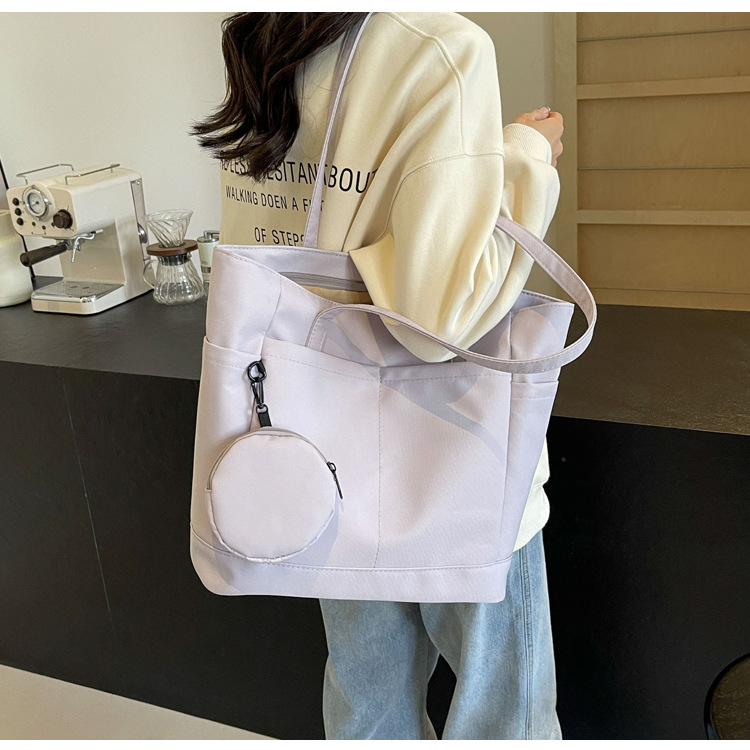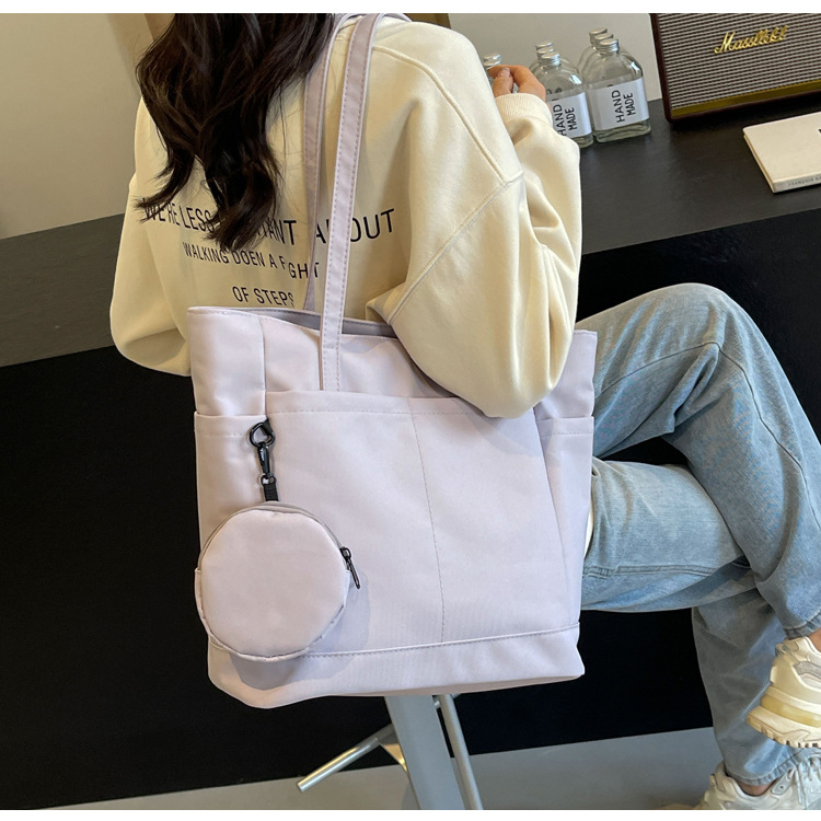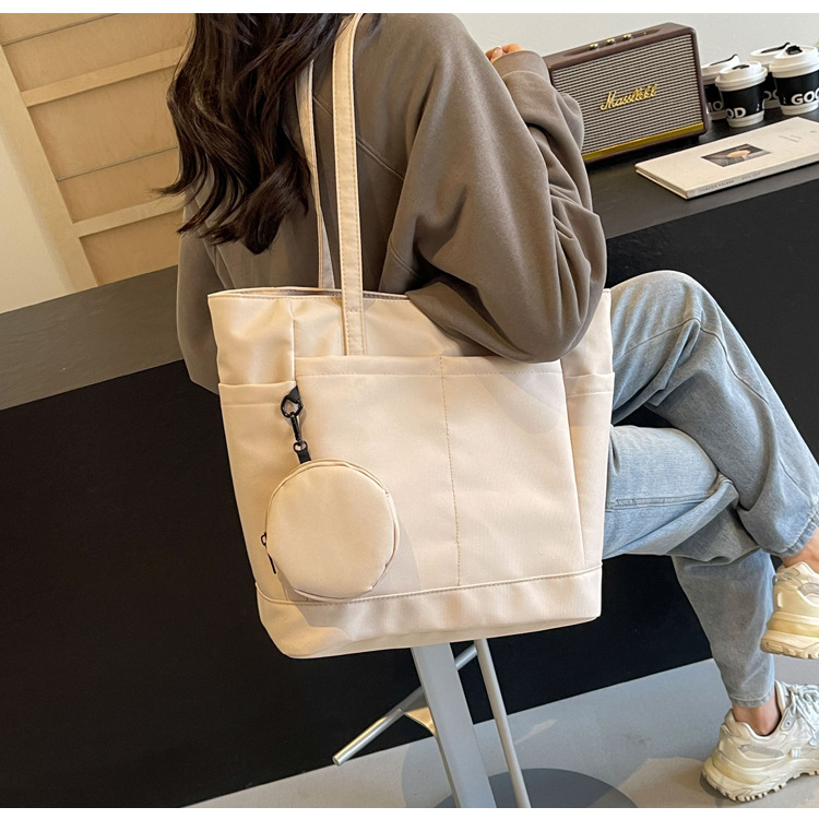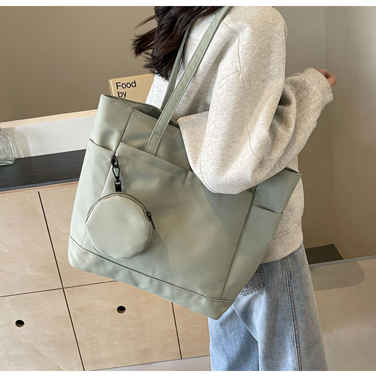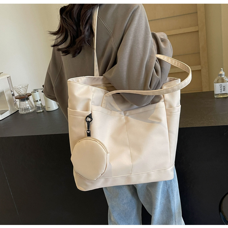 • 通学用女子学生用通勤トートバッグ、大容量ナイロン布ハンドバッグ、無地防水布バッグ