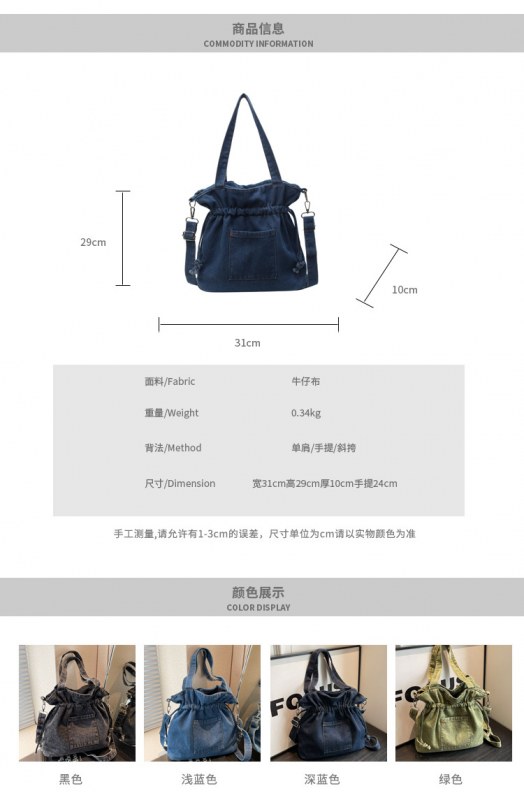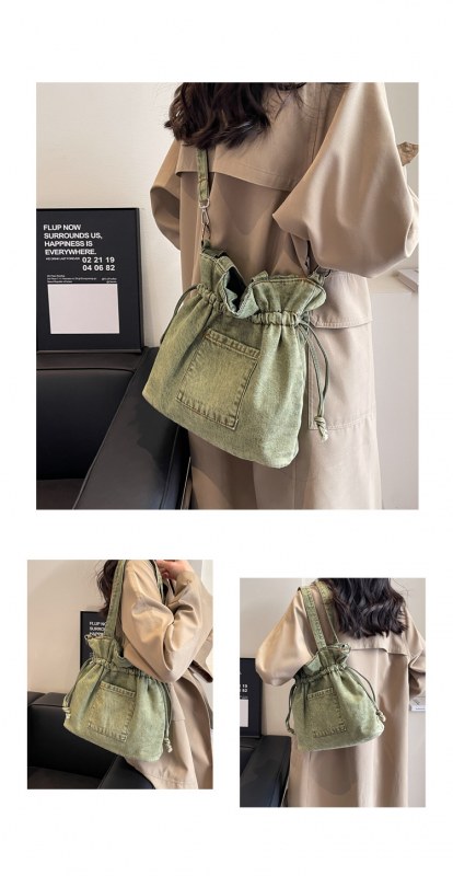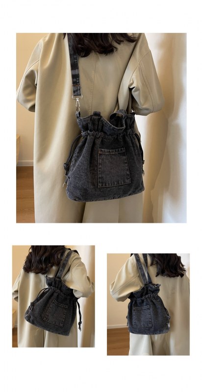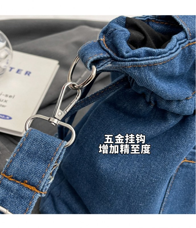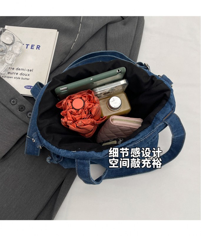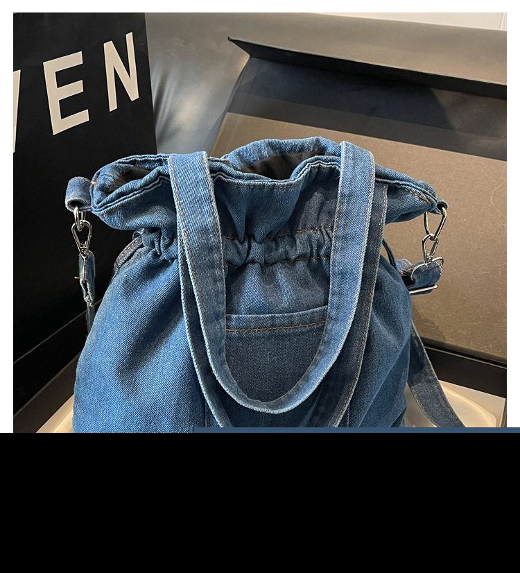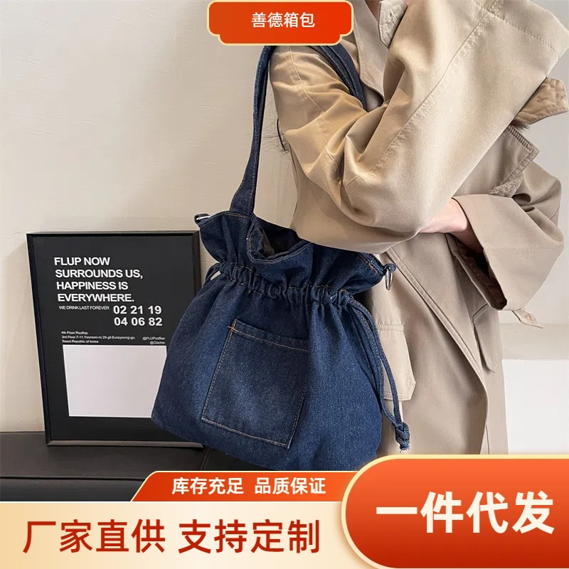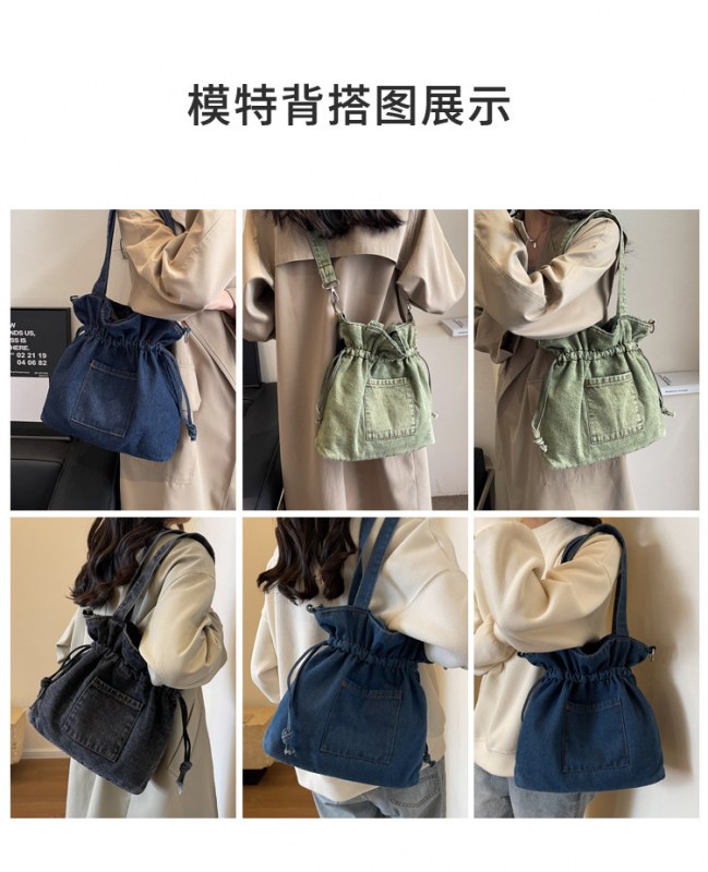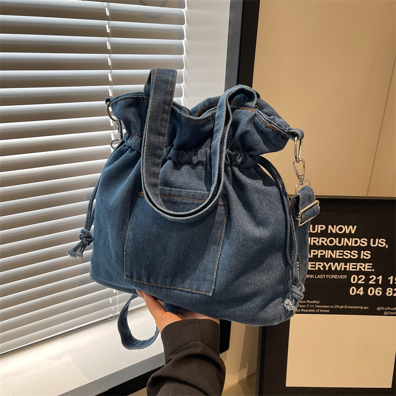 • 大容量バッグ 2024 新しいデニムキャンバスバッグファッショナブルな巾着デザイントートバッグ学生ポータブルショルダーバッグ