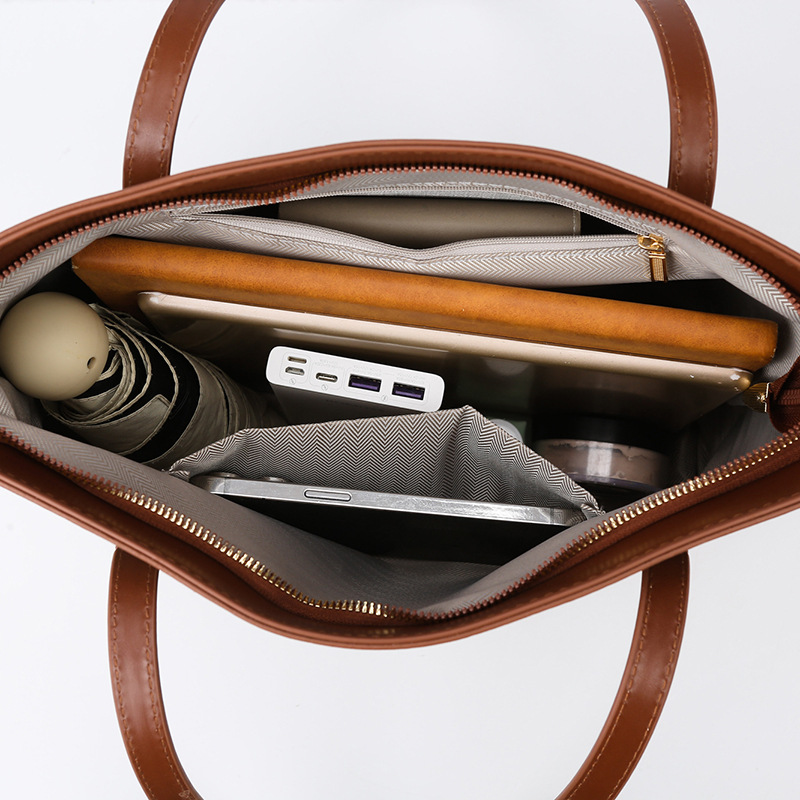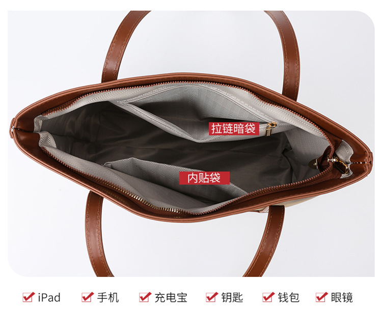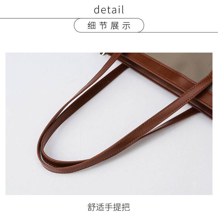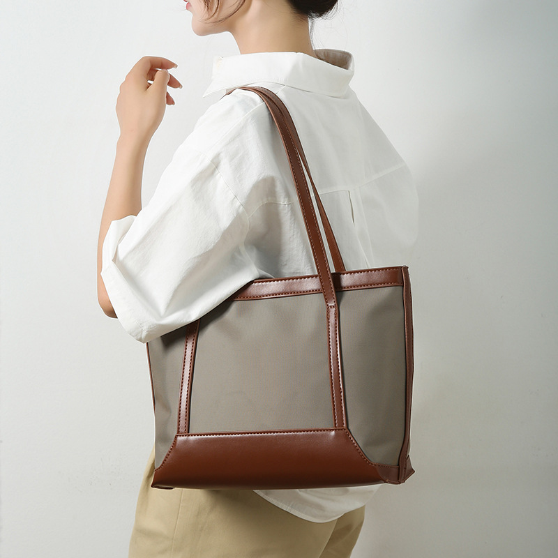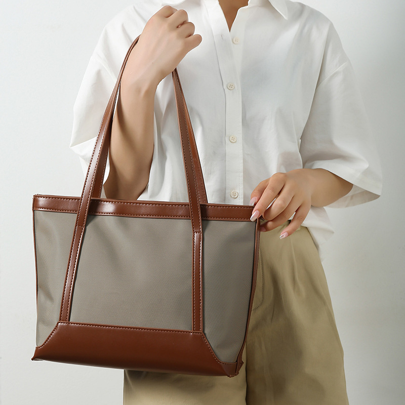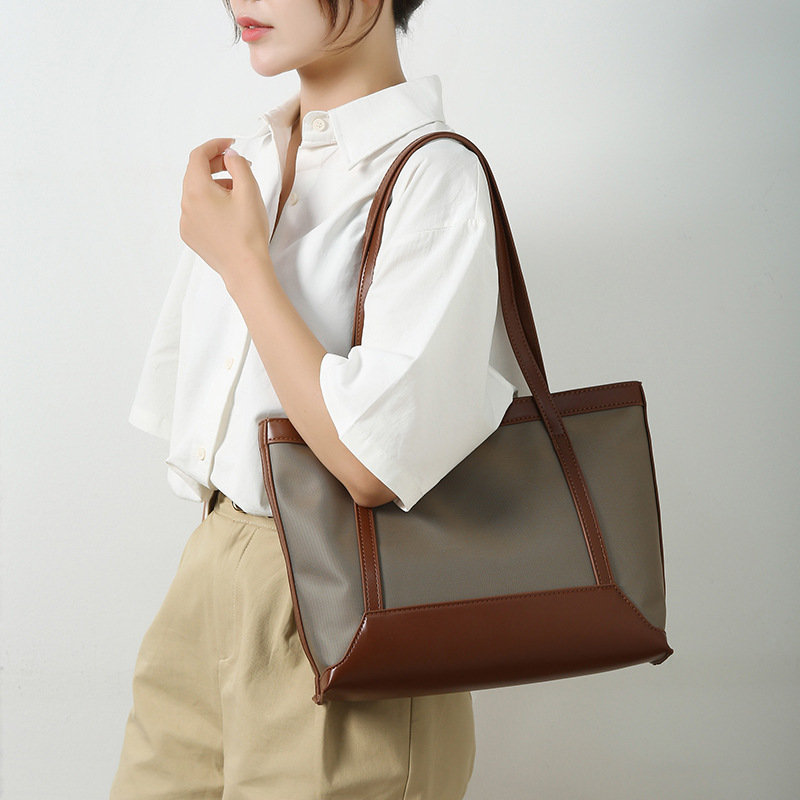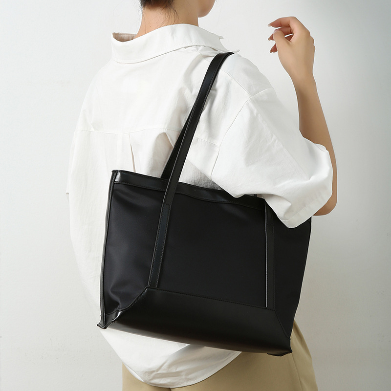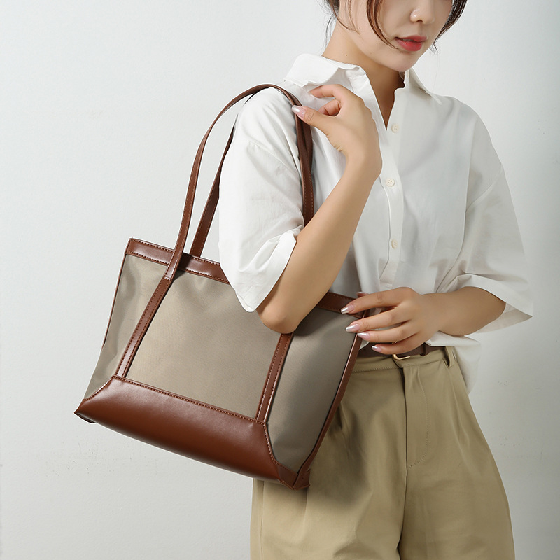 • 大容量ナイロントートバッグ女性の新しい PU ステッチファッション通勤ショルダーハンドバッグ