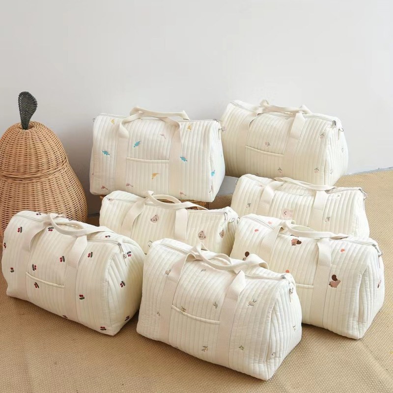 • 韓国イン新しい純綿刺繍トラベルバッグ大容量荷物バッグ軽量収納ポータブルクロスボディママバッグ