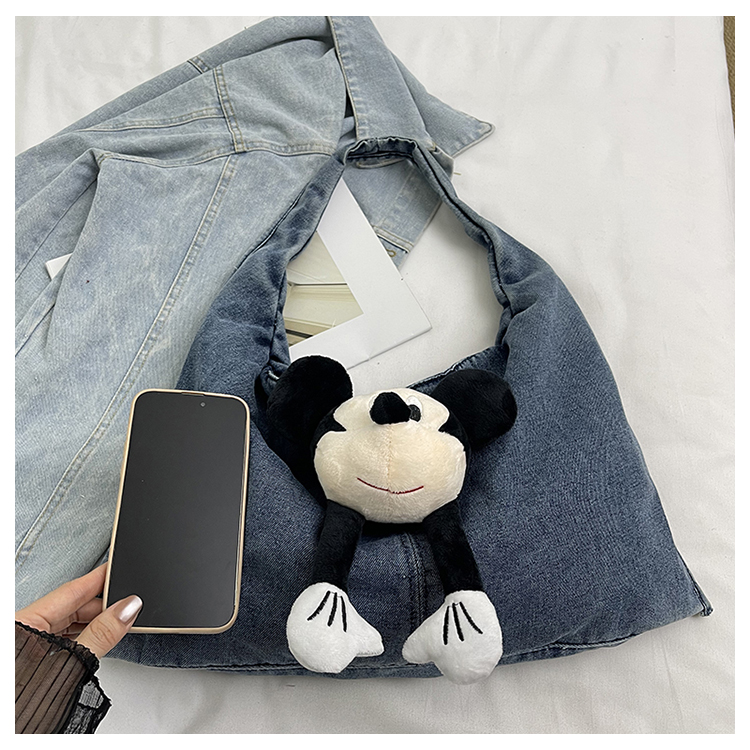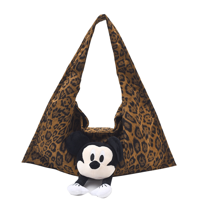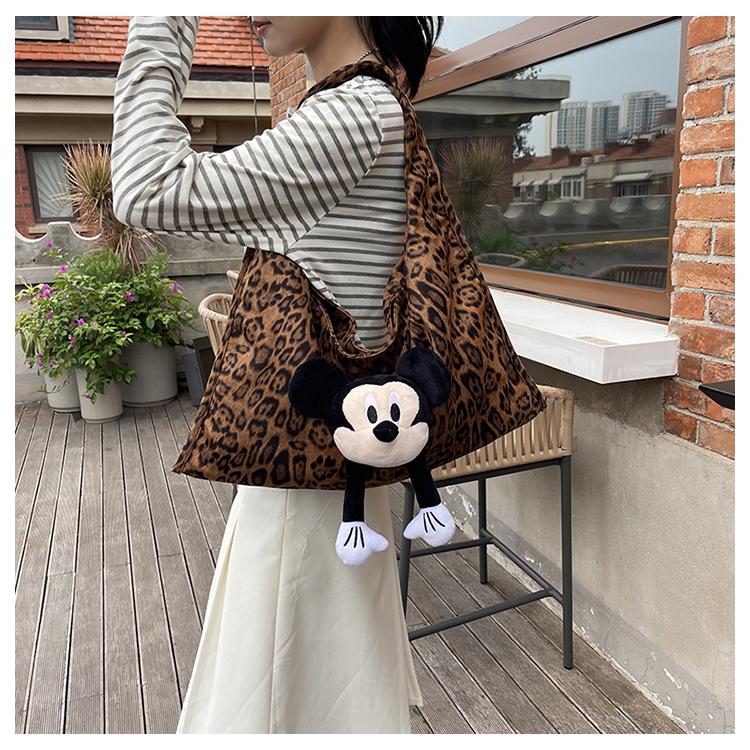 • 秋冬人気ヒョウ柄大容量バッグ女性用2024新作ミッキー人形バッグカジュアルデニムショルダーバッグ