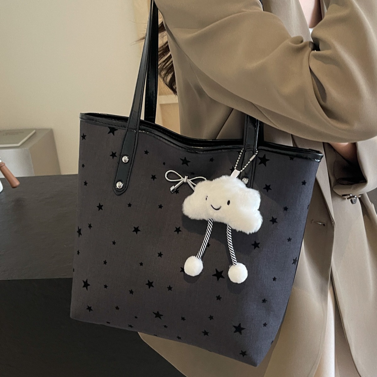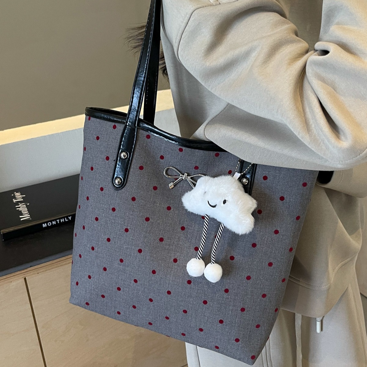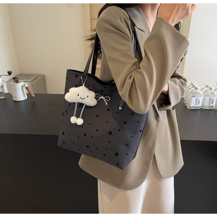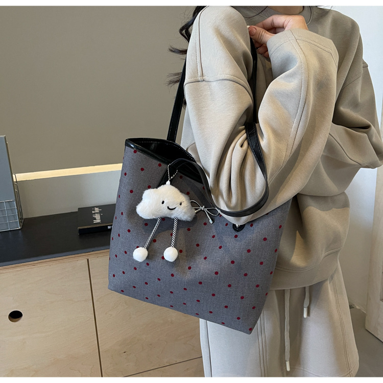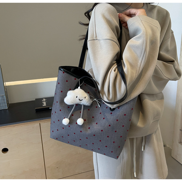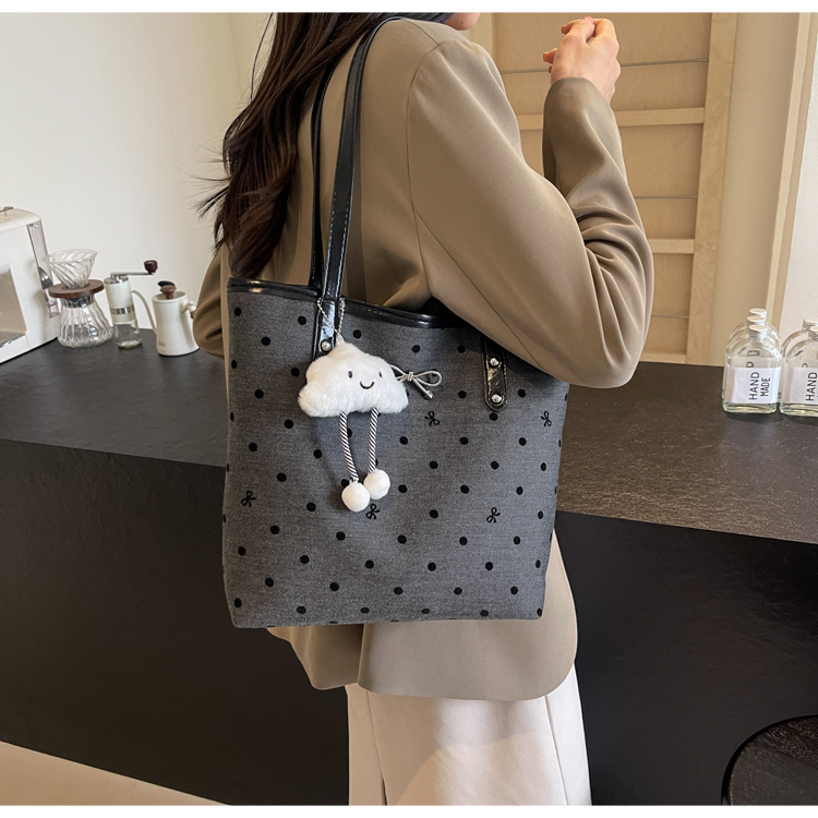 • カジュアル通勤大容量水玉バッグ女性の 2024 新しい大学生クラスバッグトートバッグキャンバスショルダーバッグ