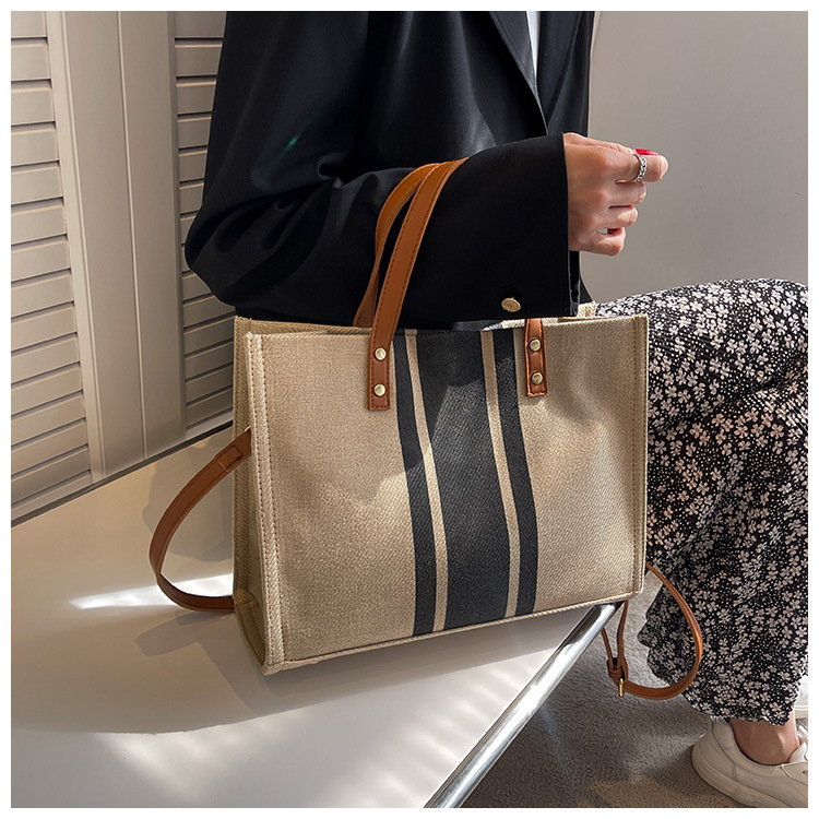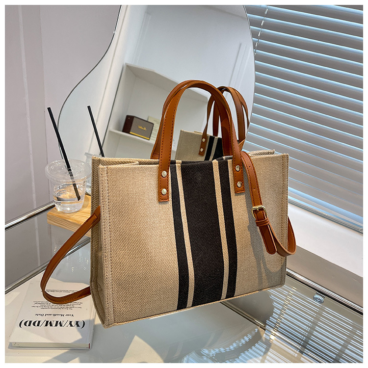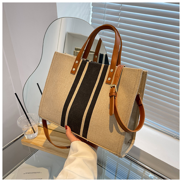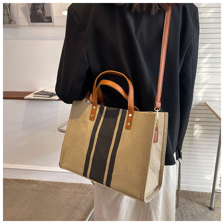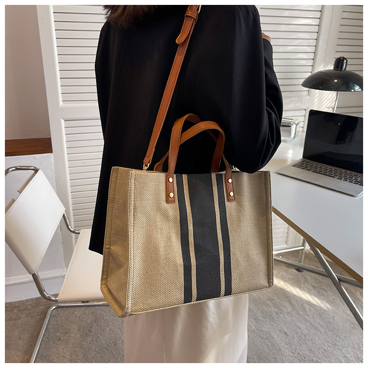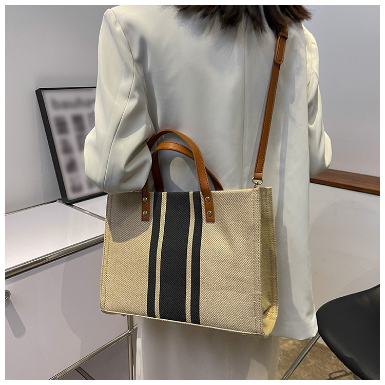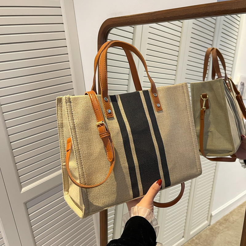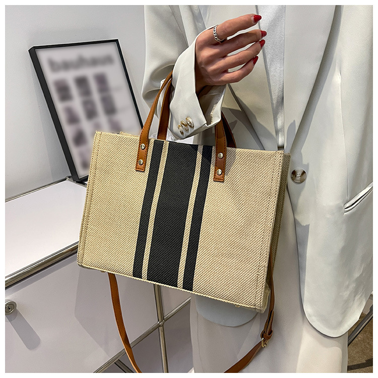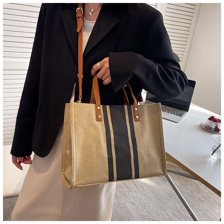 • 2024 春の新ポータブルブリーフケースプロフェッショナル通勤ストライプシンプルショルダー大容量キャンバスバッグ