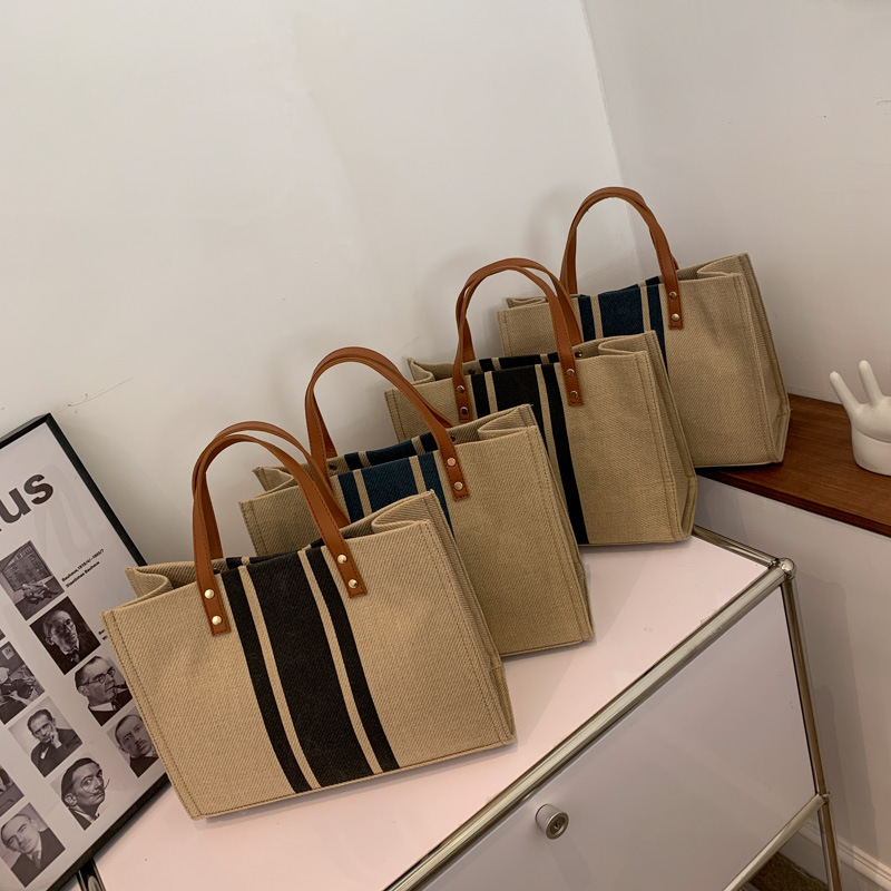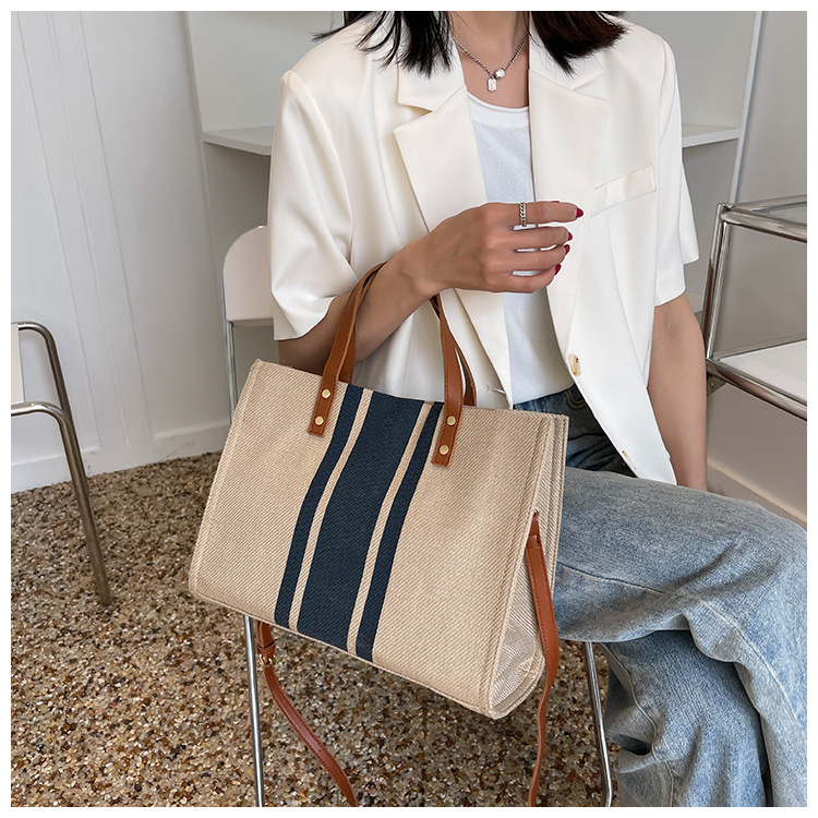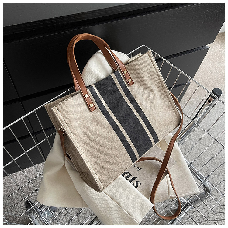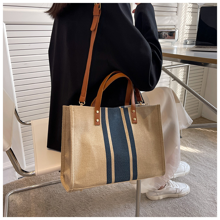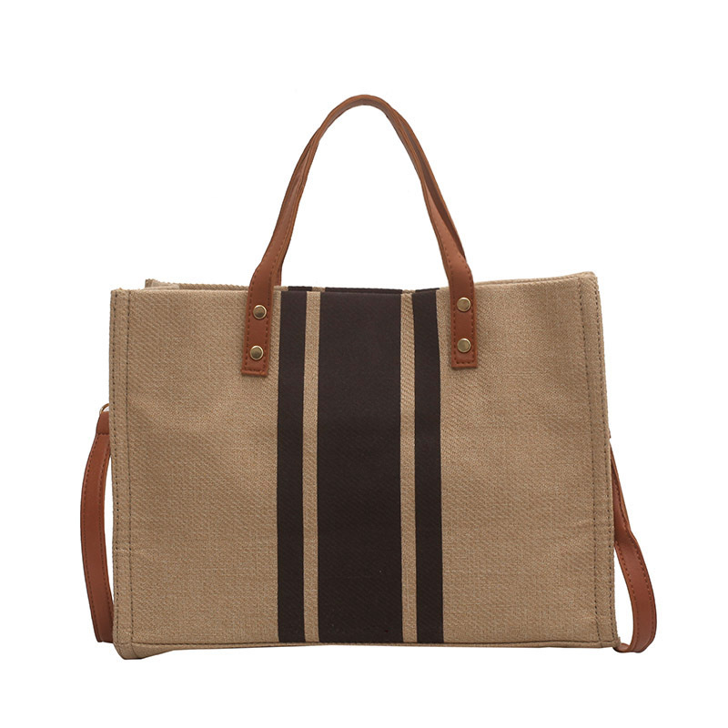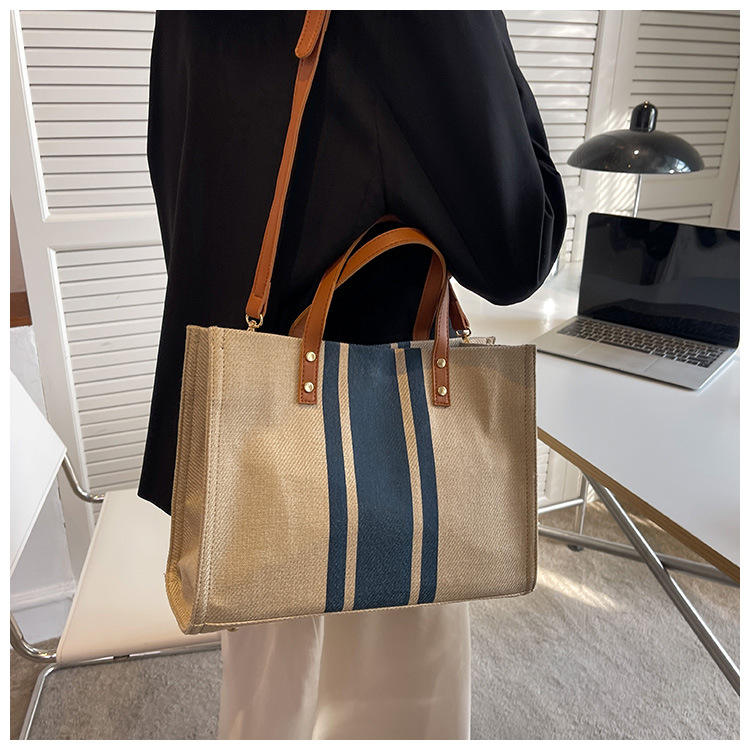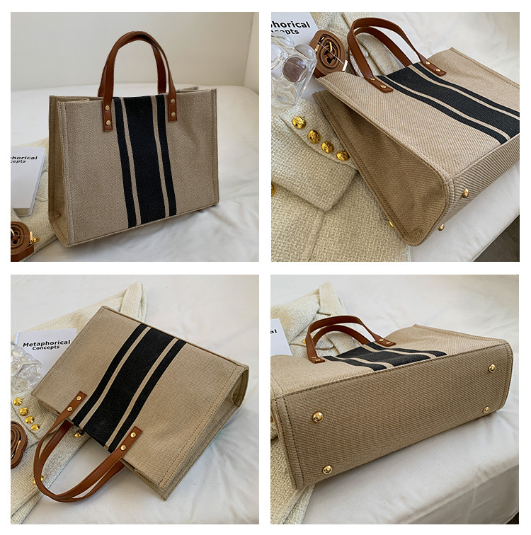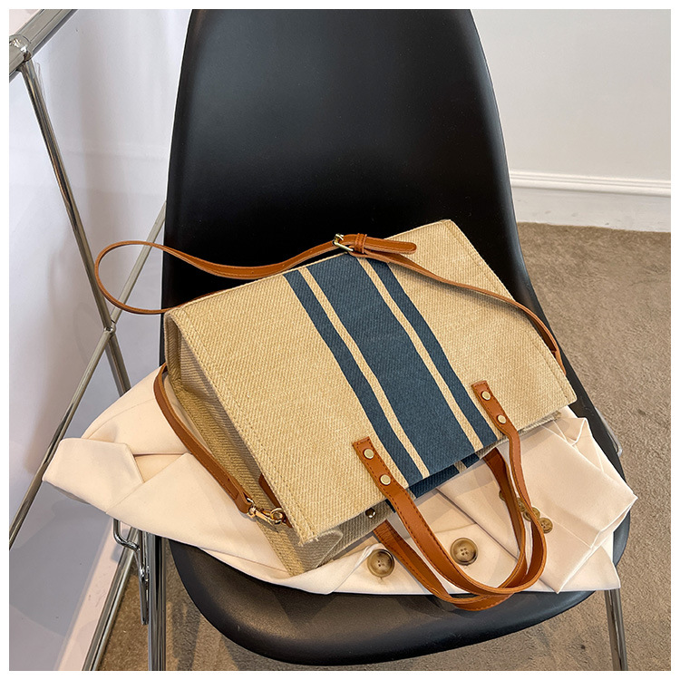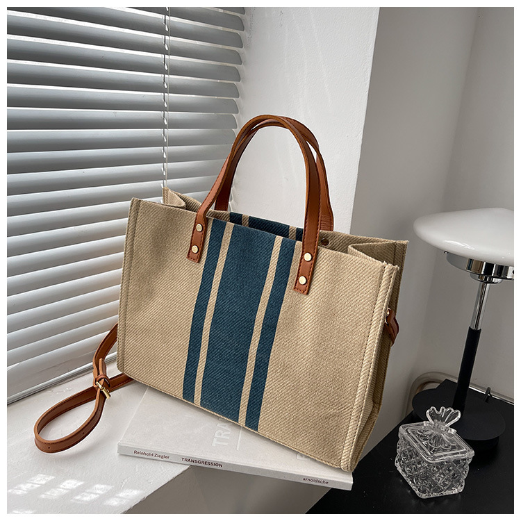 • 2024 春の新ポータブルブリーフケースプロフェッショナル通勤ストライプシンプルショルダー大容量キャンバスバッグ