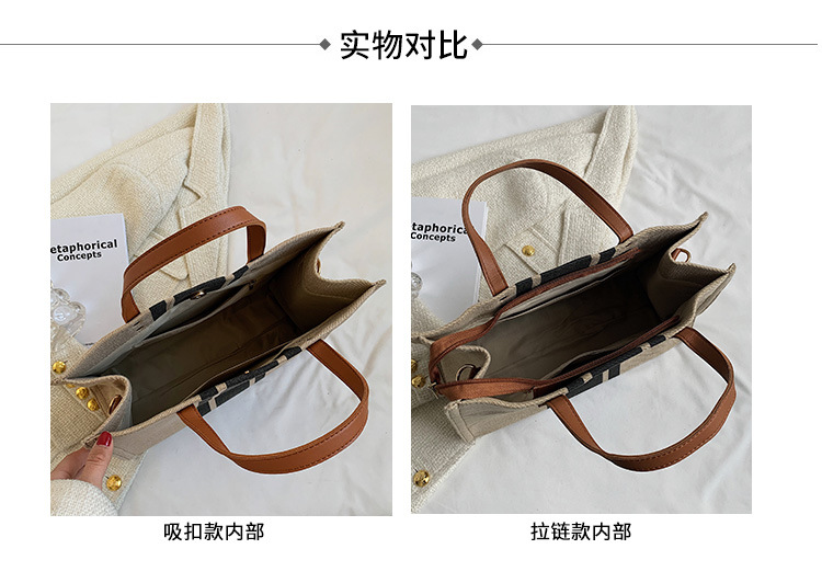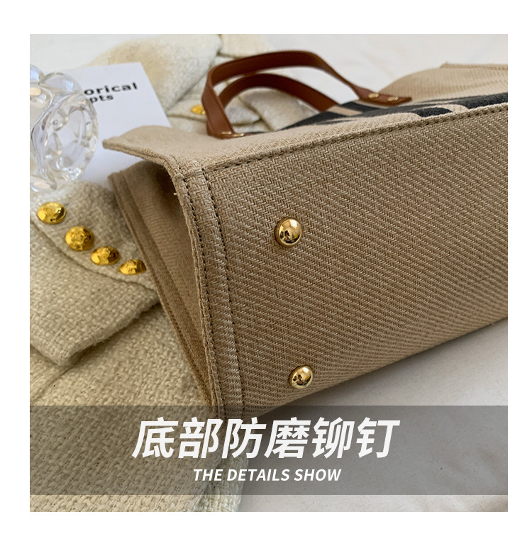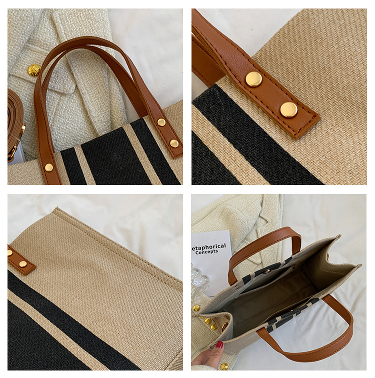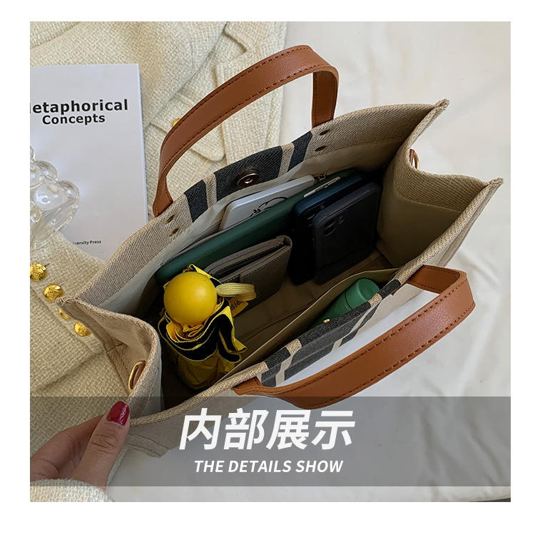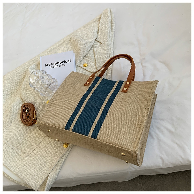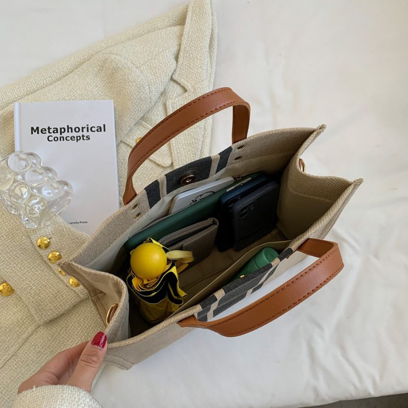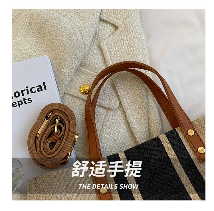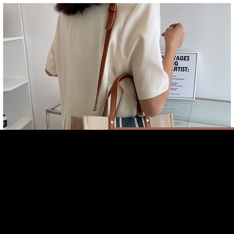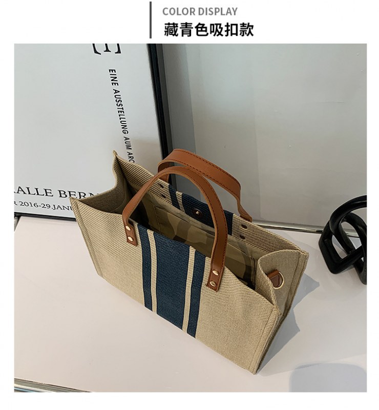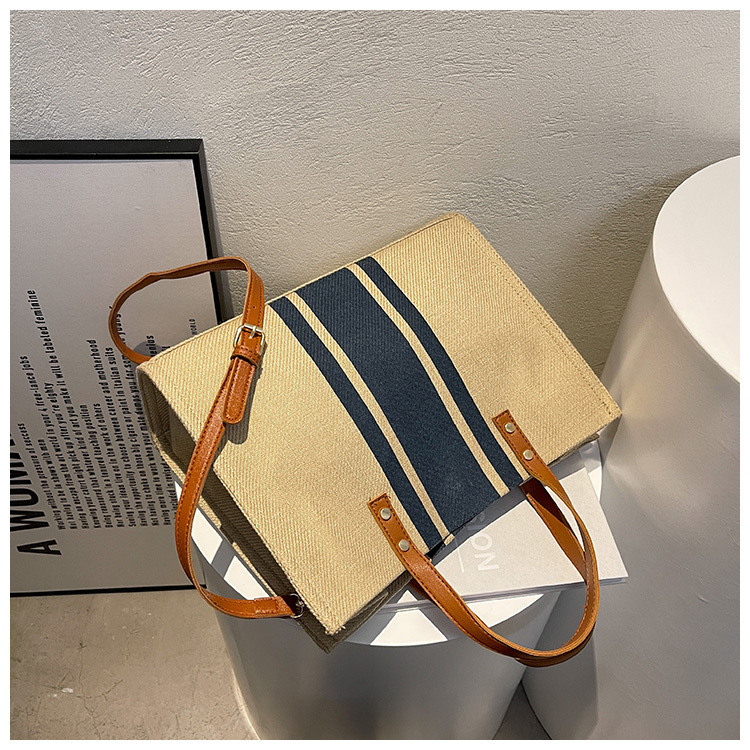 • 2024 春の新ポータブルブリーフケースプロフェッショナル通勤ストライプシンプルショルダー大容量キャンバスバッグ