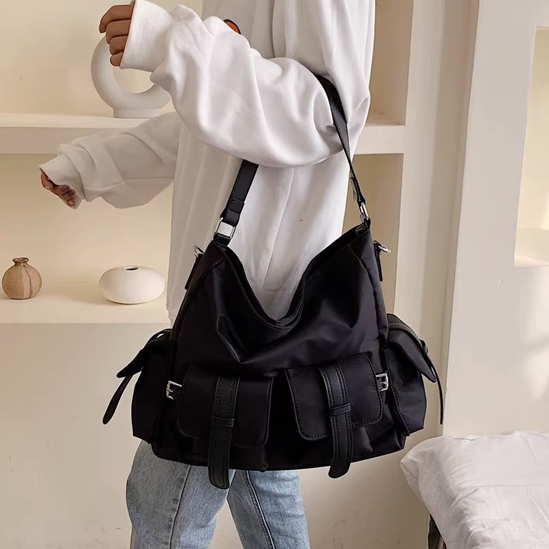 • テクスチャードナイロン生地のトートバッグ、新しいトレンドの大容量ショルダーバッグ、通勤用多目的ハンドバッグ、ファッショナブルなクロスボディバッグ