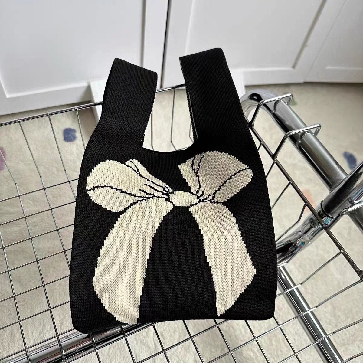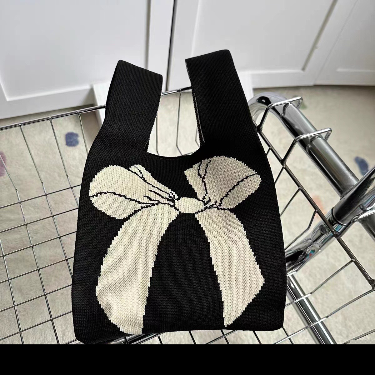 • ニットリボンコントラストカラーハンドバッグお土産織花ハンドバッグ大容量カジュアル織バッグファッション