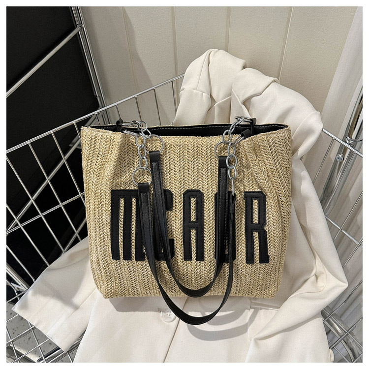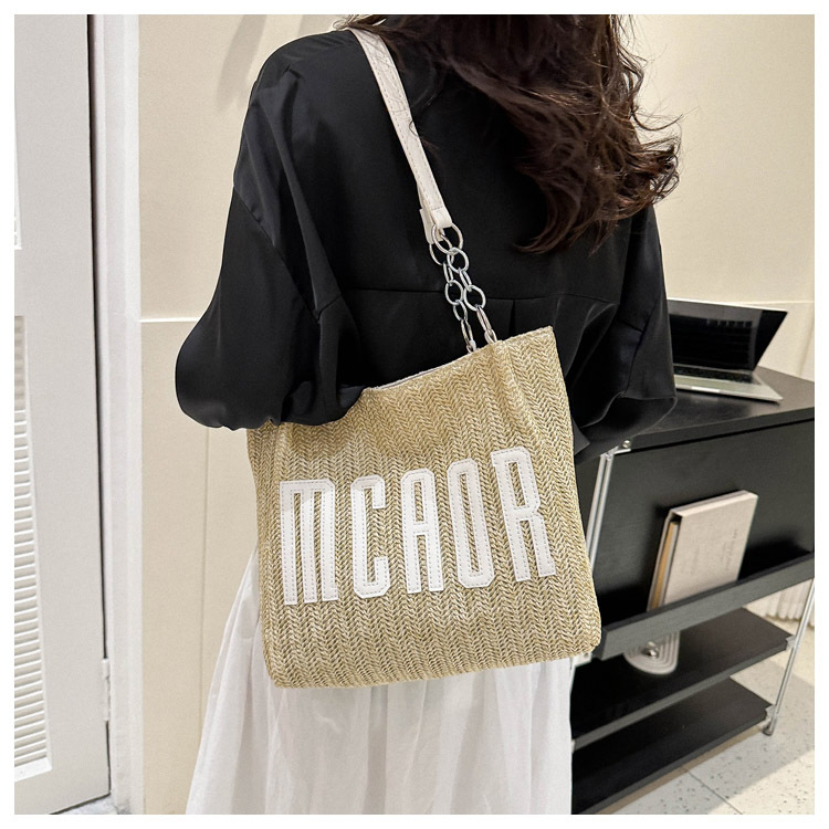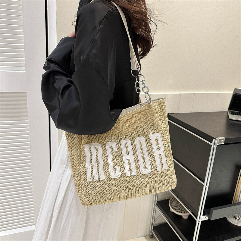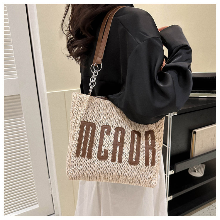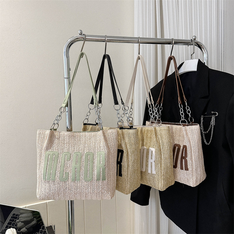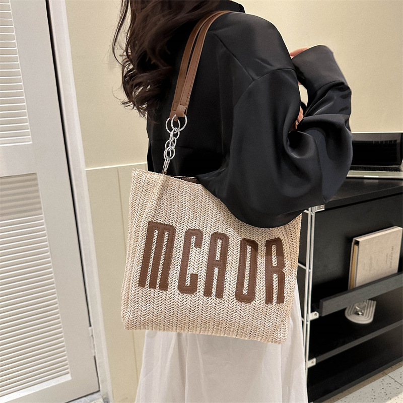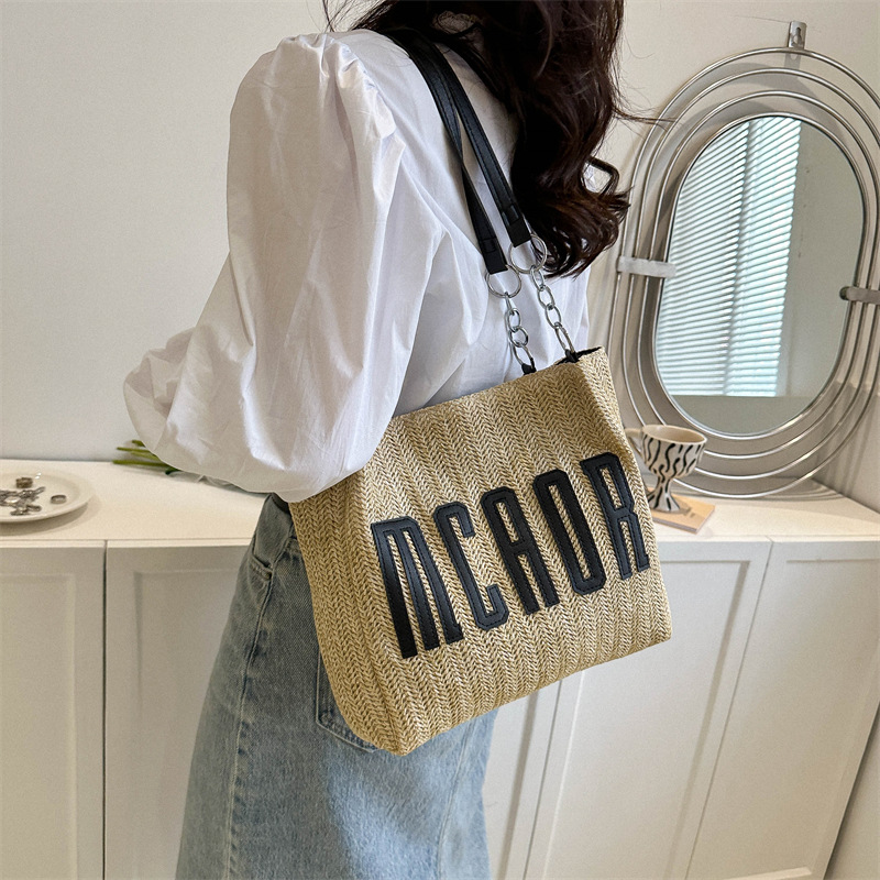 • レターシンプル、ファッショナブルでエレガントな通勤ハンドバッグ、春夏の新しいスタイル、カジュアルバッグ、織りトートバッグ
