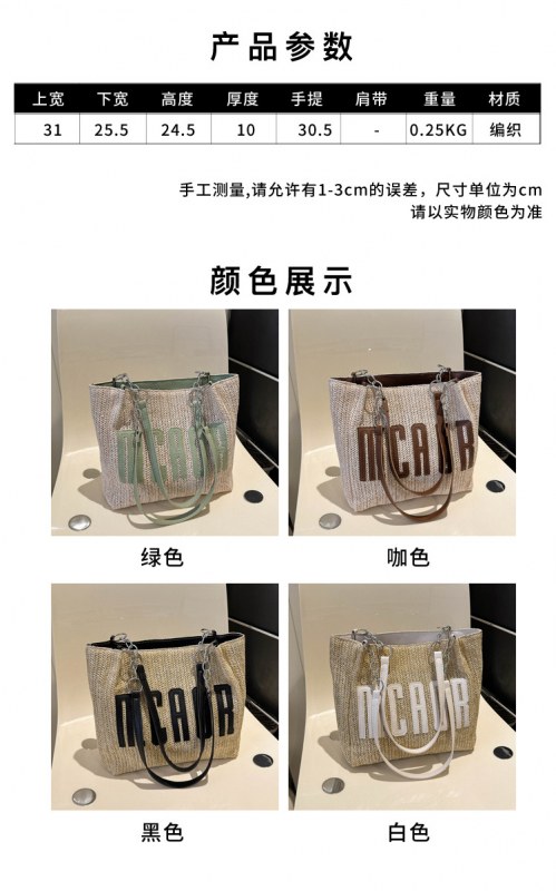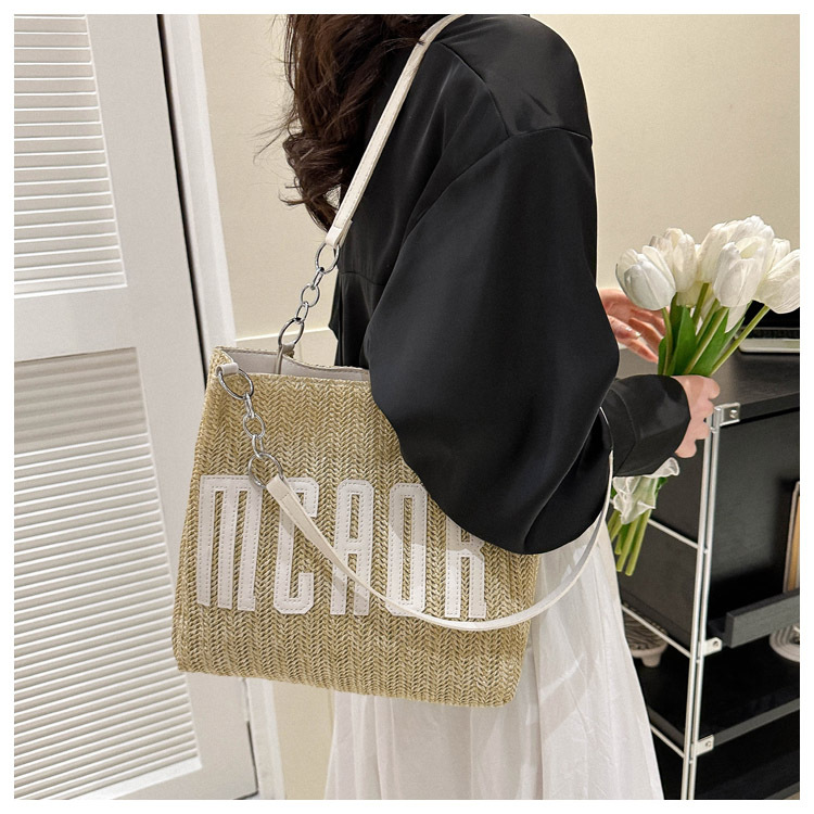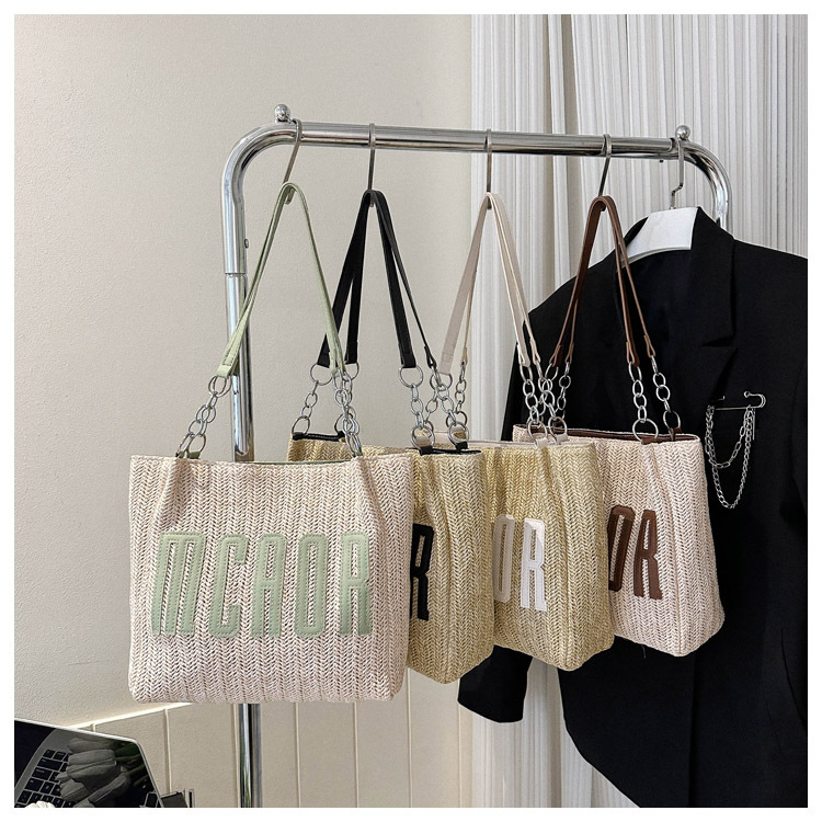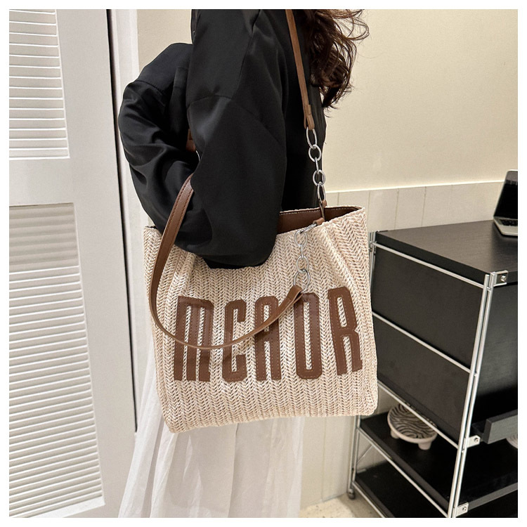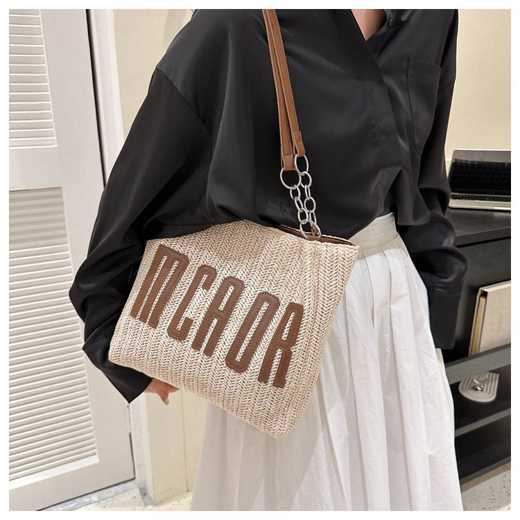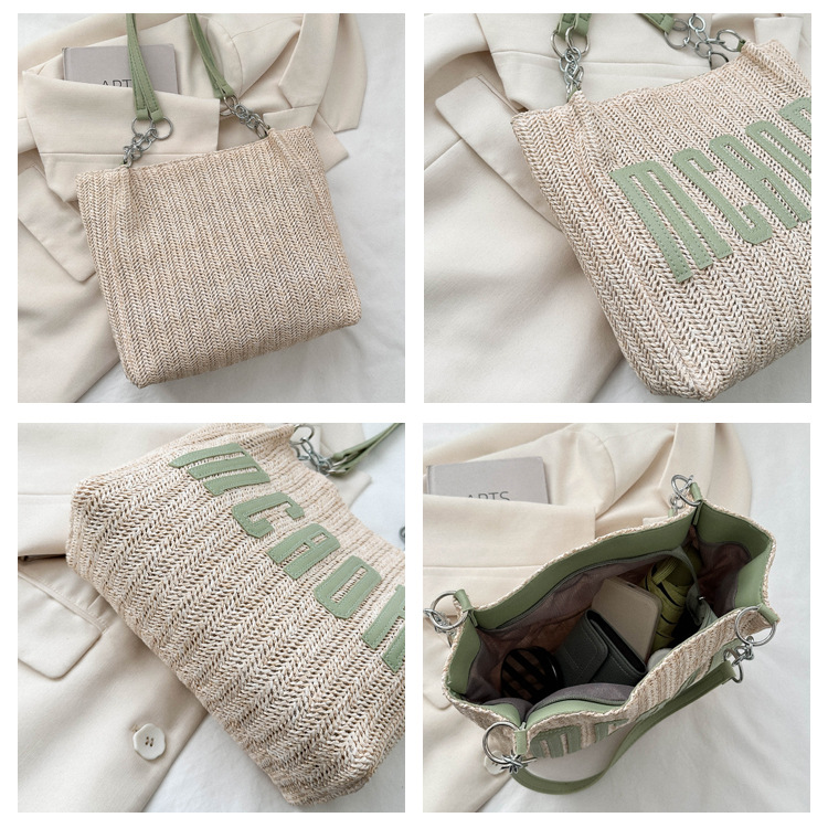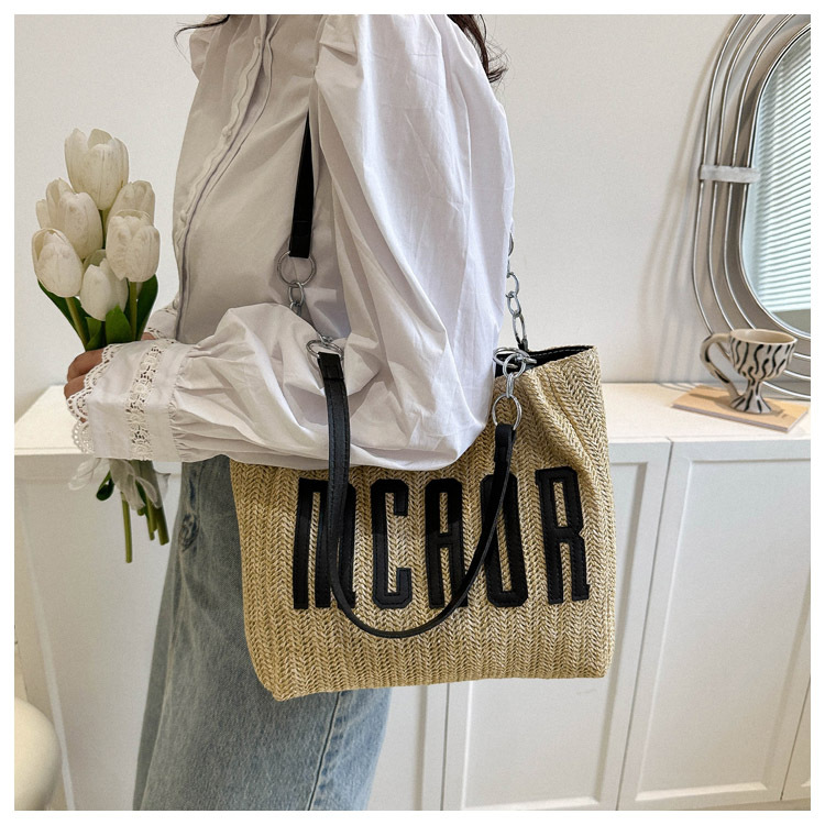 • レターシンプル、ファッショナブルでエレガントな通勤ハンドバッグ、春夏の新しいスタイル、カジュアルバッグ、織りトートバッグ