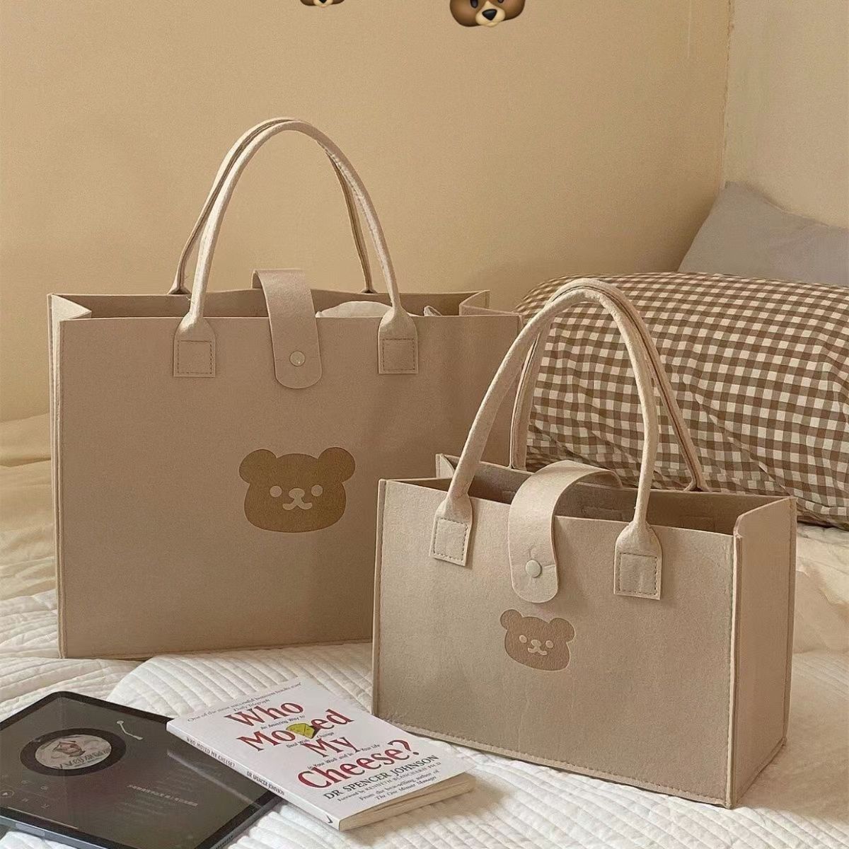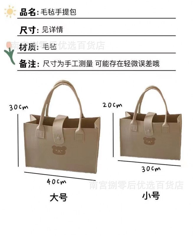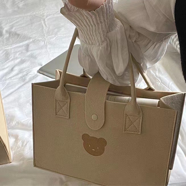 • 厚みのあるクマのフェルトバッグ手持ちお土産バッグお弁当箱収納バッグ