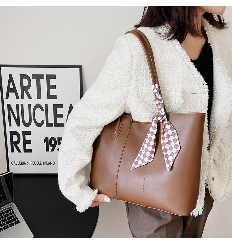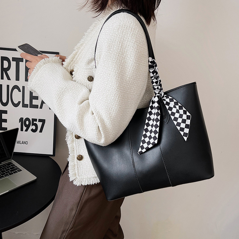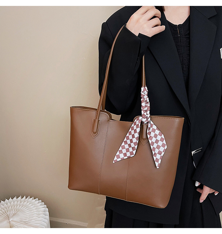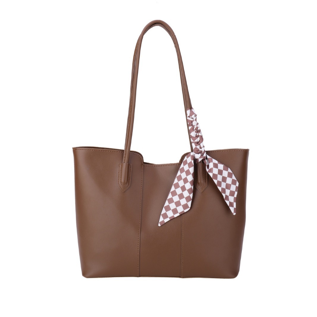 • 夏の新作バッグレディースシングルショルダーリボントートバッグカーステッチオープン大容量脇バッグ
