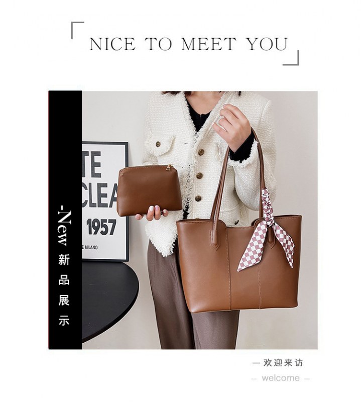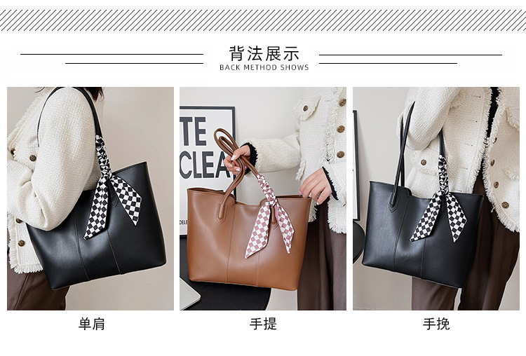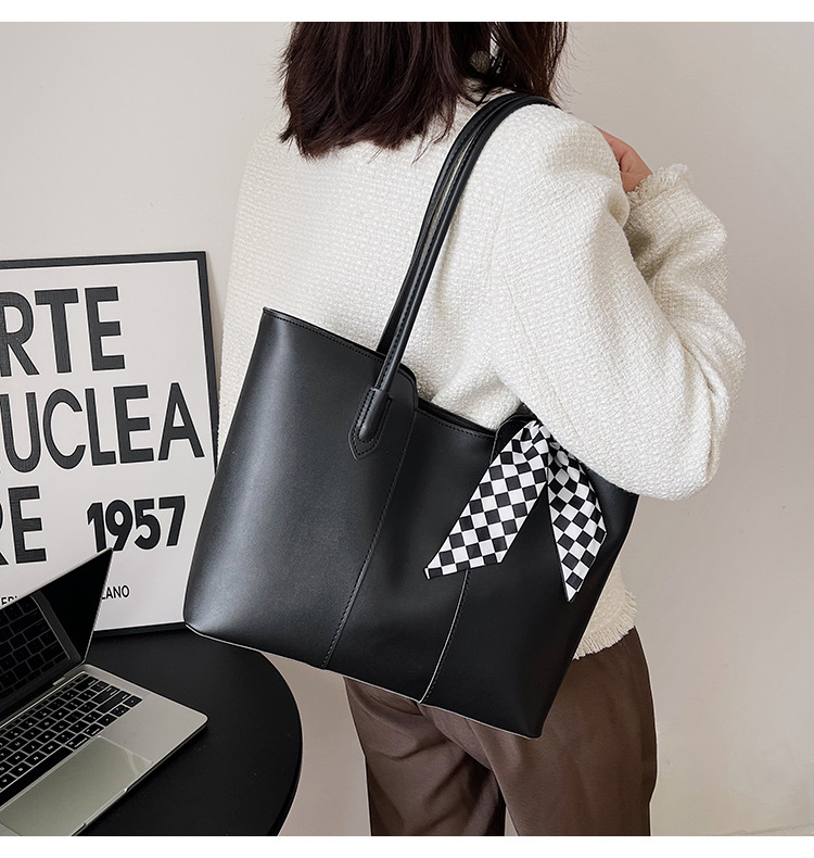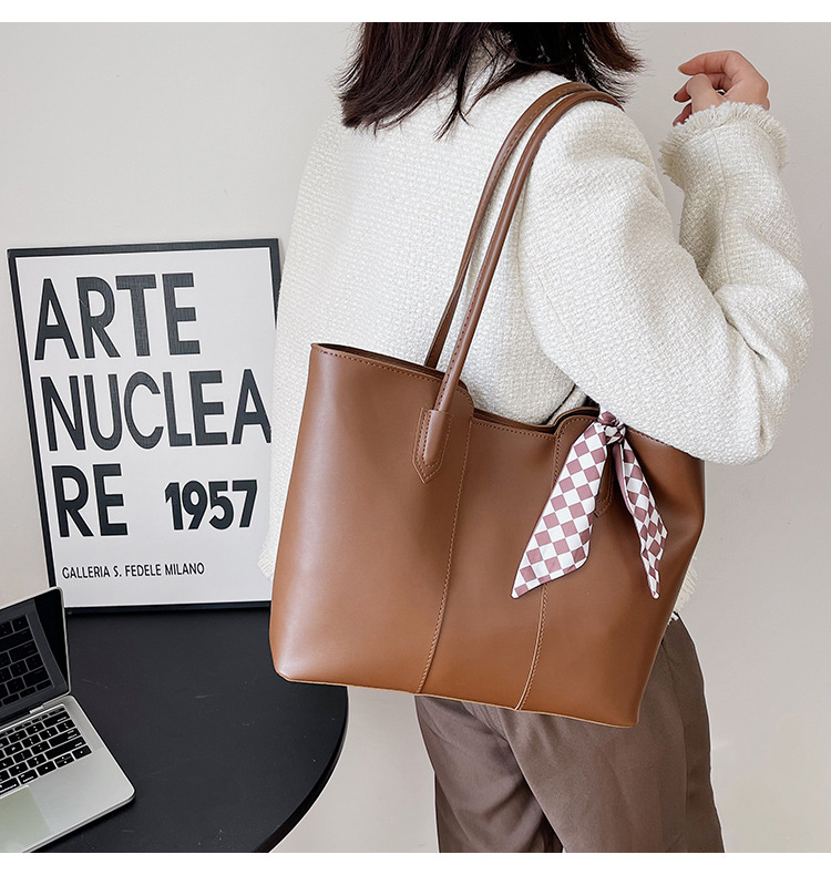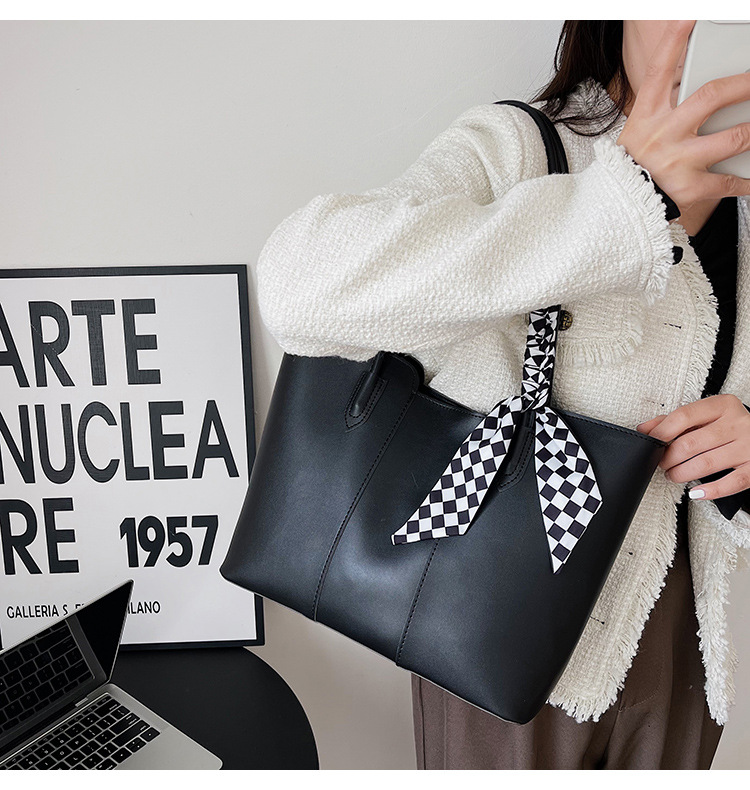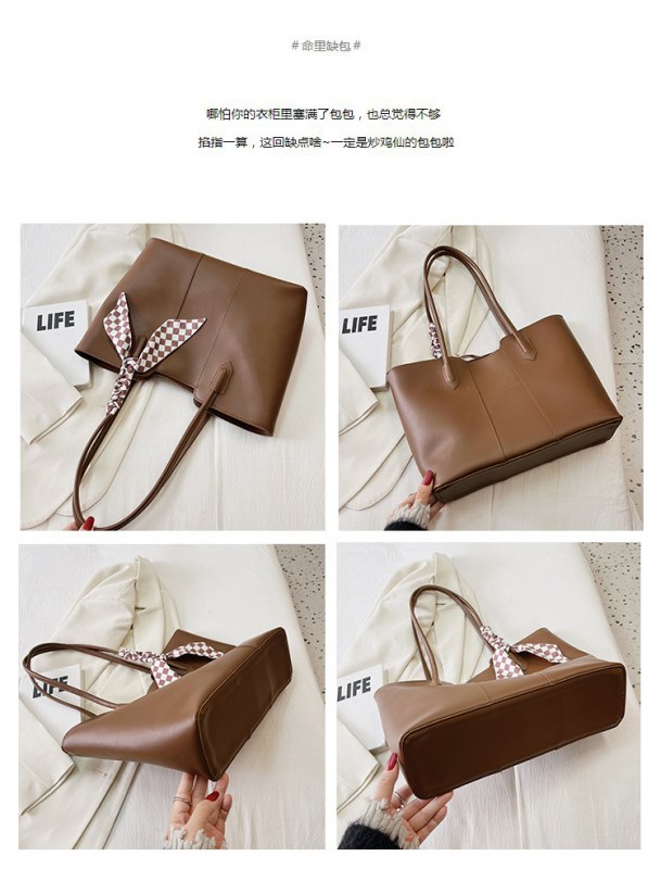 • 夏の新作バッグレディースシングルショルダーリボントートバッグカーステッチオープン大容量脇バッグ