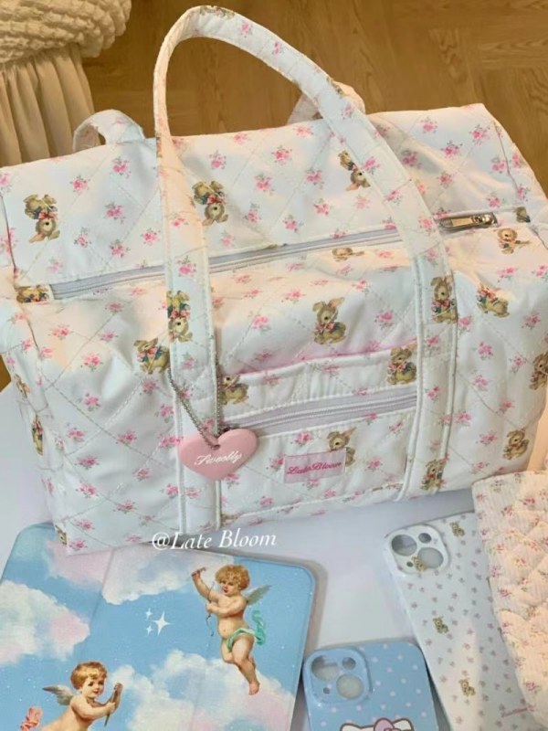 • 大容量 短期旅行 女の子 新作 2024 通勤 学生クラス シングルショルダー トートバッグ 花柄生地