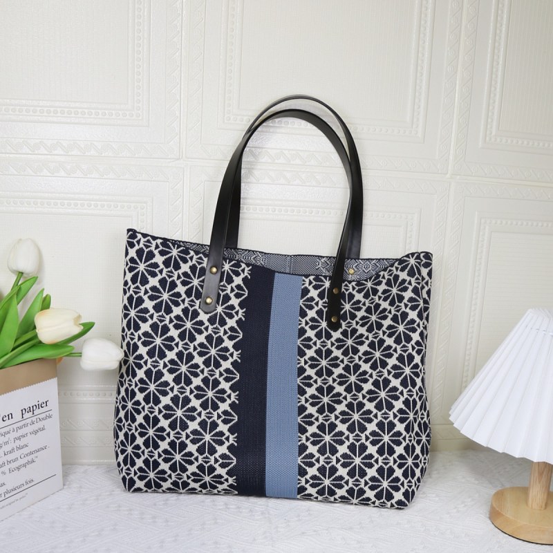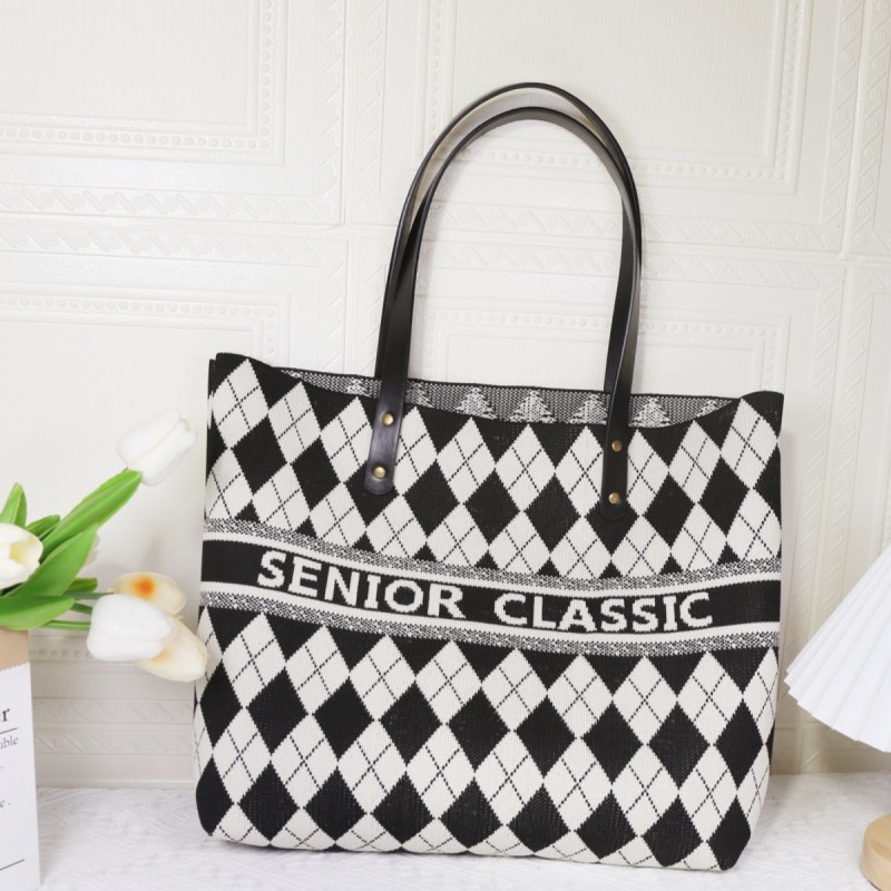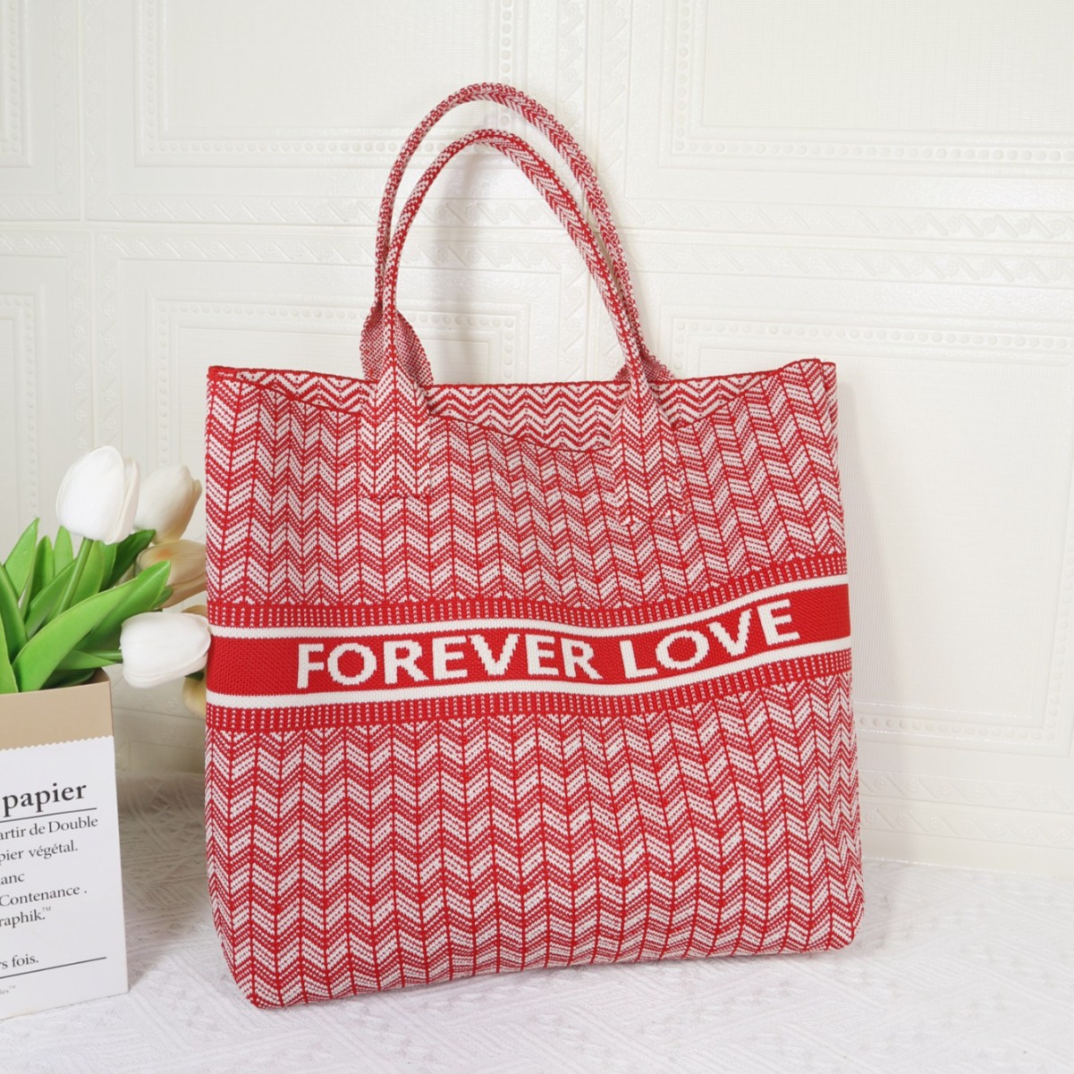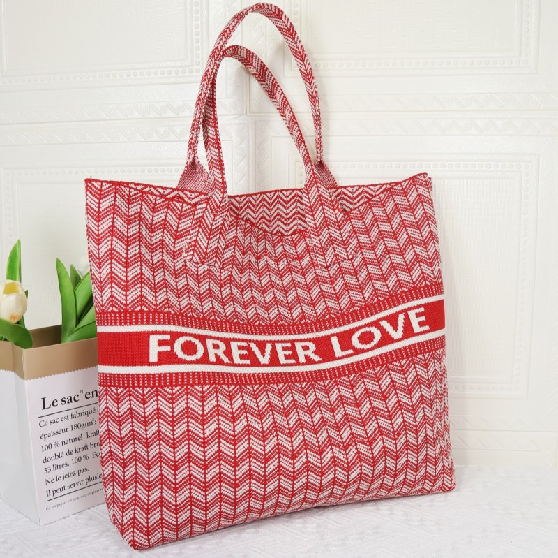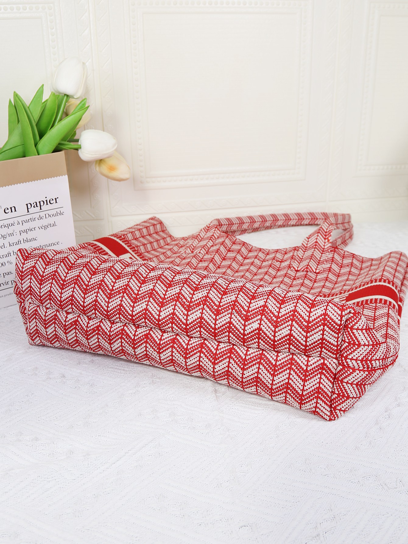 • 新しいカジュアルなヨーロッパとアメリカのストライプハンドバッグの女性の大容量ニットトートバッグ軽量ショルダーハンドバッグ