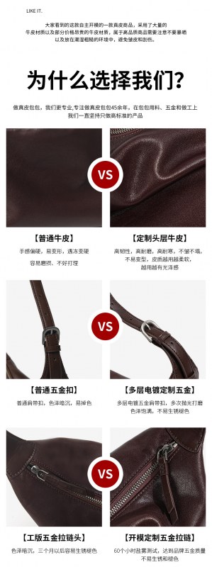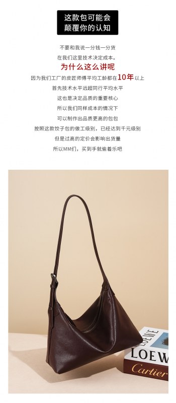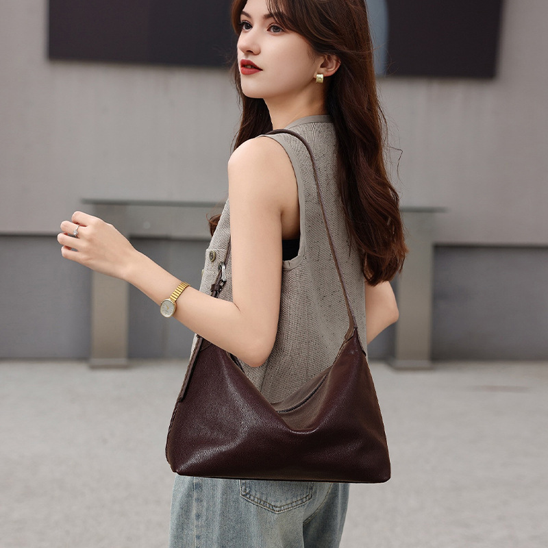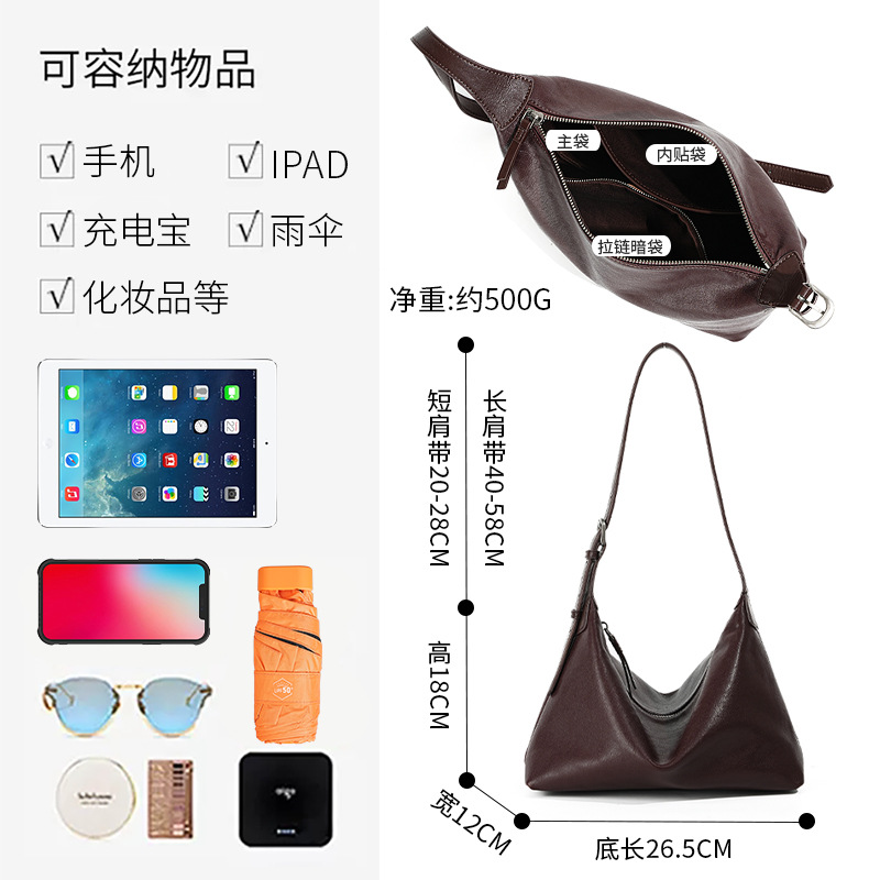 • 牛革高級ワンショルダー団子バッグ、通勤用多用途大容量本革ホーボー脇下バッグ
