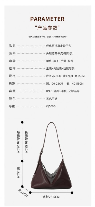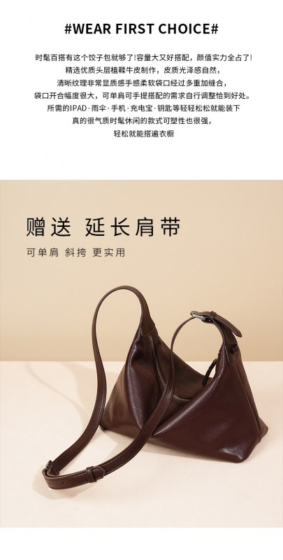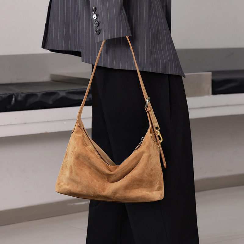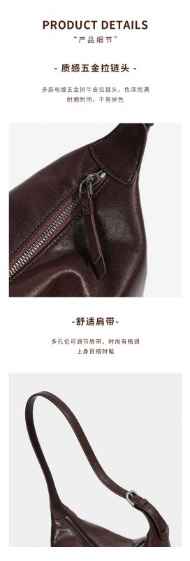 • 牛革脇の下のクラシックなクロスボディバッグ、女性用の多用途カジュアルレザー通勤ショルダーダンプリングバッグ
