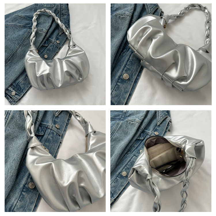 • ファッショナブルな気質のプリーツハンドバッグ夏多用途イン韓国語版ワンショルダー脇の下バッグ団子バッグ女性のための