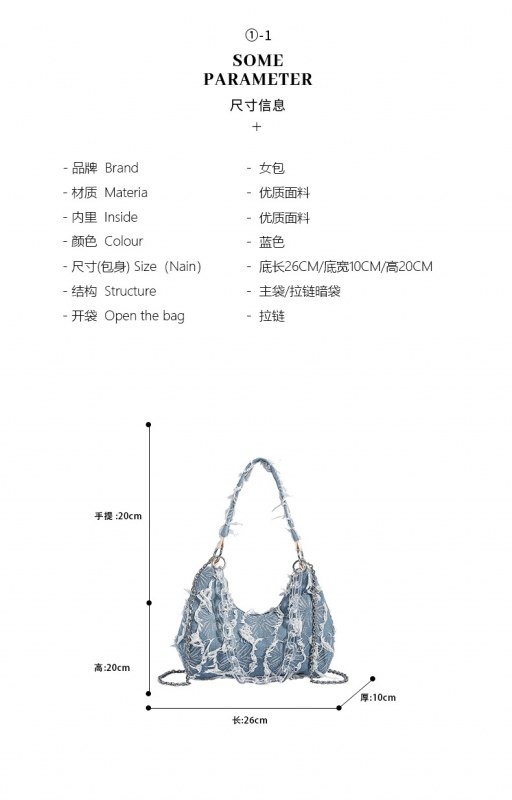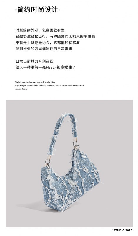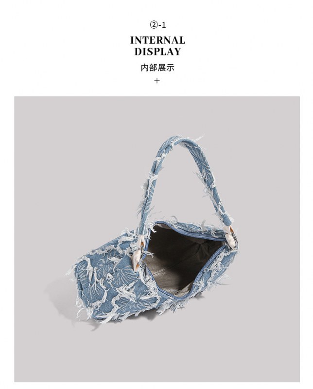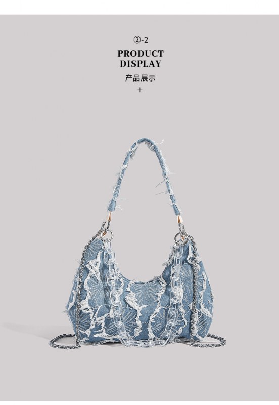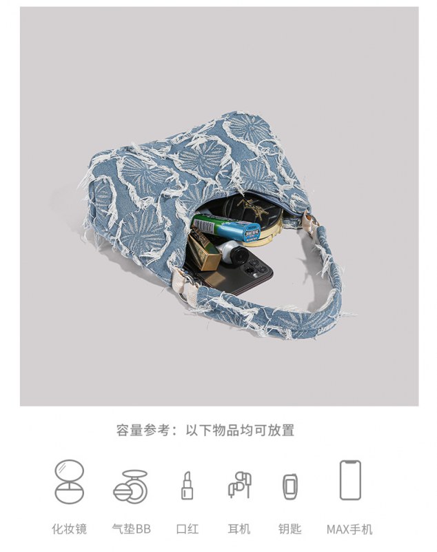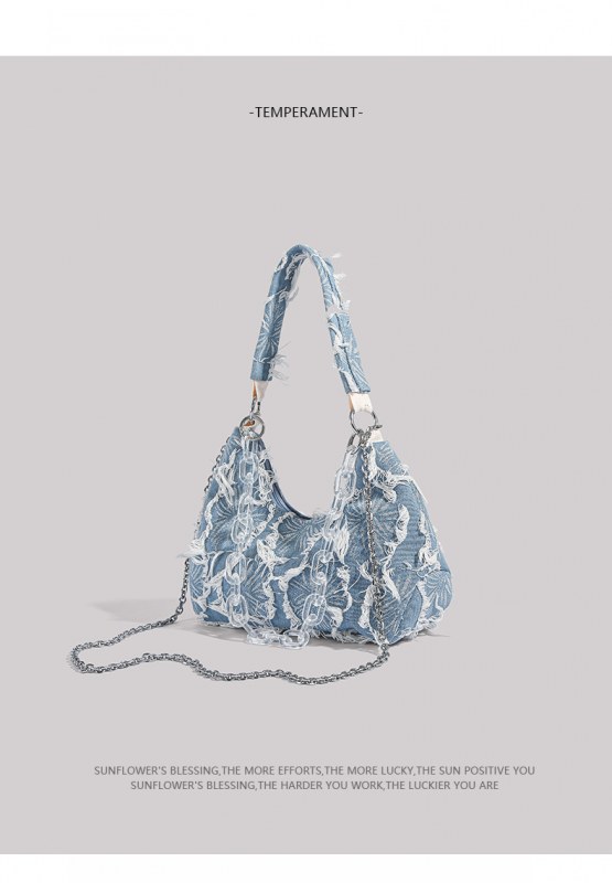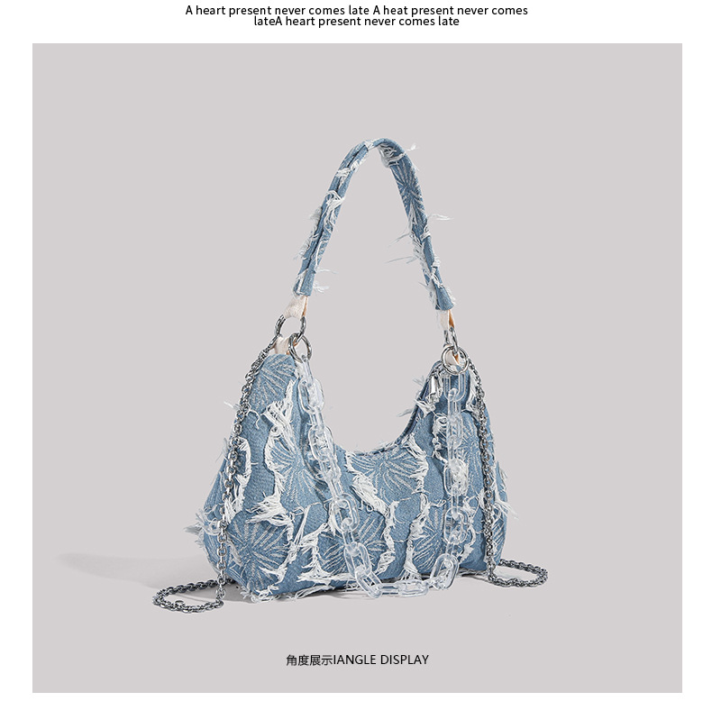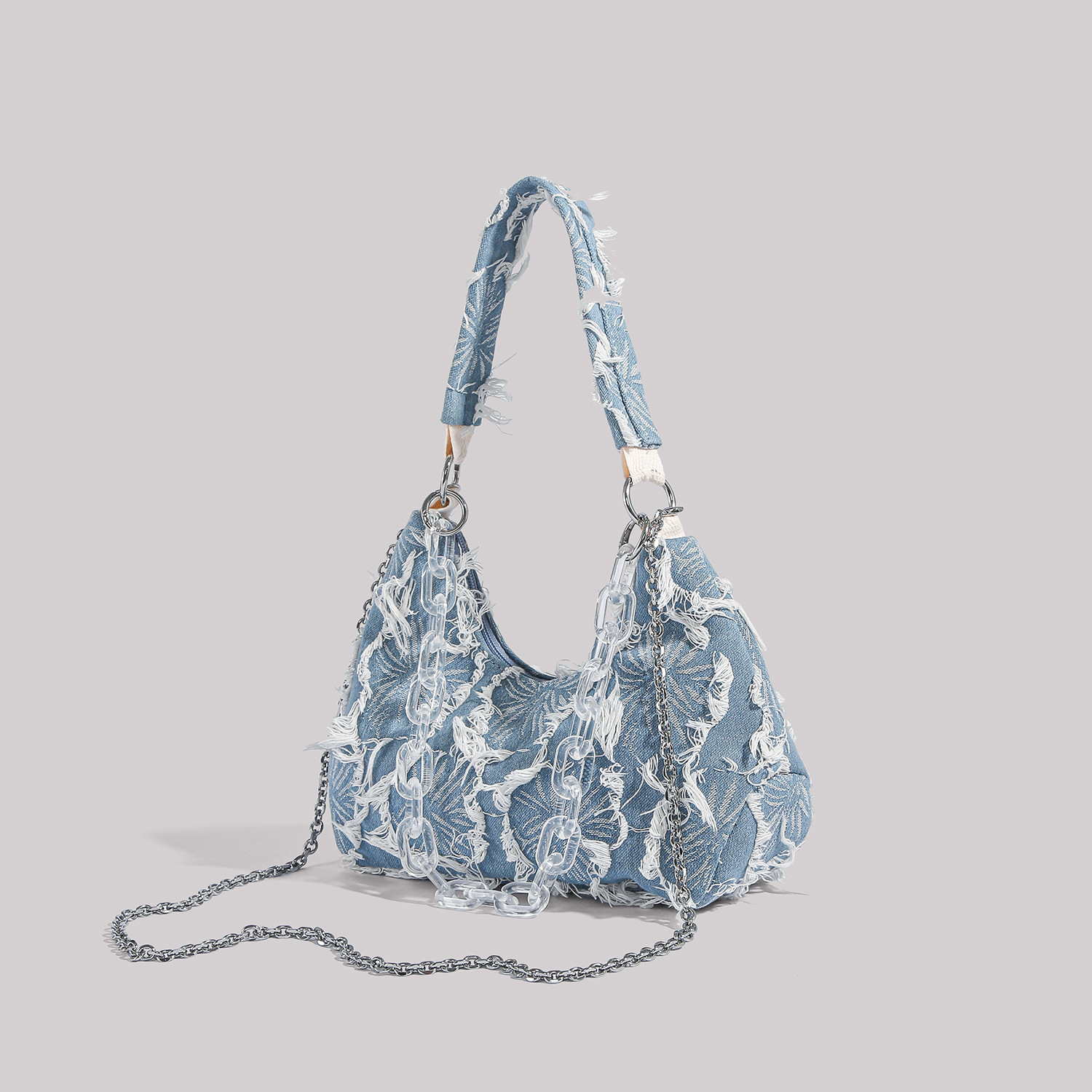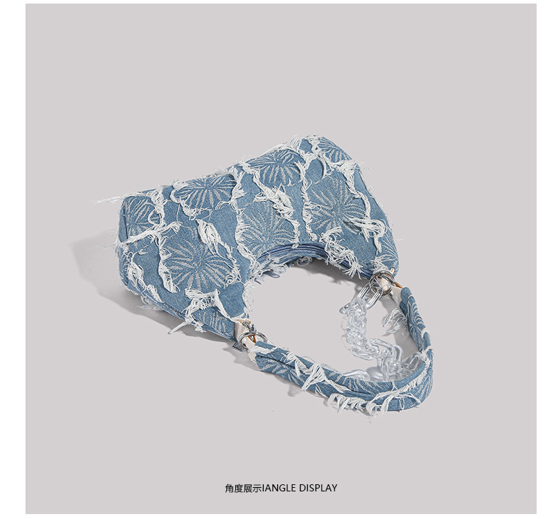 • 女性のための夏のデニムバッグ 2024 新しいスタイルのハイエンドファッション多用途甘くてクールな通勤脇の下バゲットショルダーバッグ
