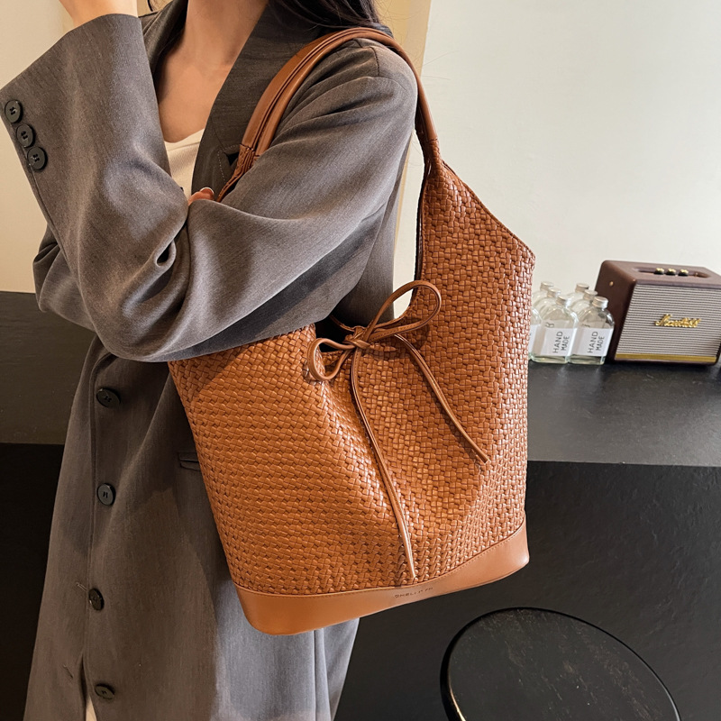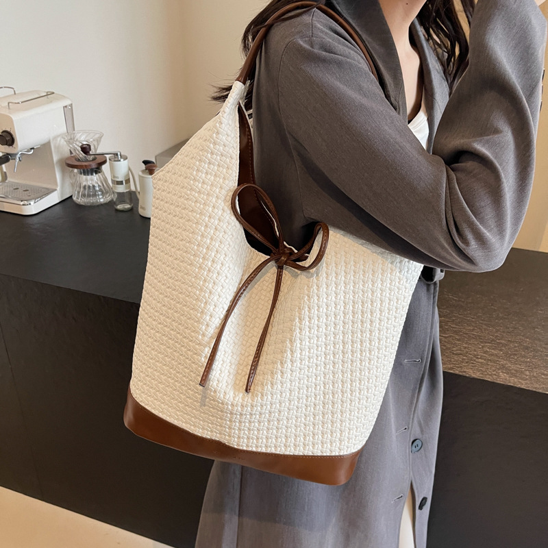 • 2024年の新入学シーズンの新しい織りトートバッグ、ハイエンドカジュアルな大容量ハンドバッグ、ファッショナブルで多用途なショルダーバッグ