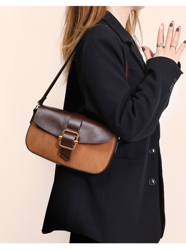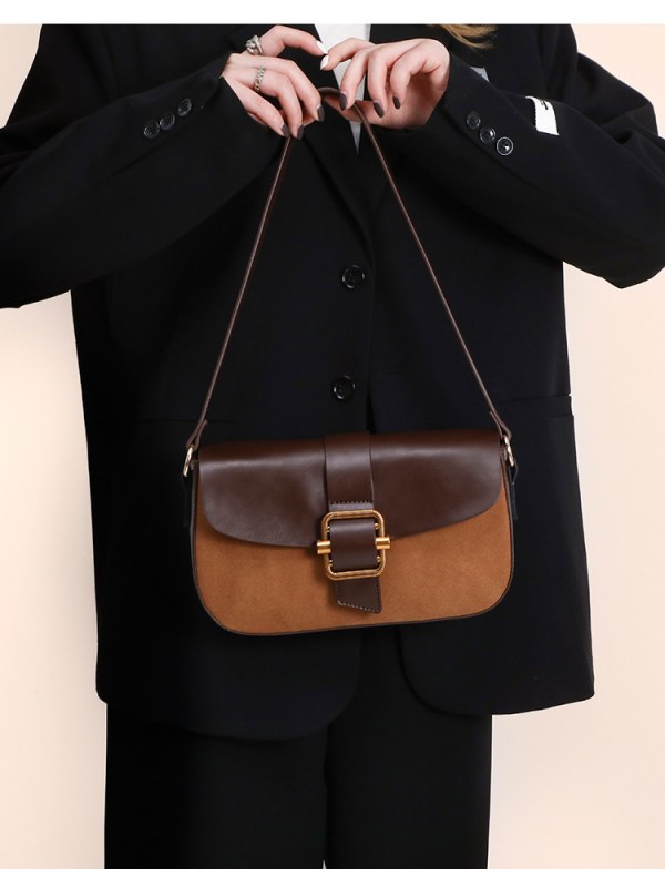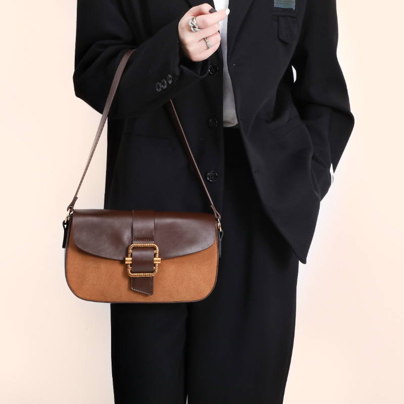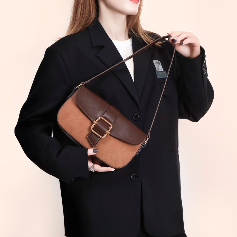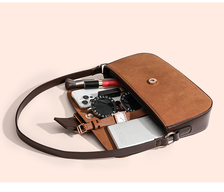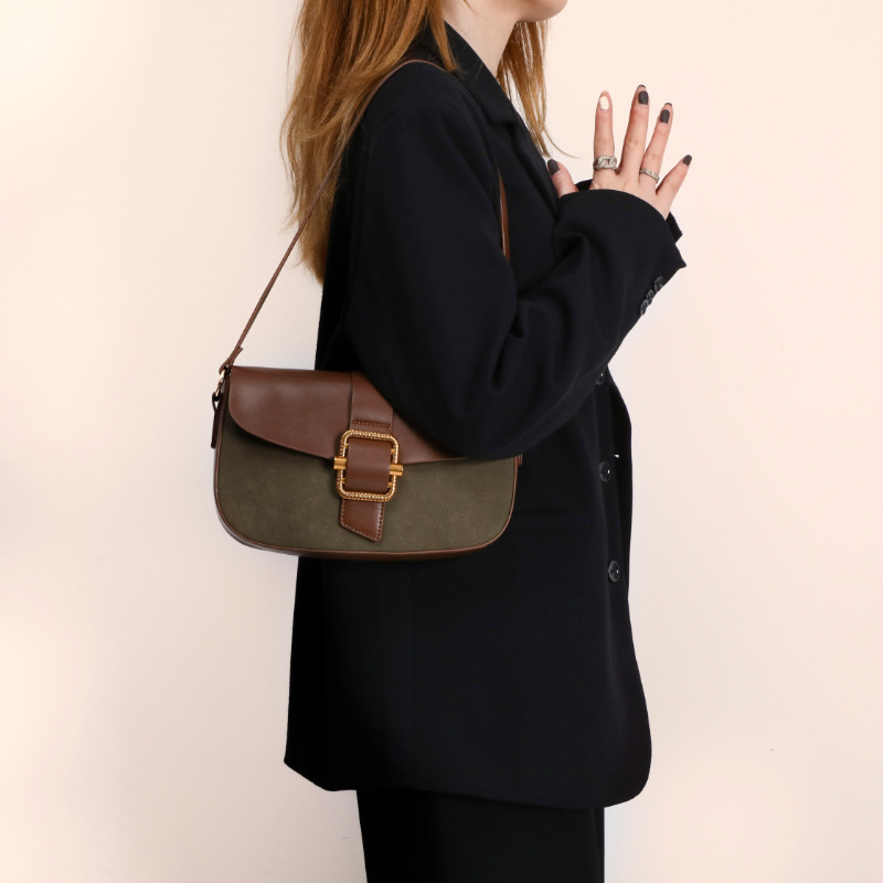 • レトロなショルダーバッグ、マットステッチのコントラストを施した脇の下バッグ、大容量、ハイエンドで多用途なクロスボディバッグ