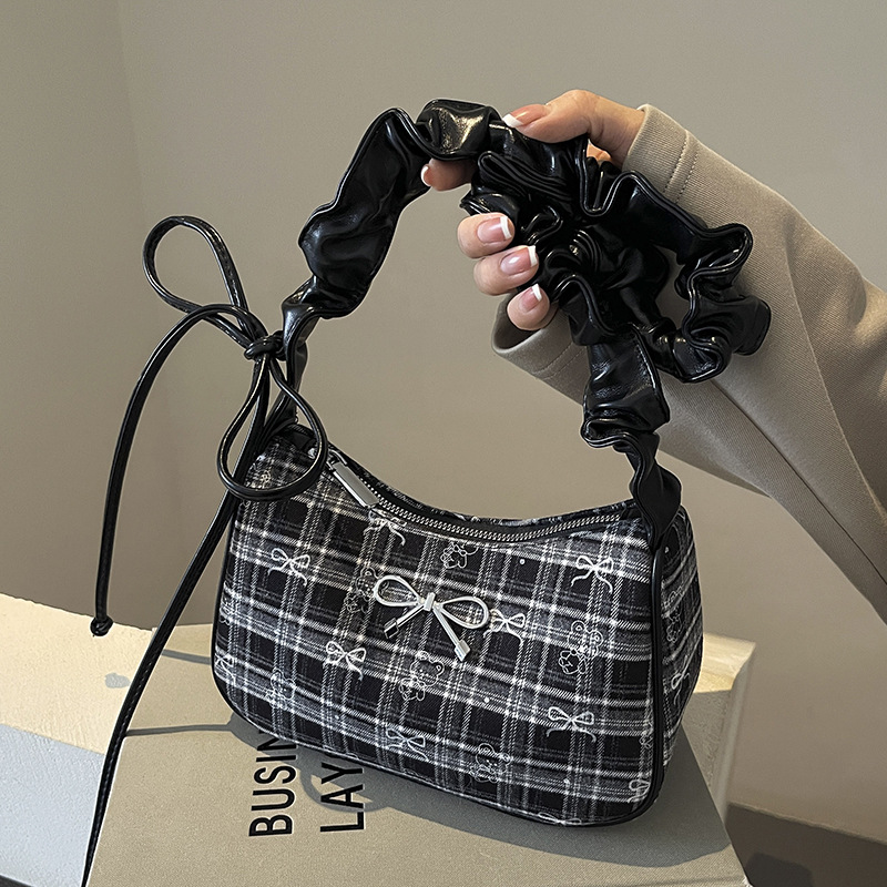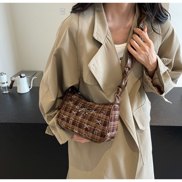• 秋と冬のチェック柄バッグ女性のための 2024 新しいウール多用途クロスボディバッグプリーツシングルショルダー脇の下バッグ