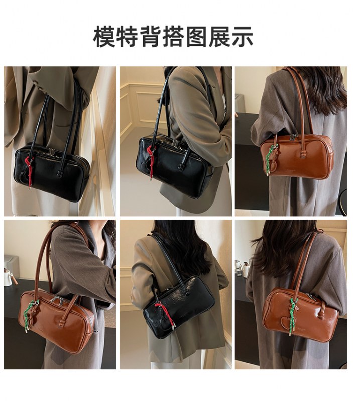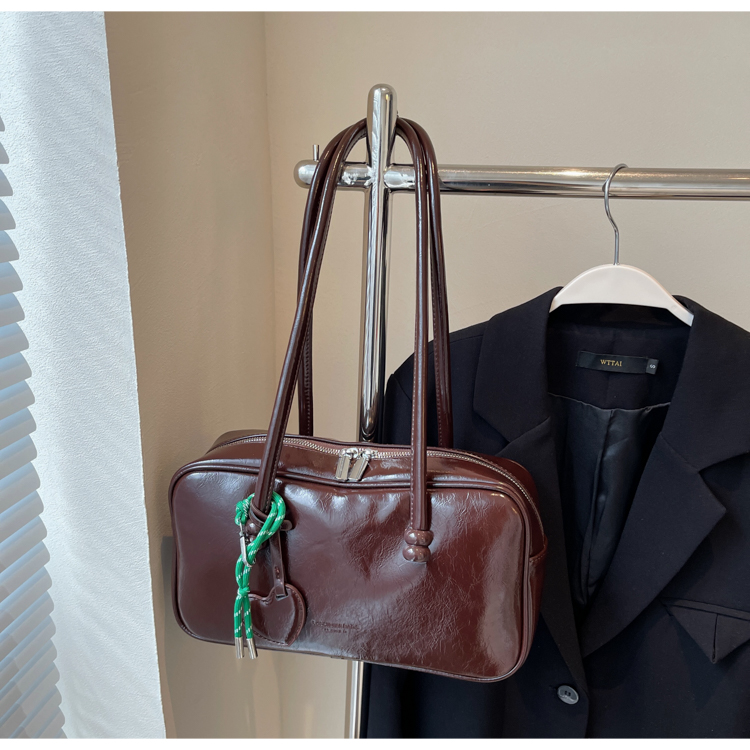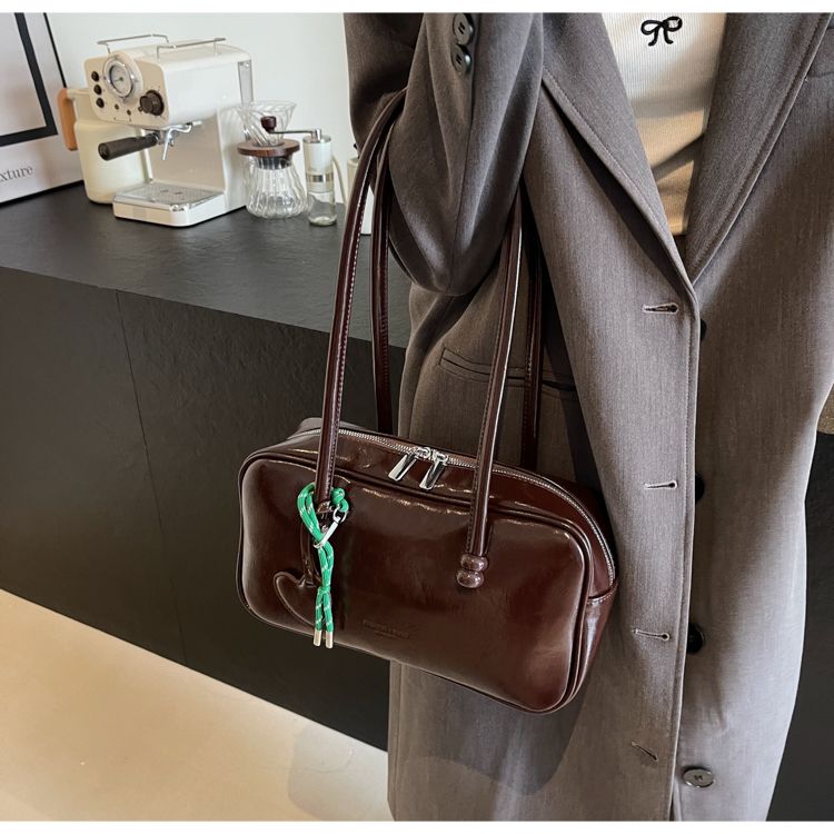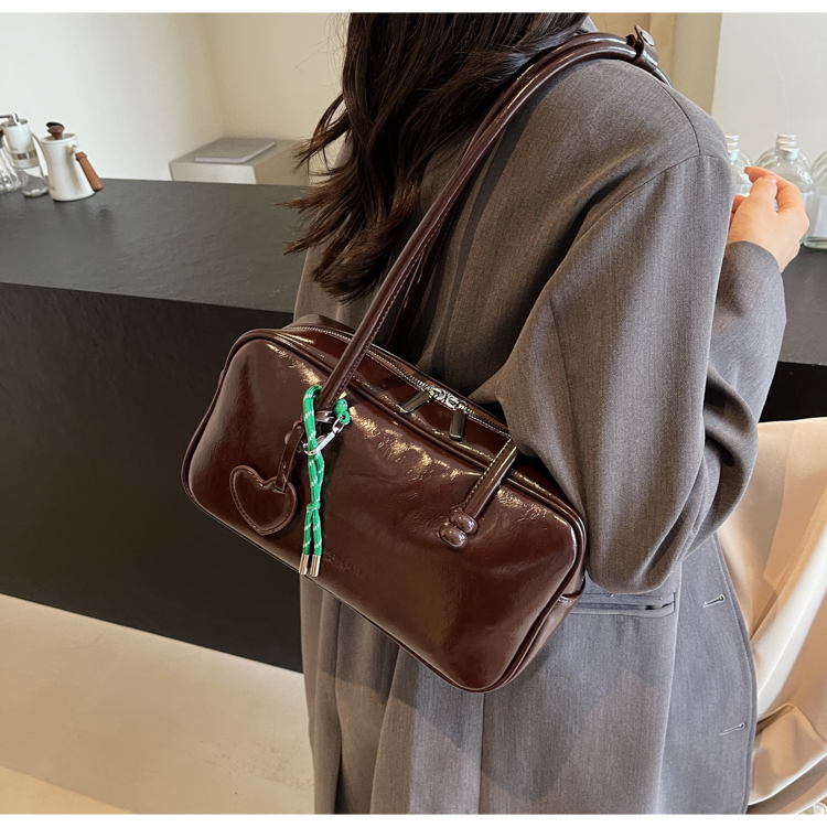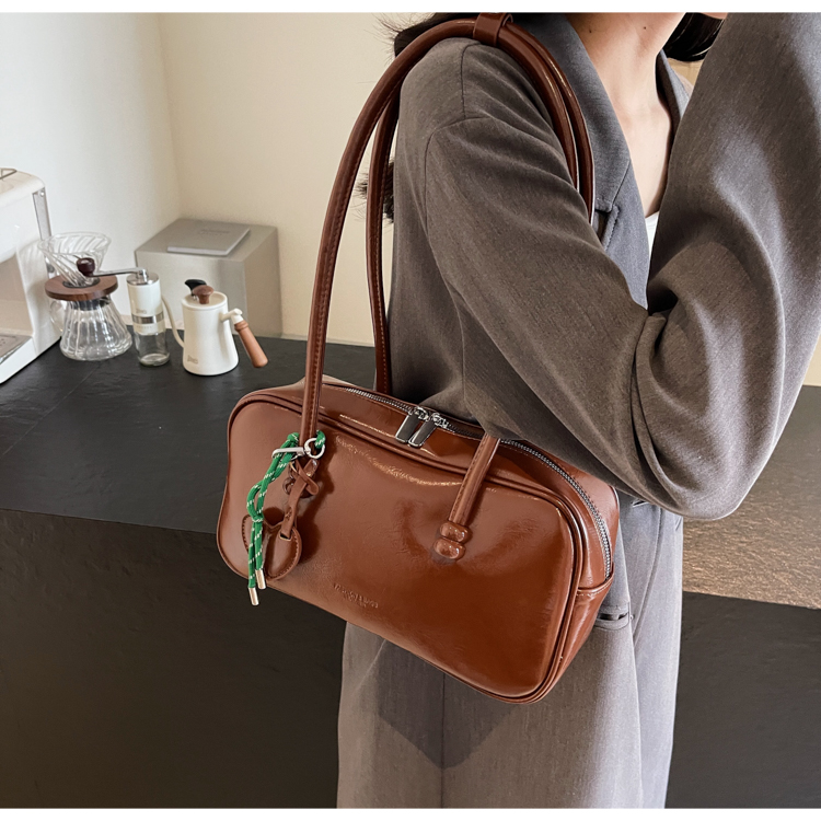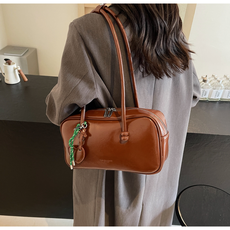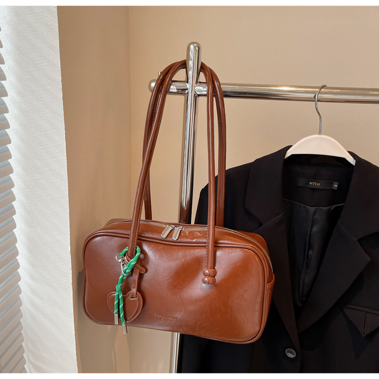 • 秋と冬のレトロオイルレザー小さなバッグ女性の 2024 新しい多用途肩脇の下バッグ通勤ポータブルバゲットバッグ