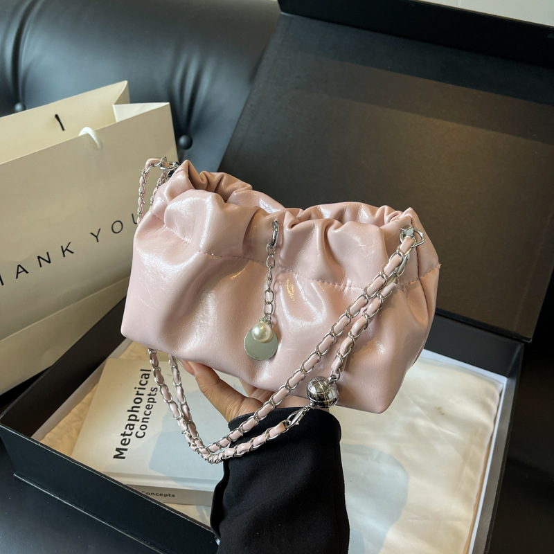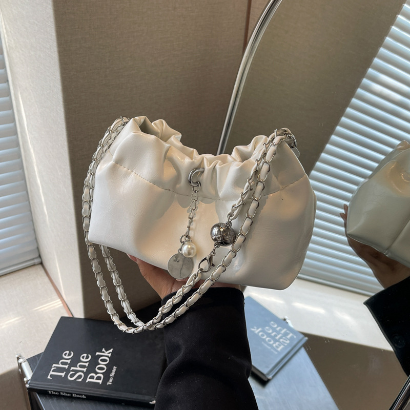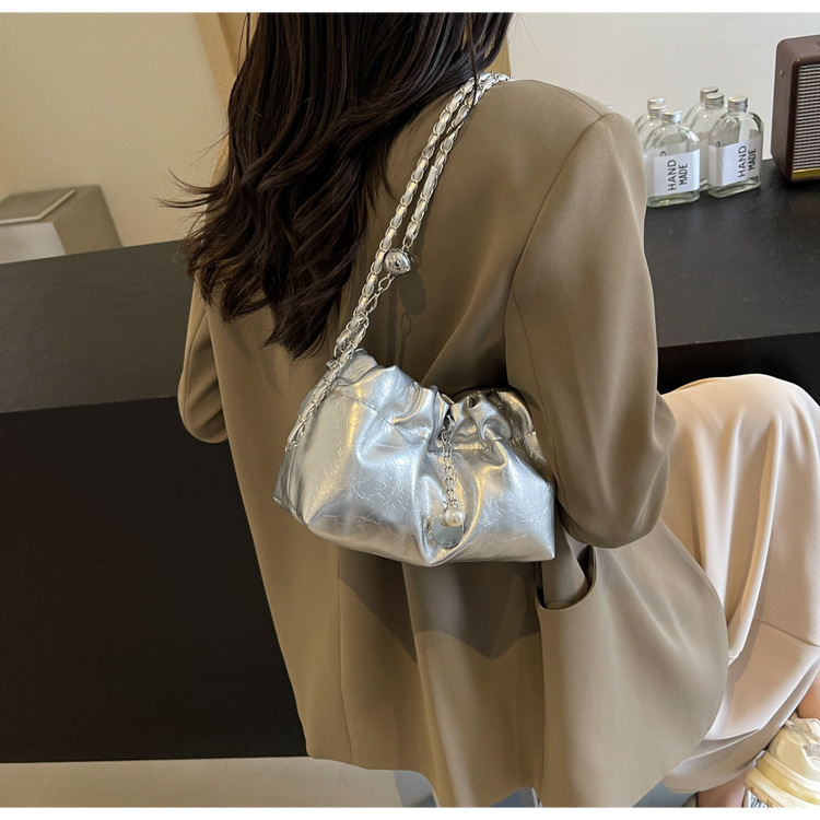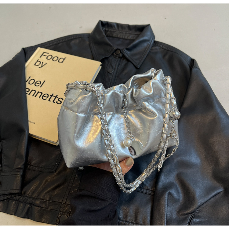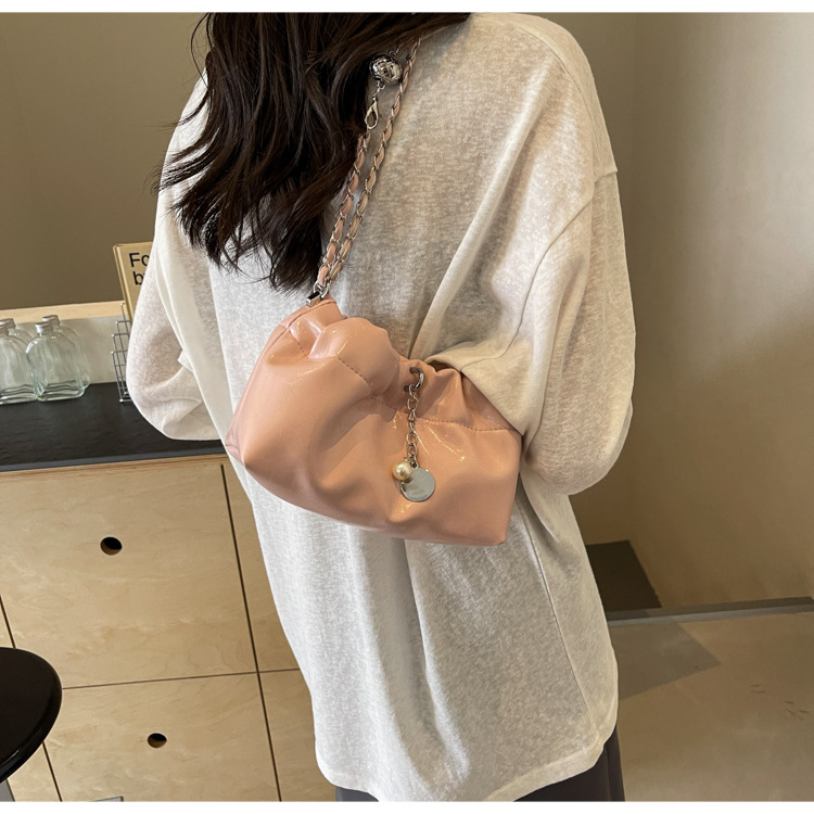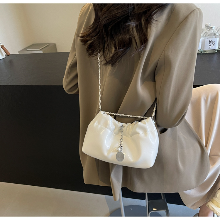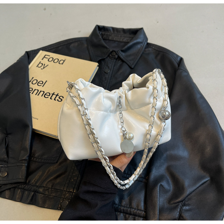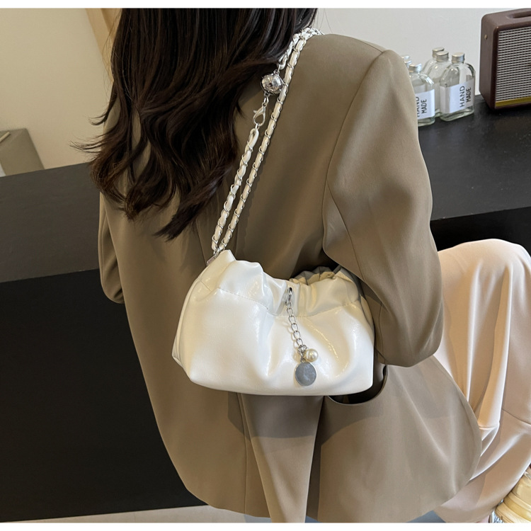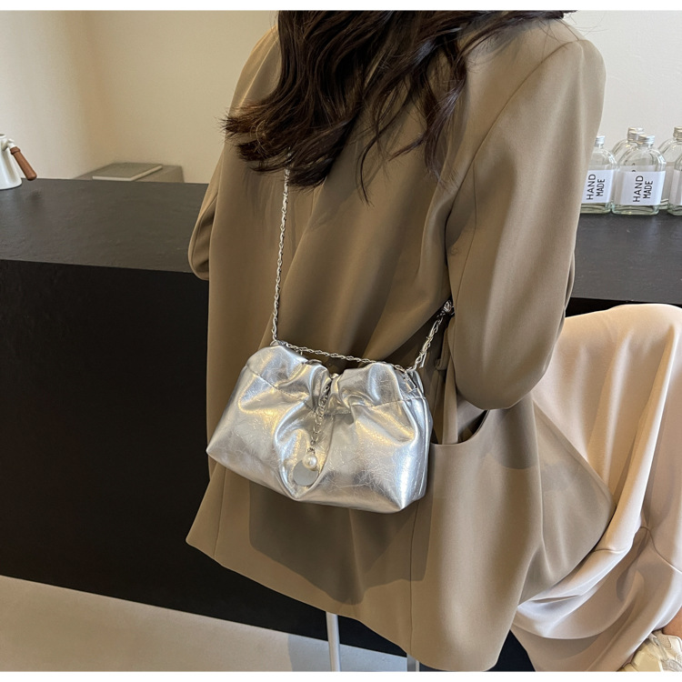 • ソリッドカラープリーツ脇の下バッグ女性の2024夏の新しいソフトレザー多用途チェーンクロスボディバッグ