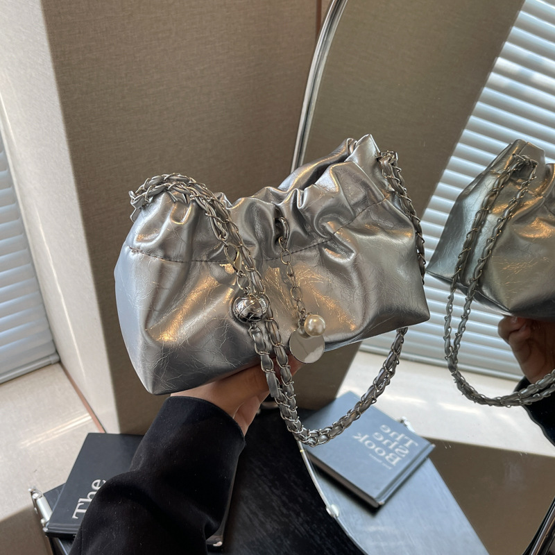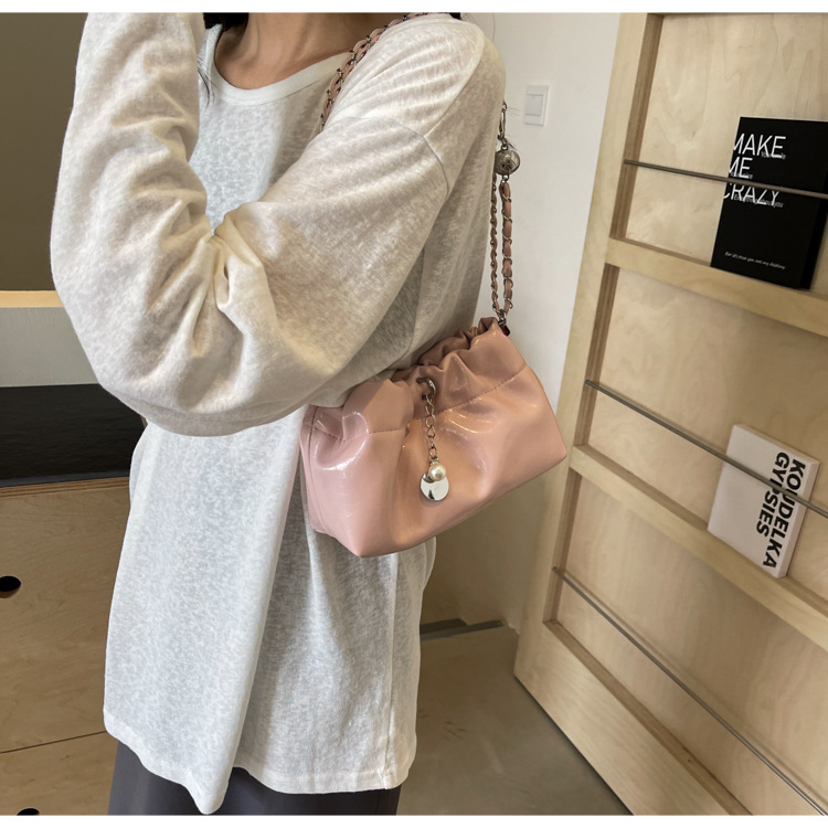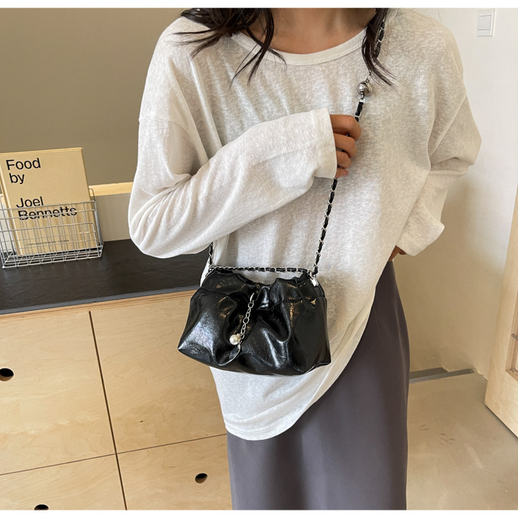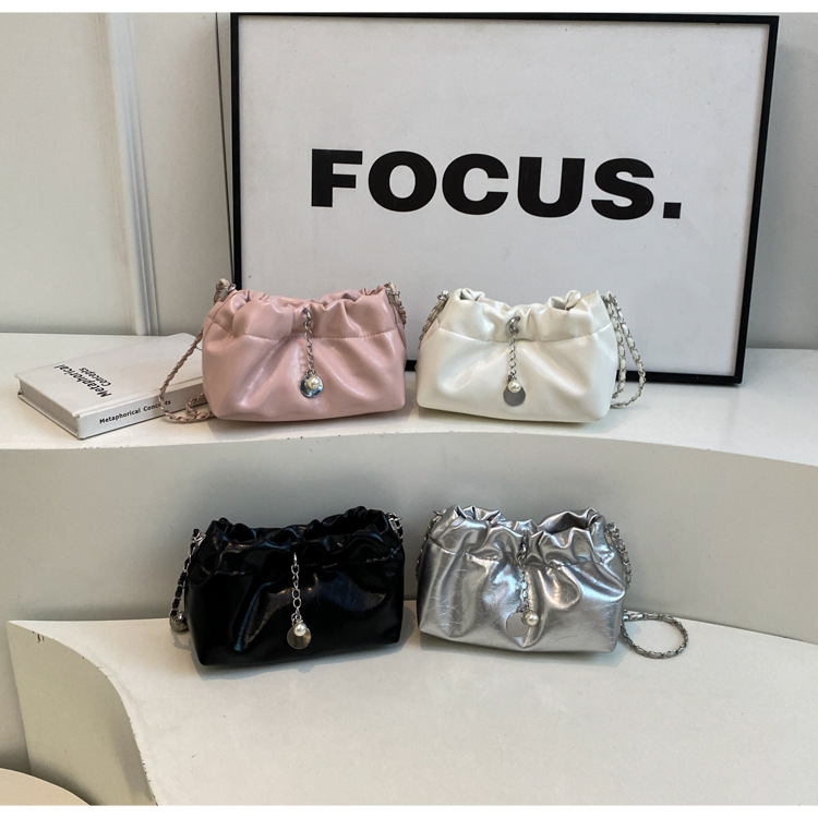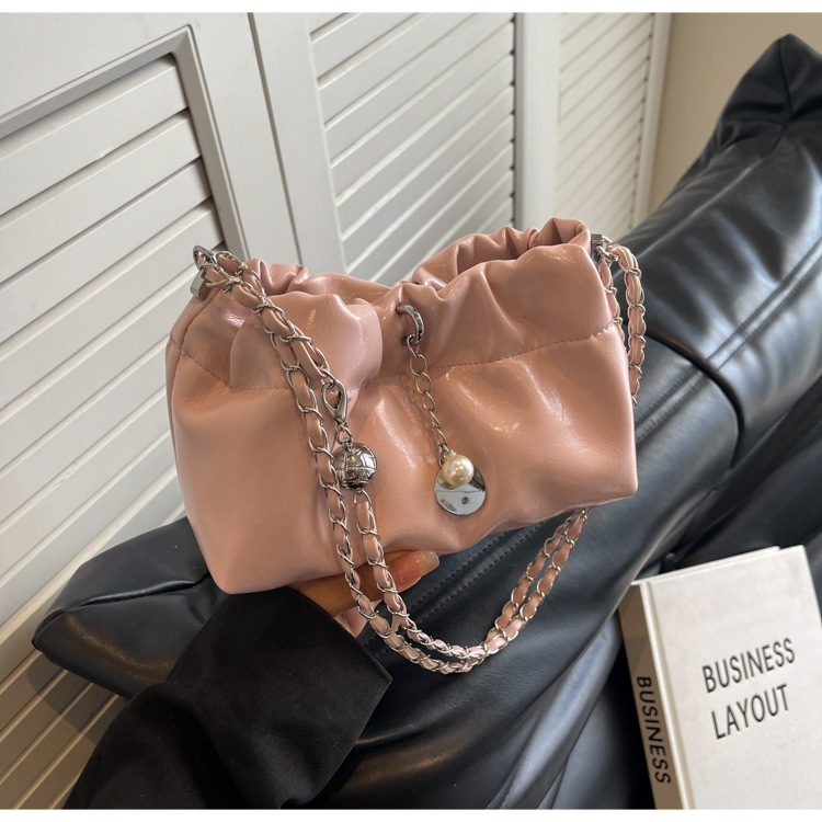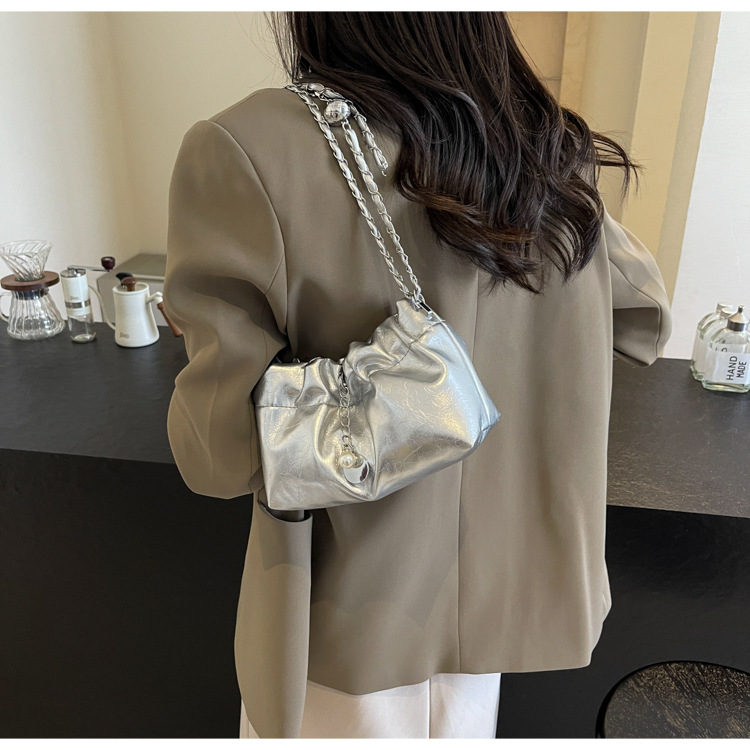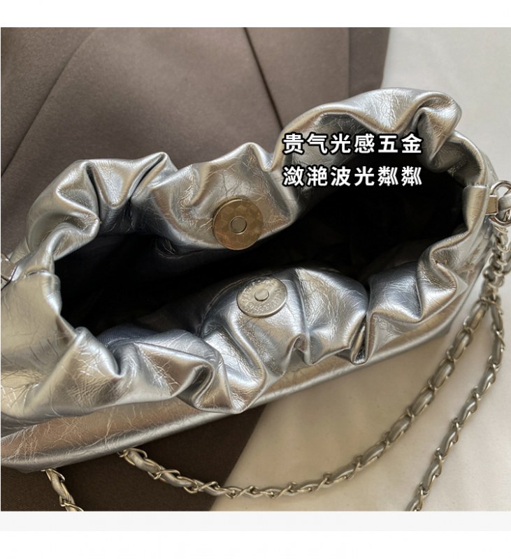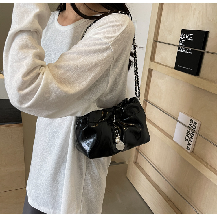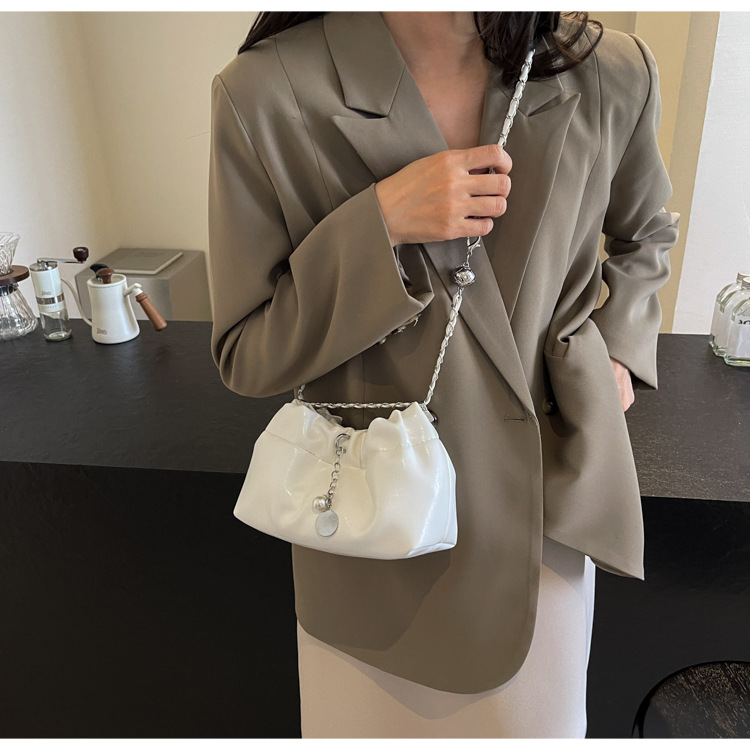 • ソリッドカラープリーツ脇の下バッグ女性の2024夏の新しいソフトレザー多用途チェーンクロスボディバッグ