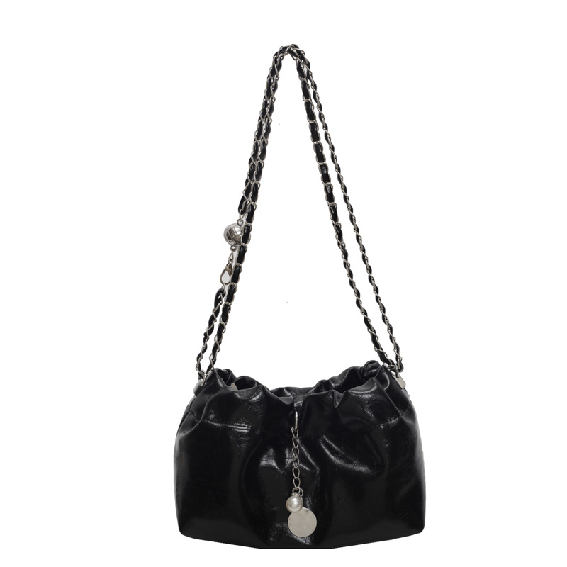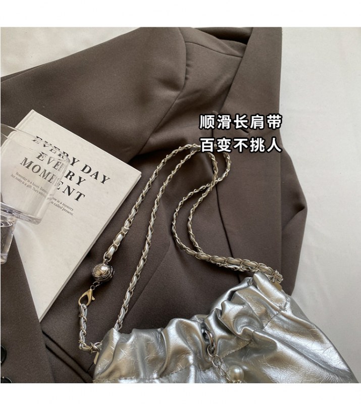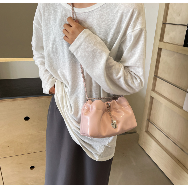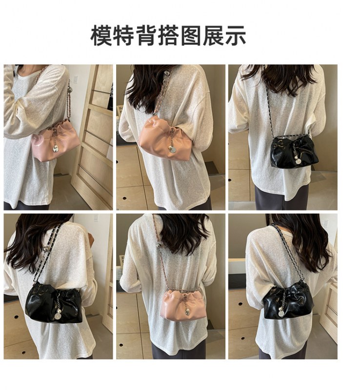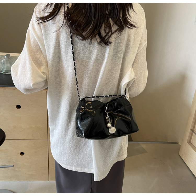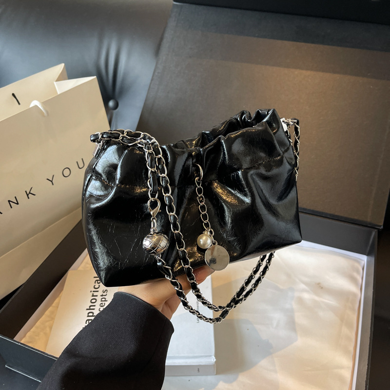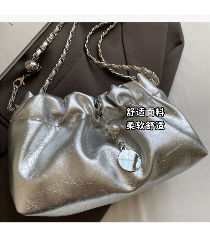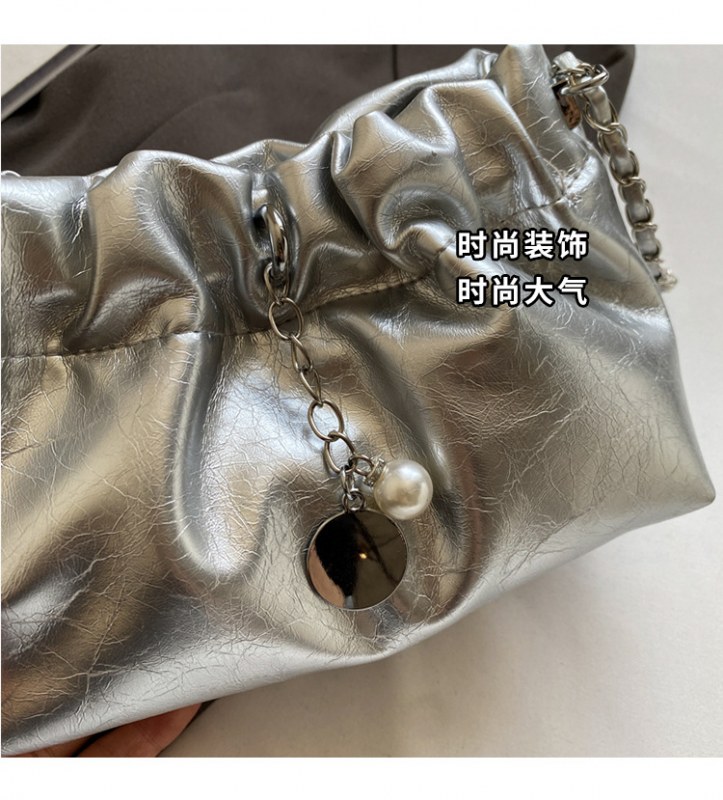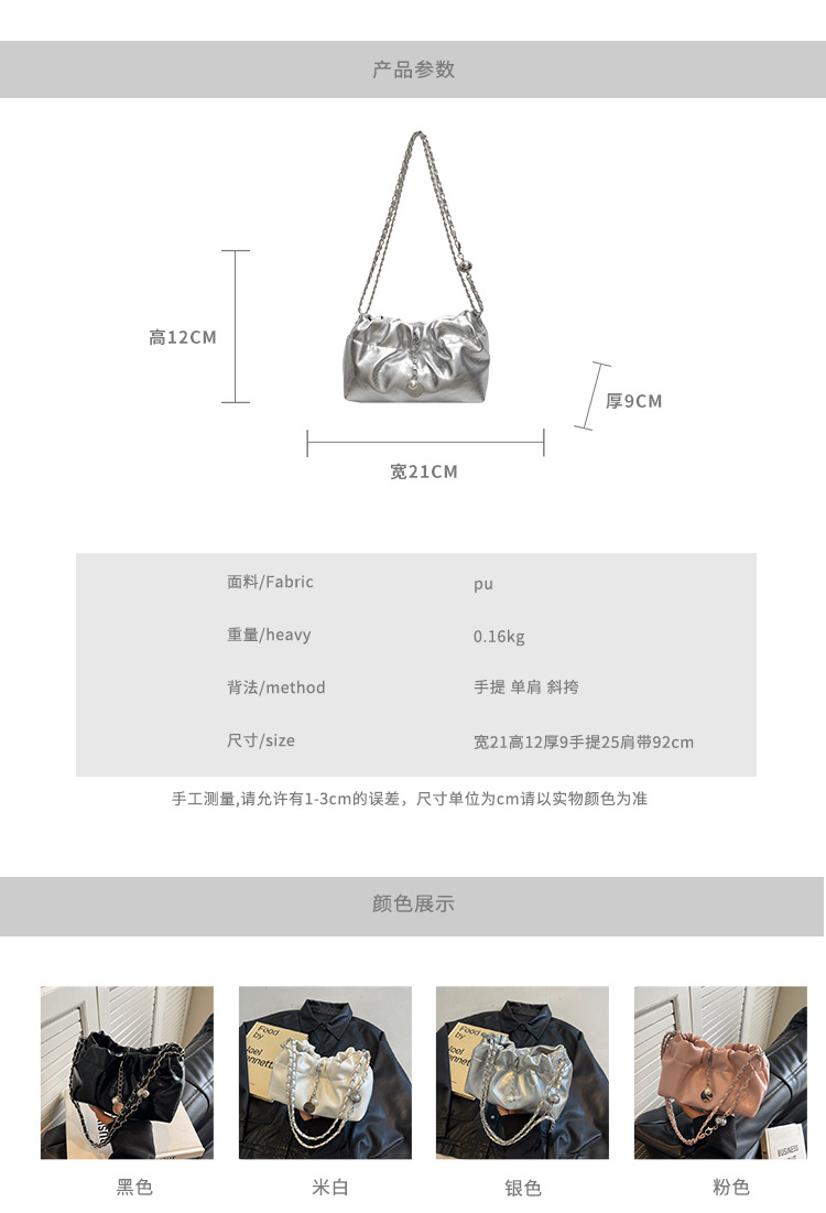 • ソリッドカラープリーツ脇の下バッグ女性の2024夏の新しいソフトレザー多用途チェーンクロスボディバッグ