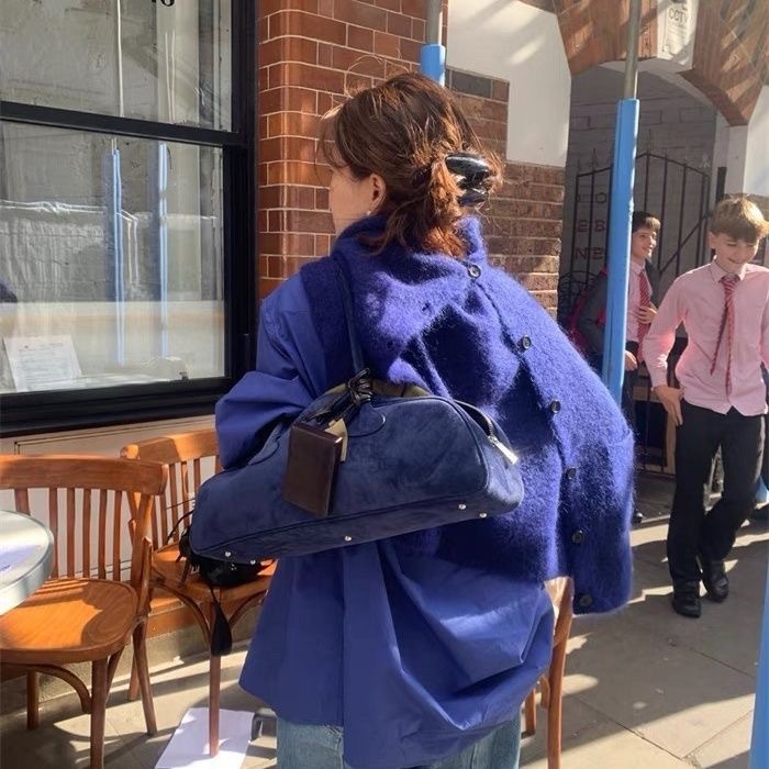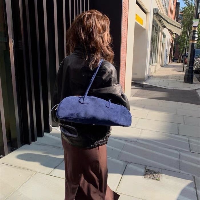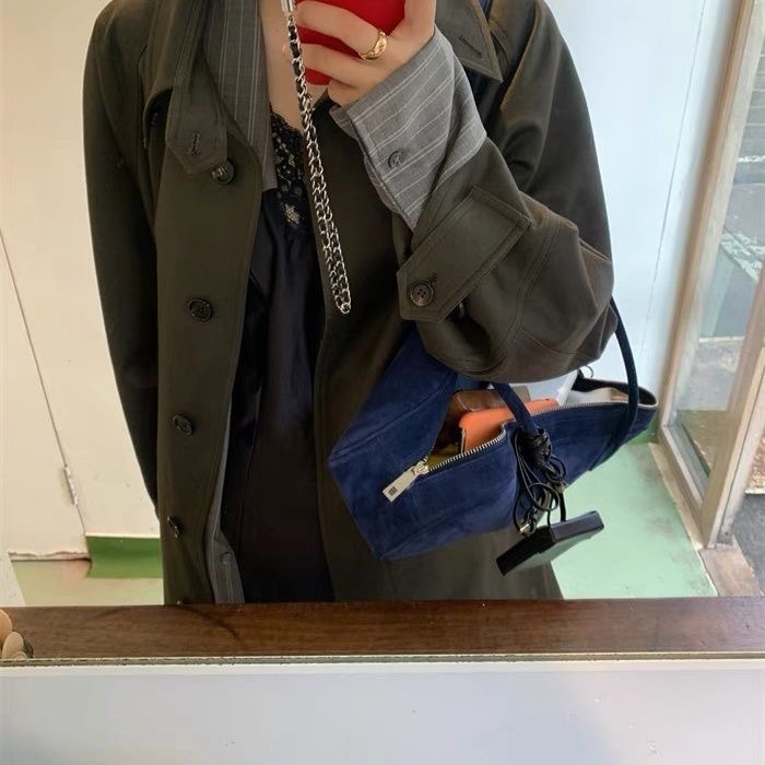 • 新しい韓国の秋と冬の新しいブルースエードショルダーバゲットバッグファッショナブルで多用途な脇の下