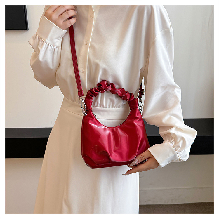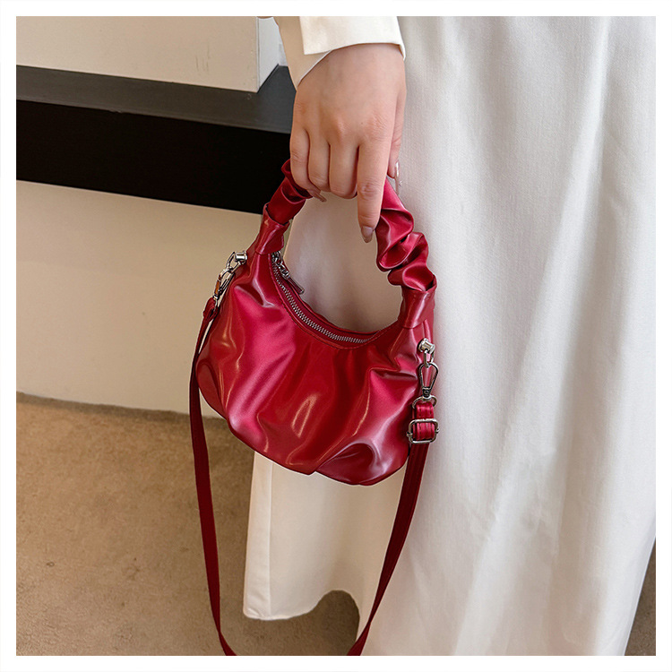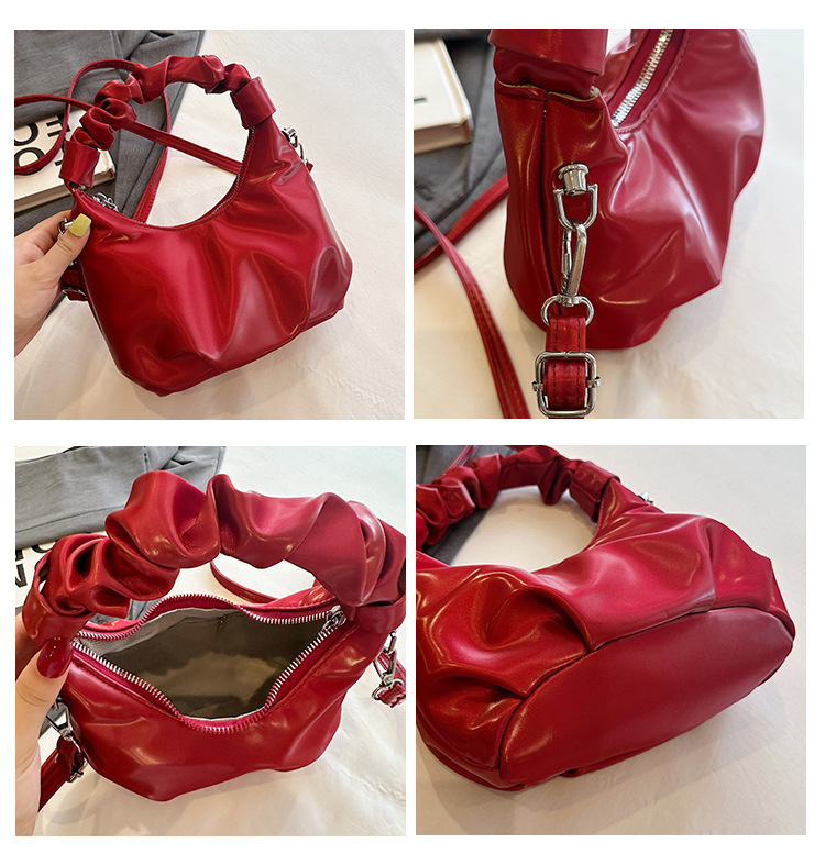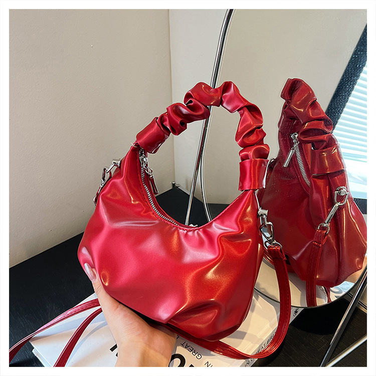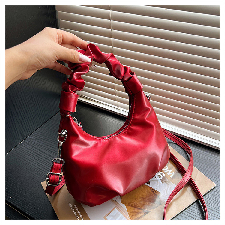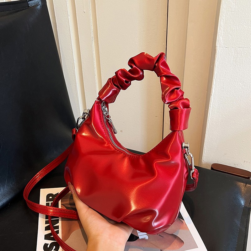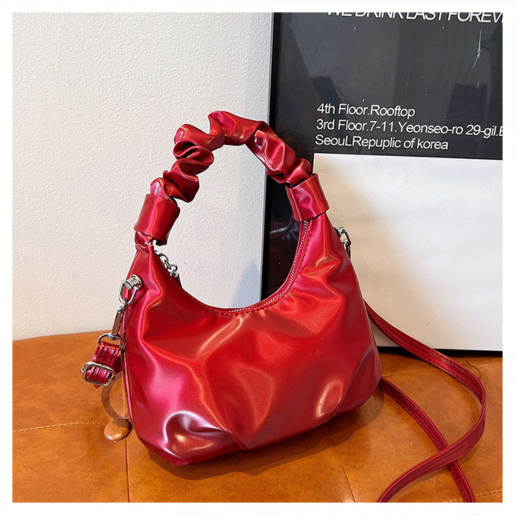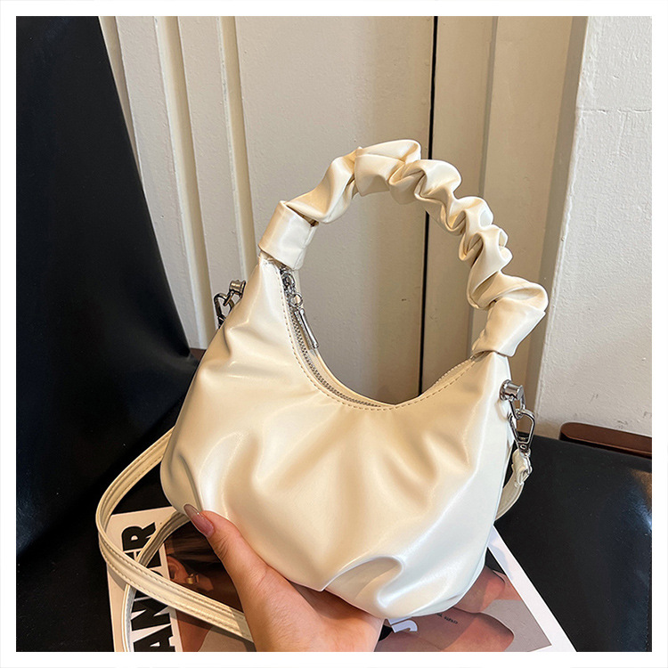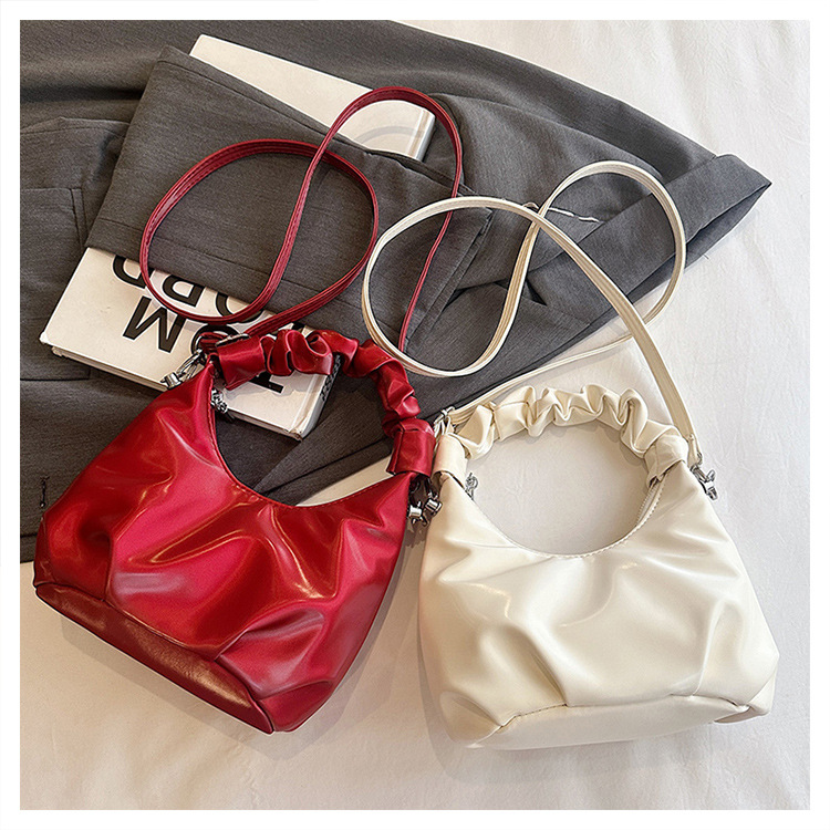 • 女性のためのハンドキャリー韓国のシンプルで多用途なバッグ 2024 夏の新しいファッションプリーツクラウドバッグ女性のためのシングルショルダークロスボディバッグ