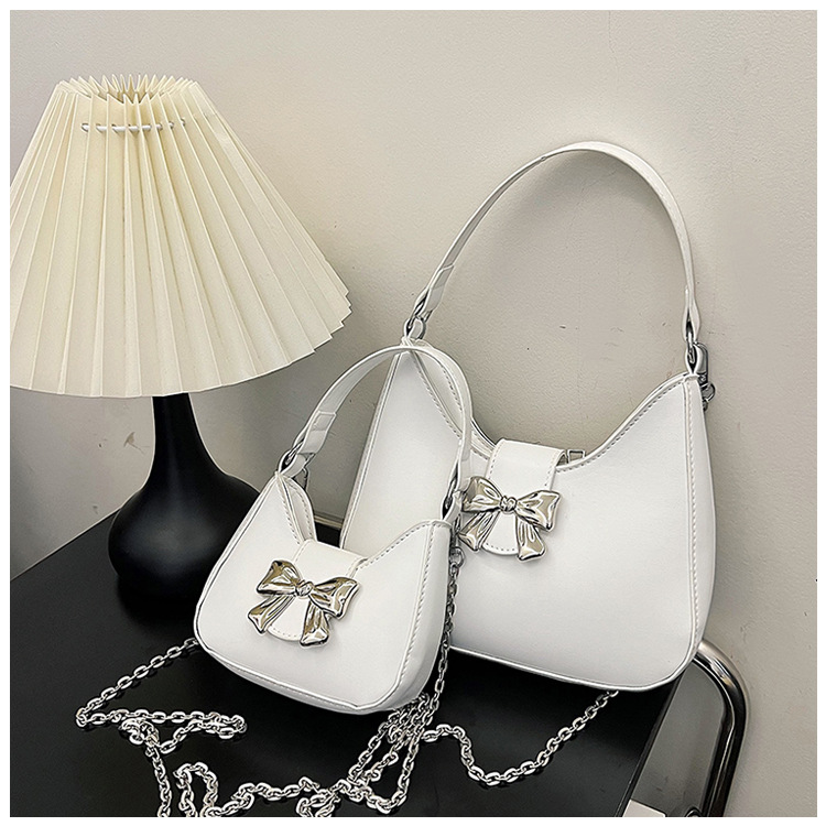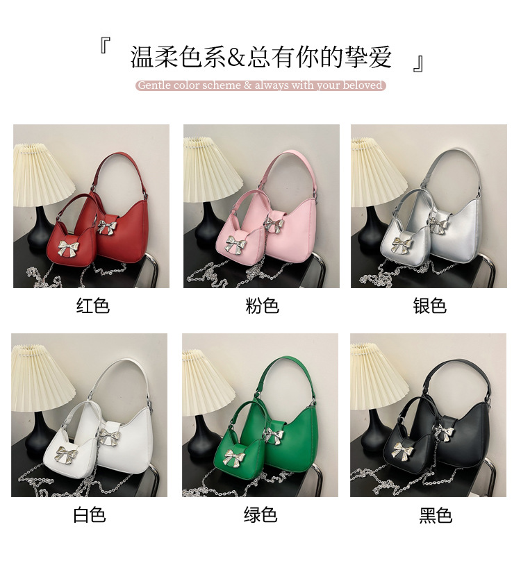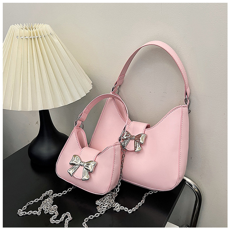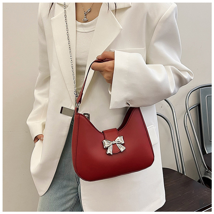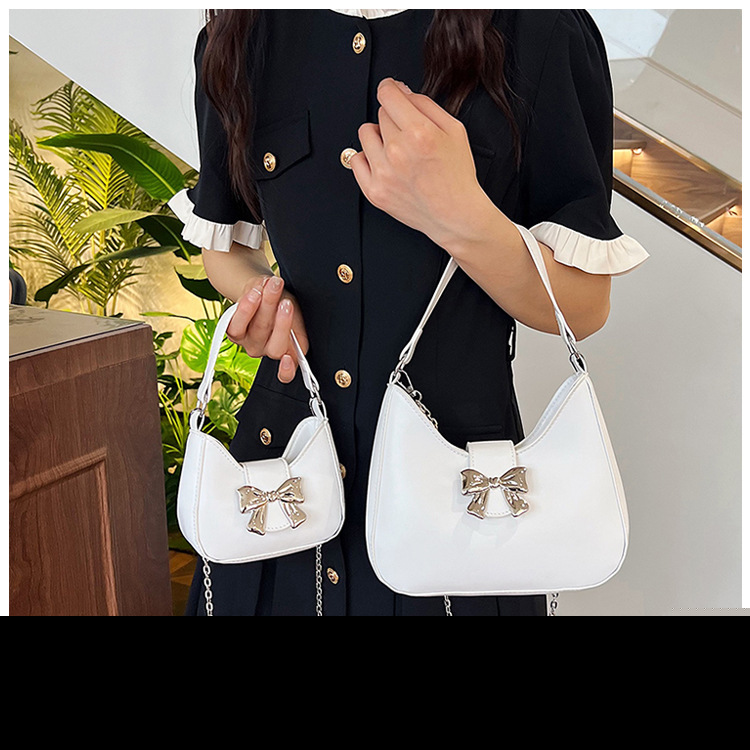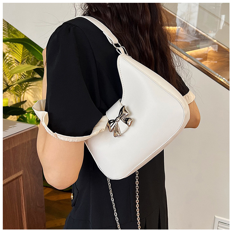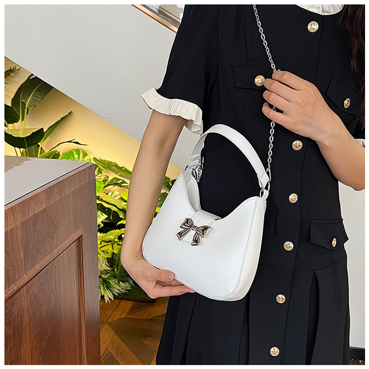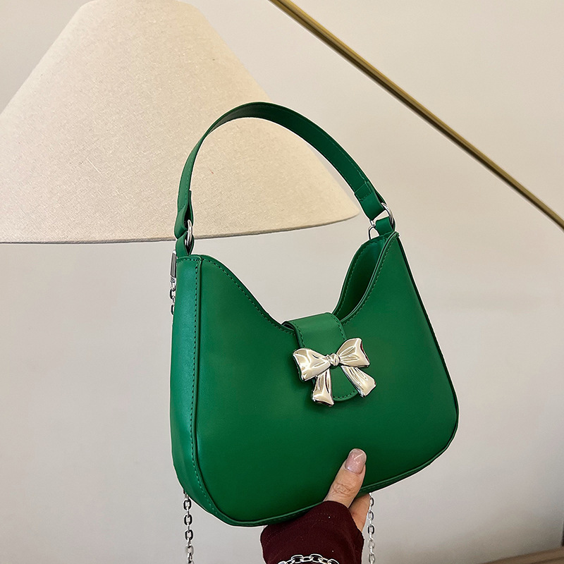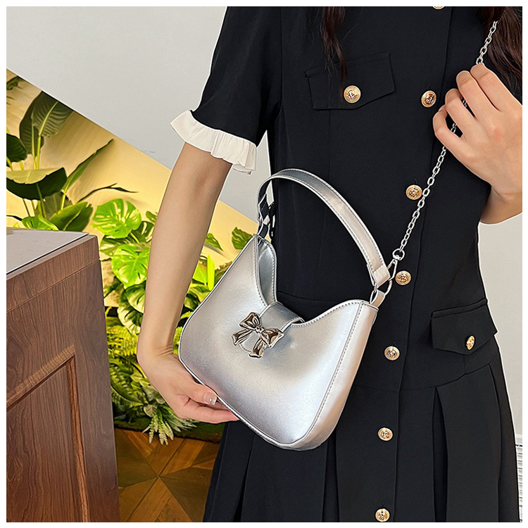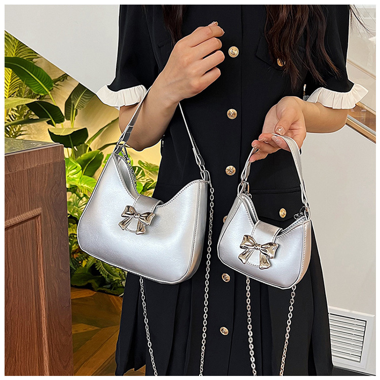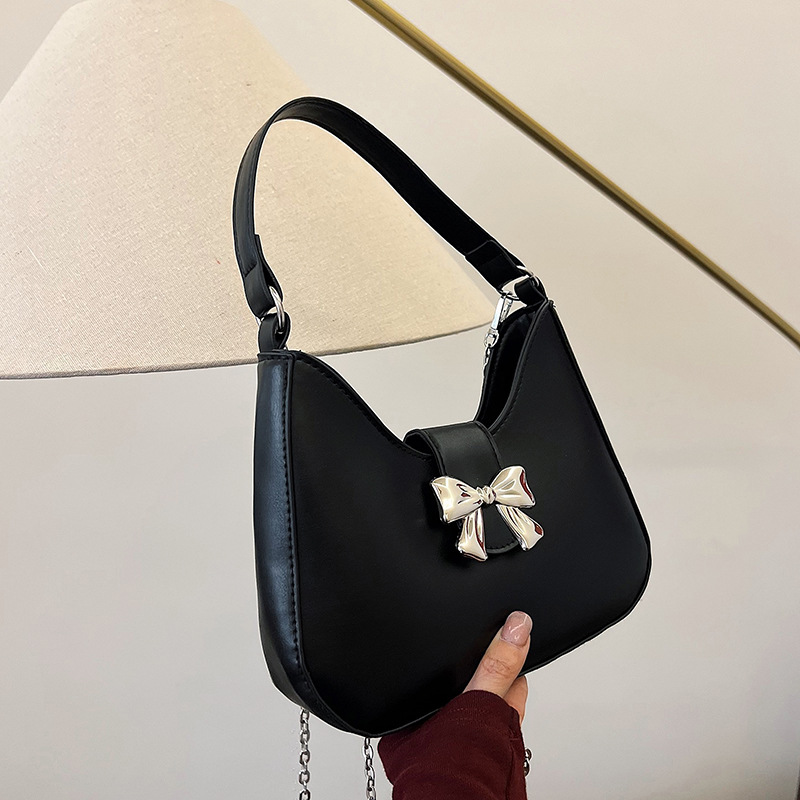 • 甘いソリッドカラーの弓ハンドバッグの女性 2024 新しいトレンディなファッションニッチ脇の下バッグチェーンクロスボディバッグ