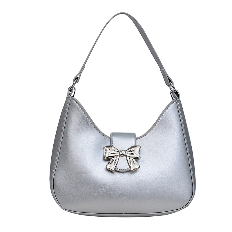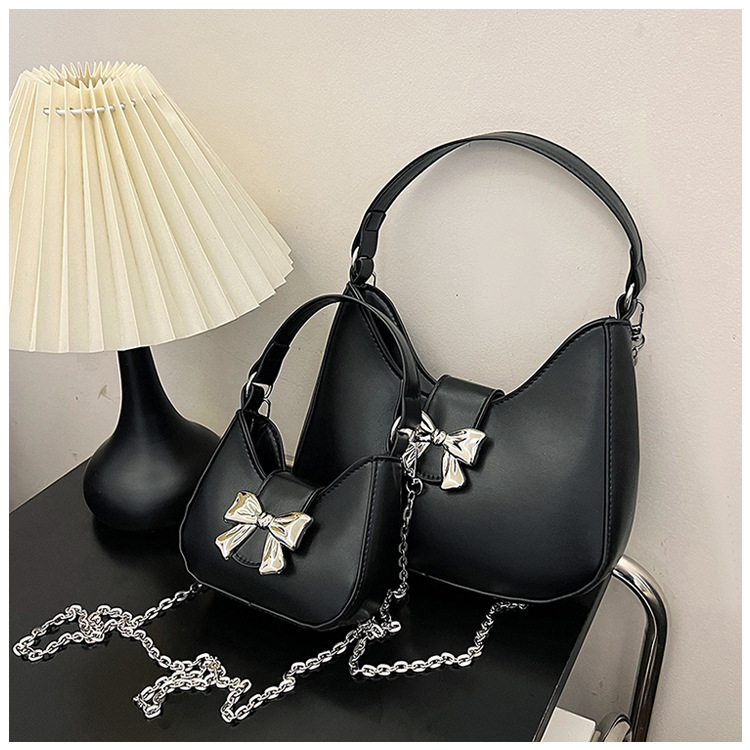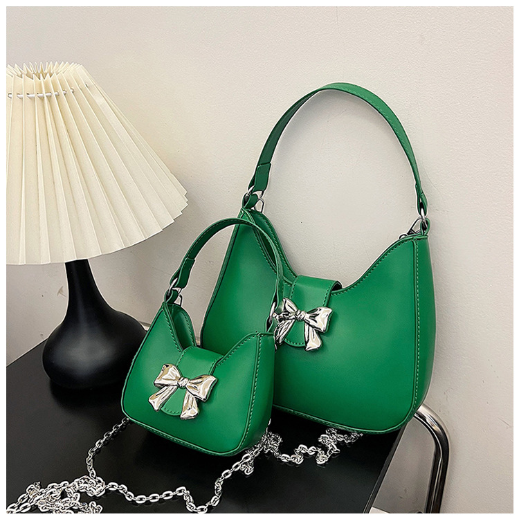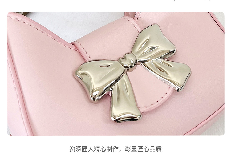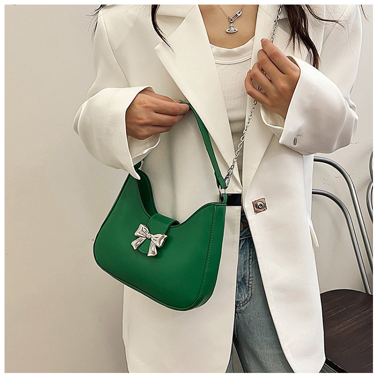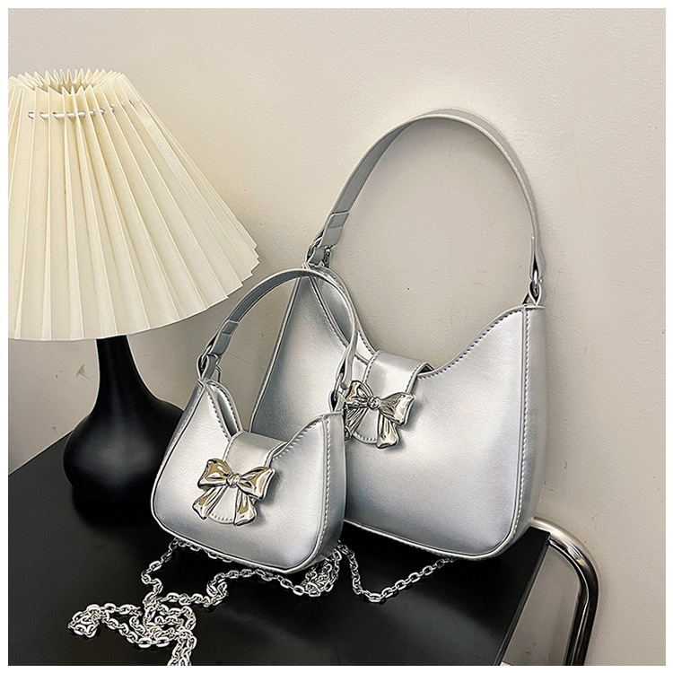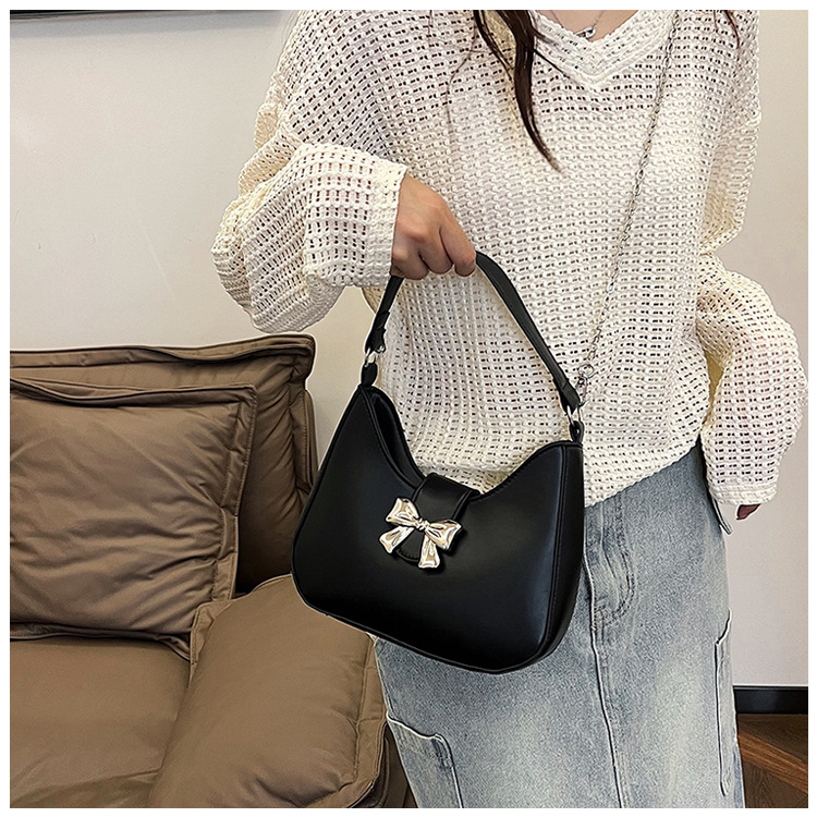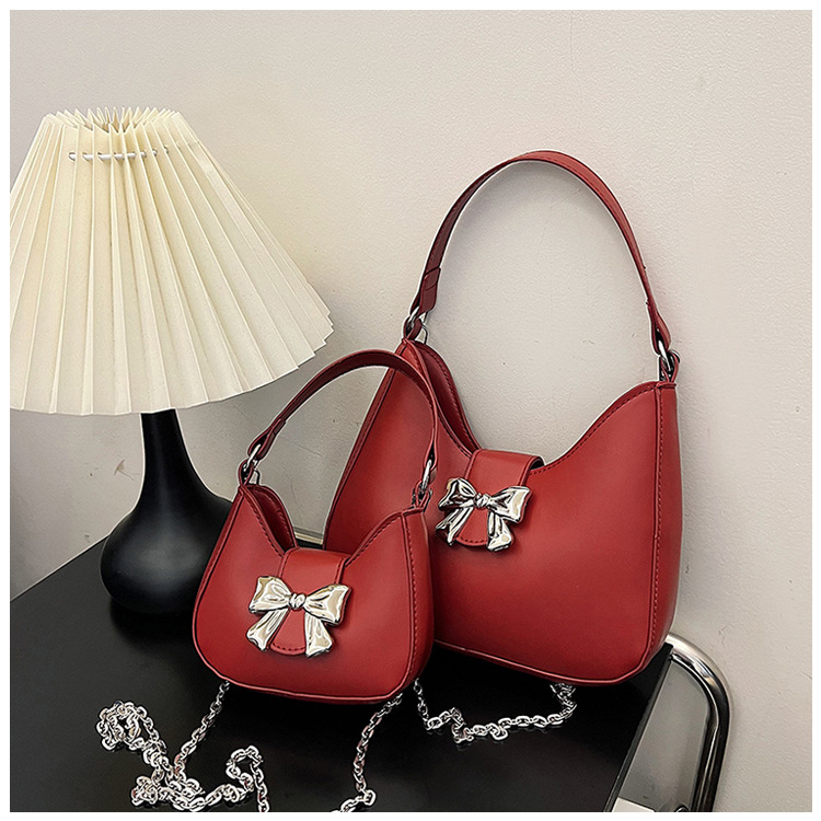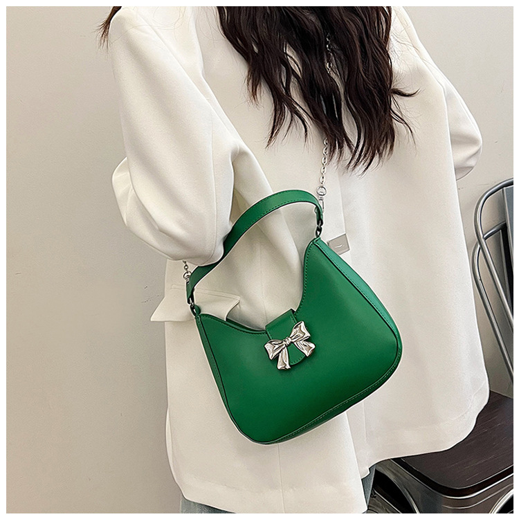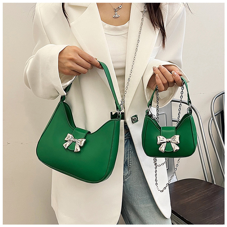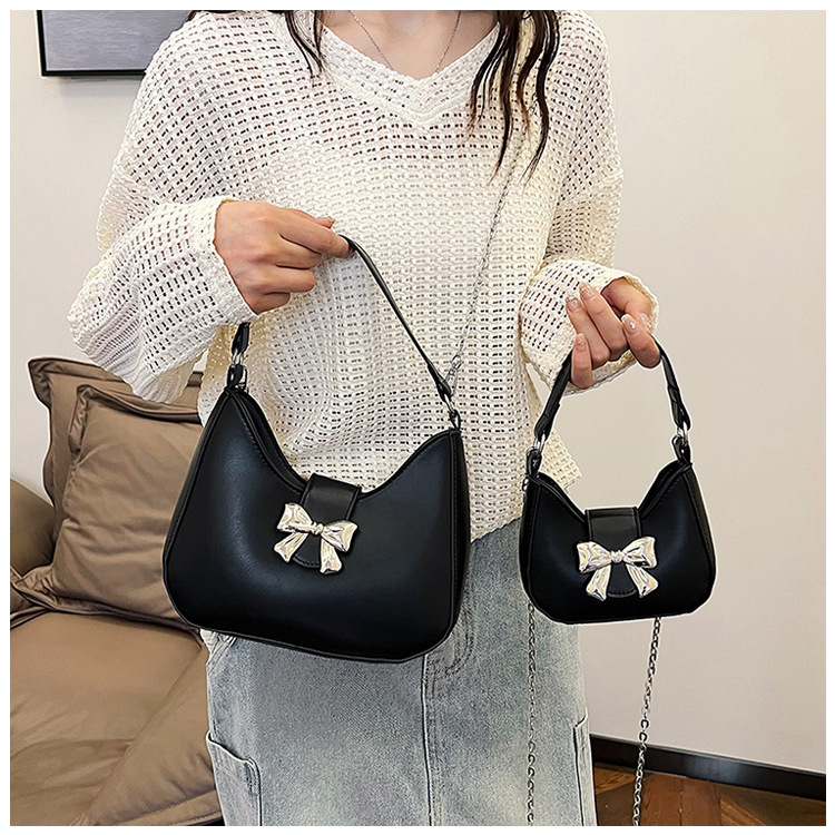 • 甘いソリッドカラーの弓ハンドバッグの女性 2024 新しいトレンディなファッションニッチ脇の下バッグチェーンクロスボディバッグ