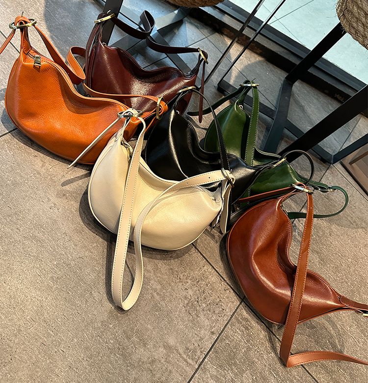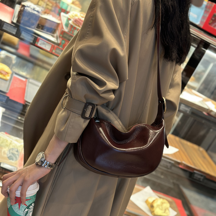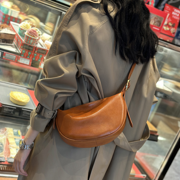 • 本革レディースバッグ 2024 新しいファッション脇団子バッグレトロ通勤牛革ショルダークロスボディバッグ女性のサドルバッグ