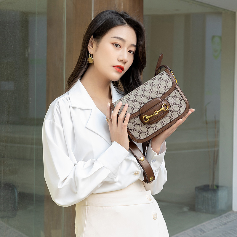 • 女性の本革バッグ 1955 サドルバッグ肩脇の下バッグレディースバッグ新しいファッション多用途ニッチトレンディなクロスボディバッグ